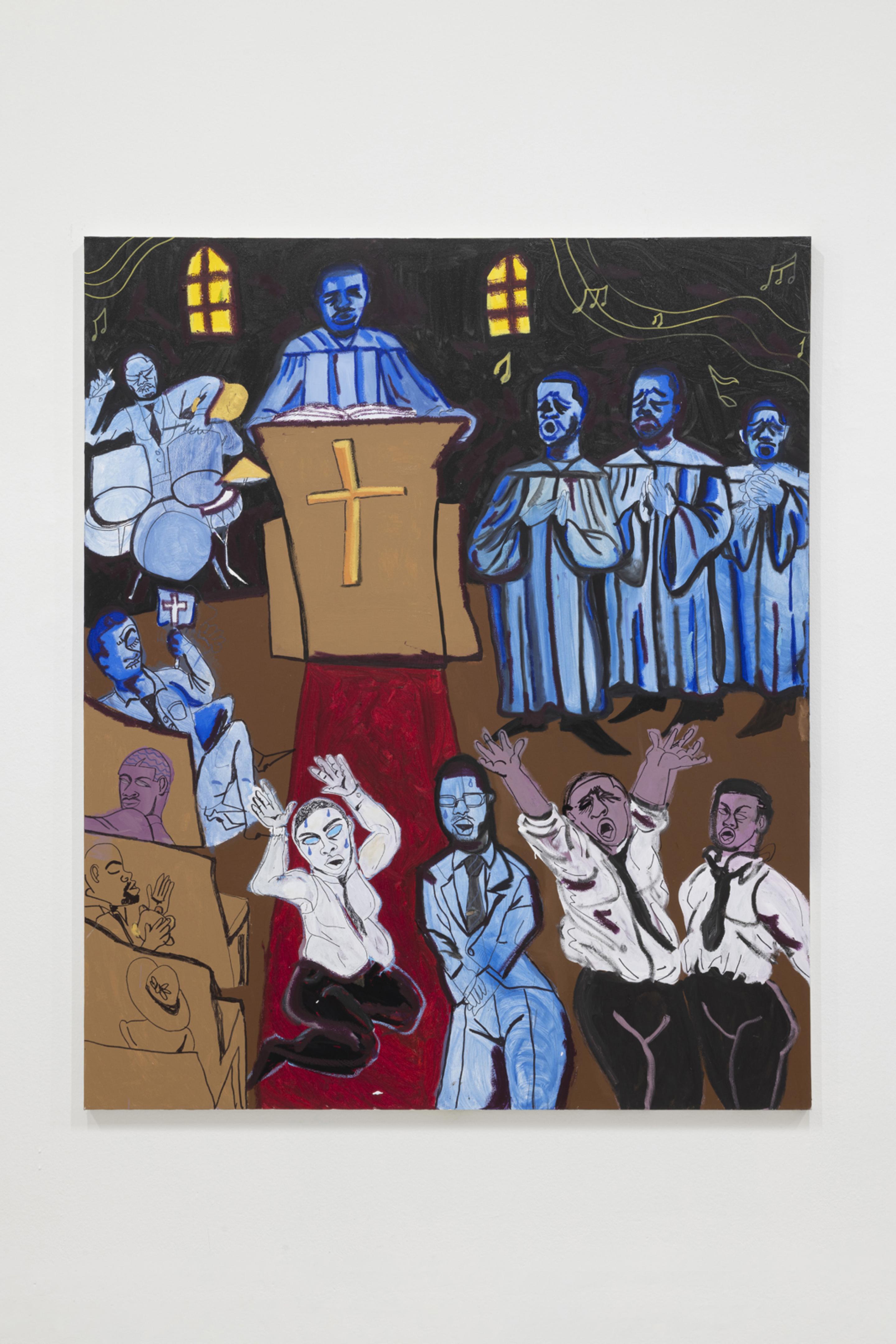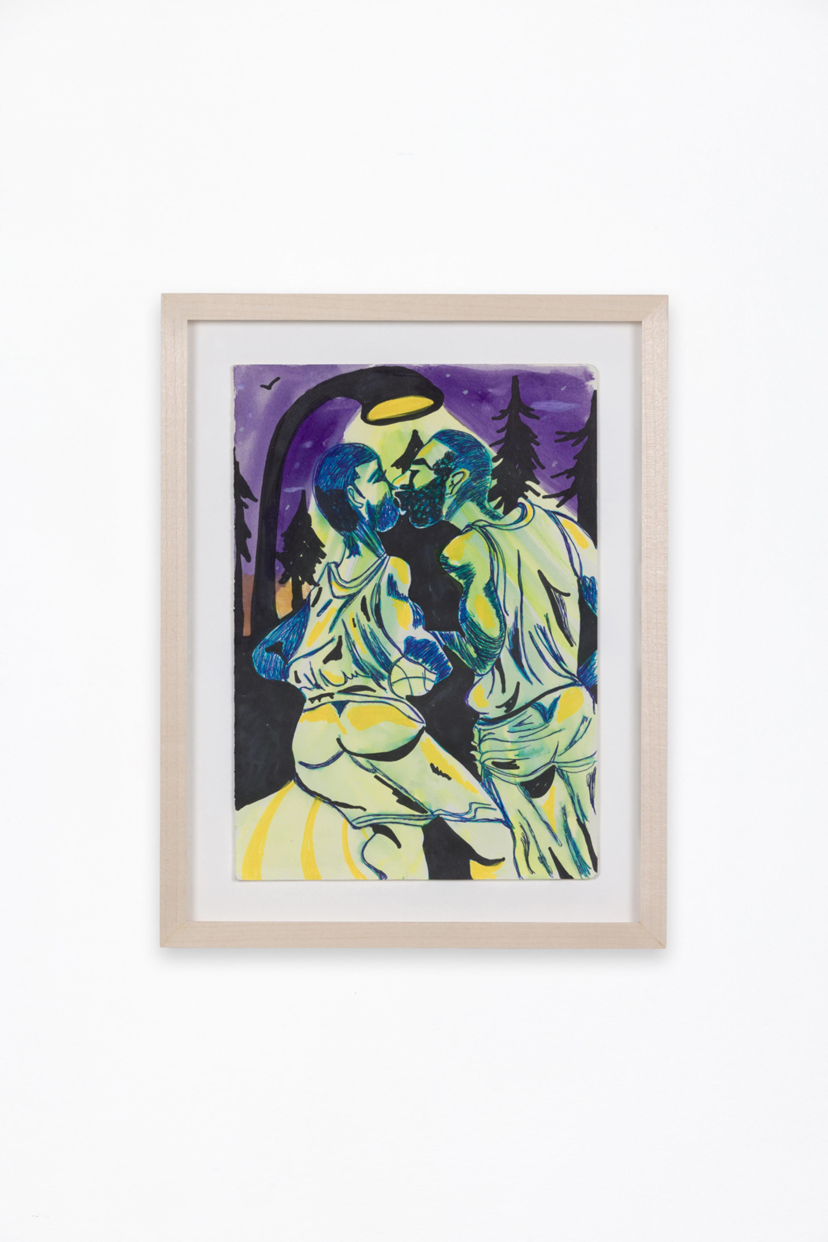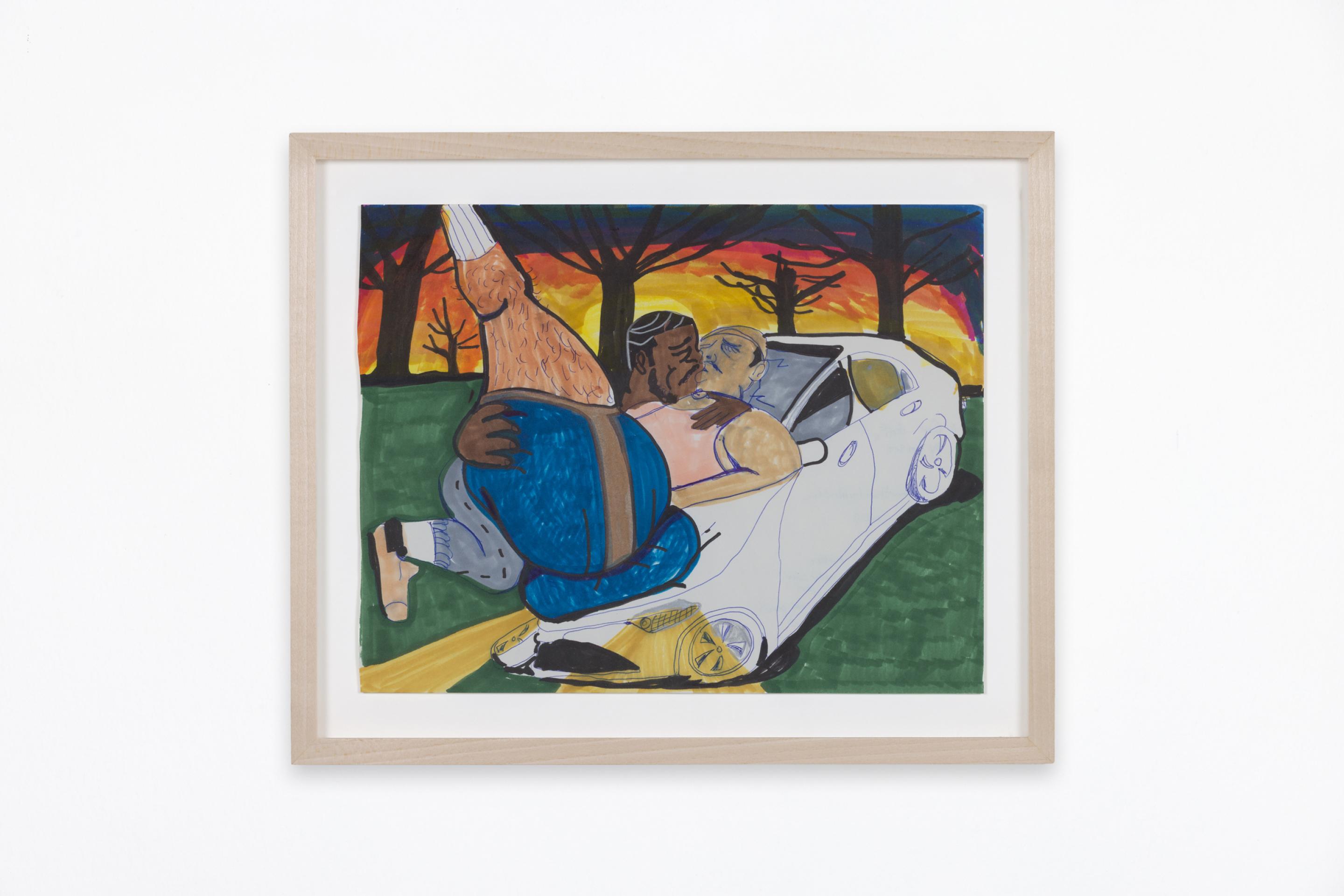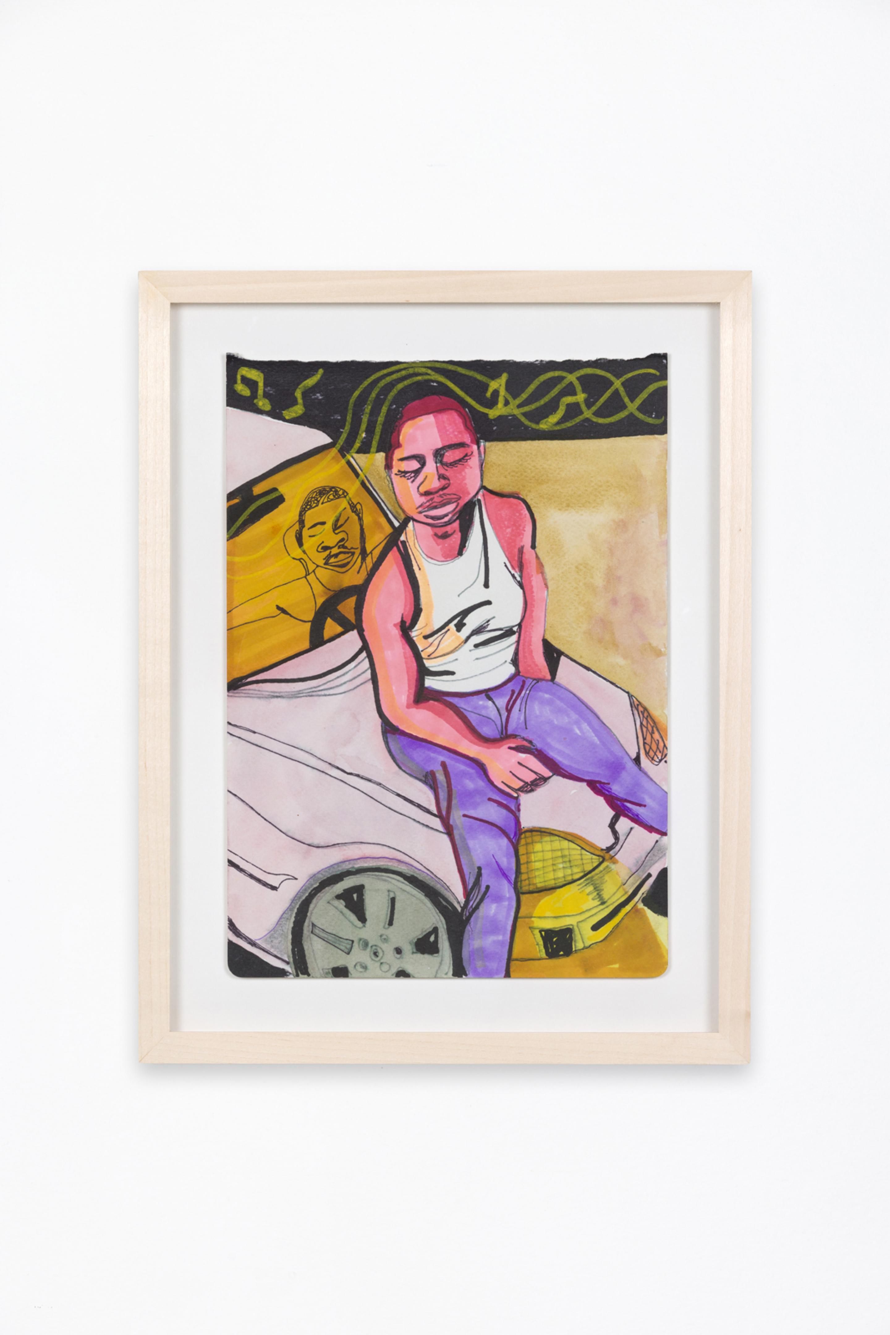 Pen, marker, oil stick, acrylic paint, and photo collage on canvas