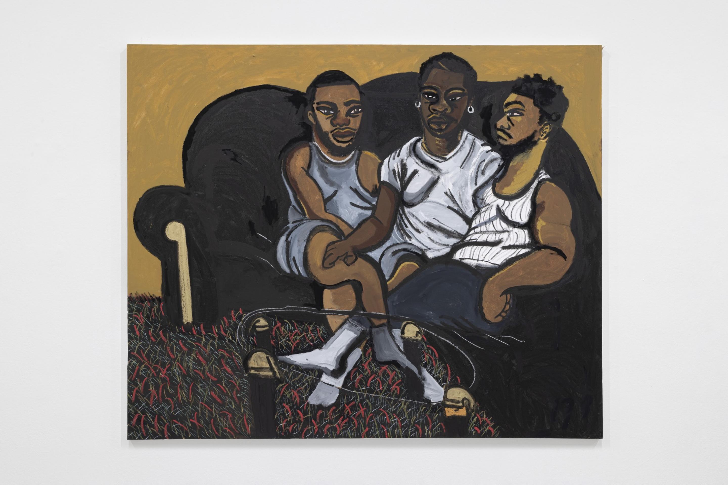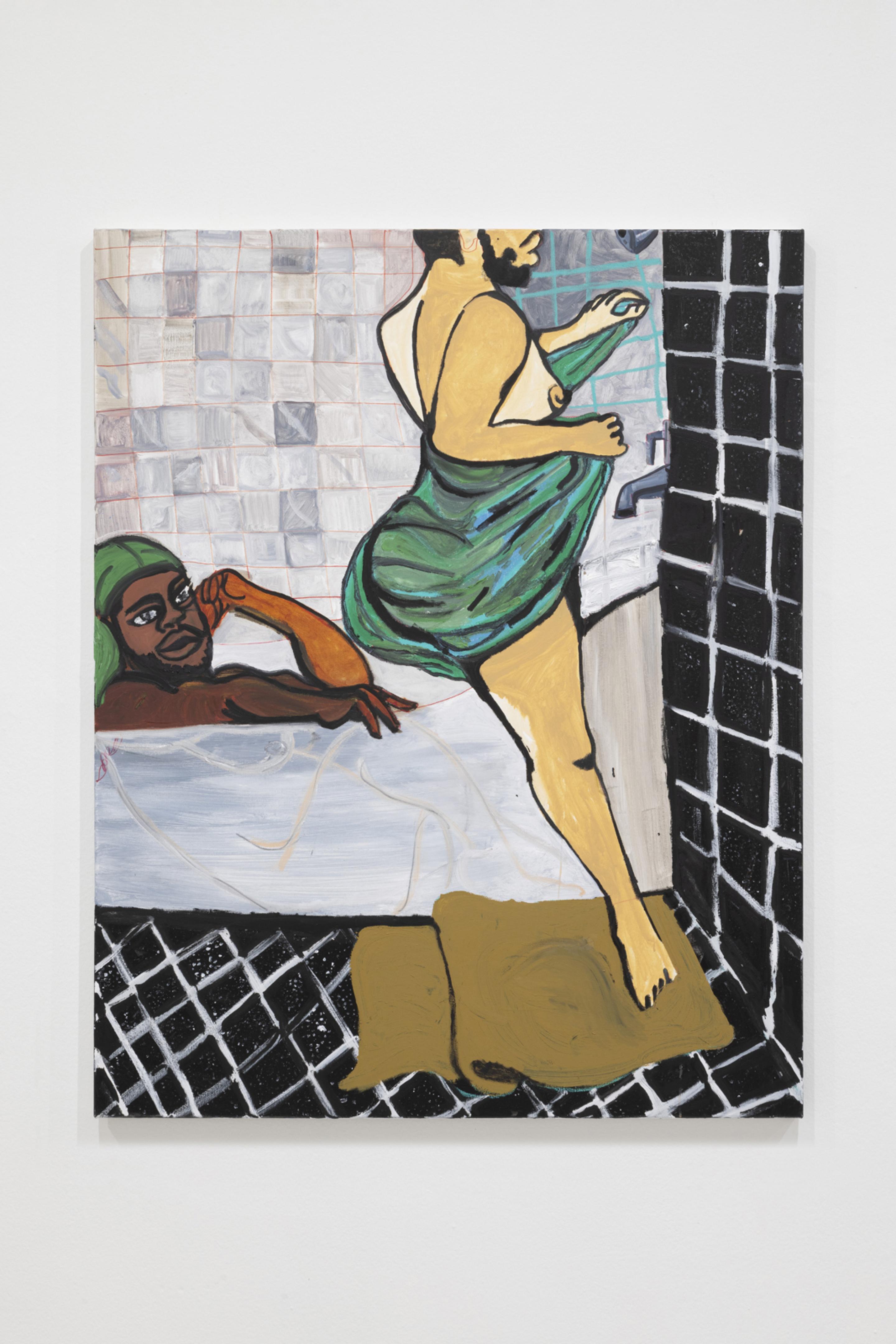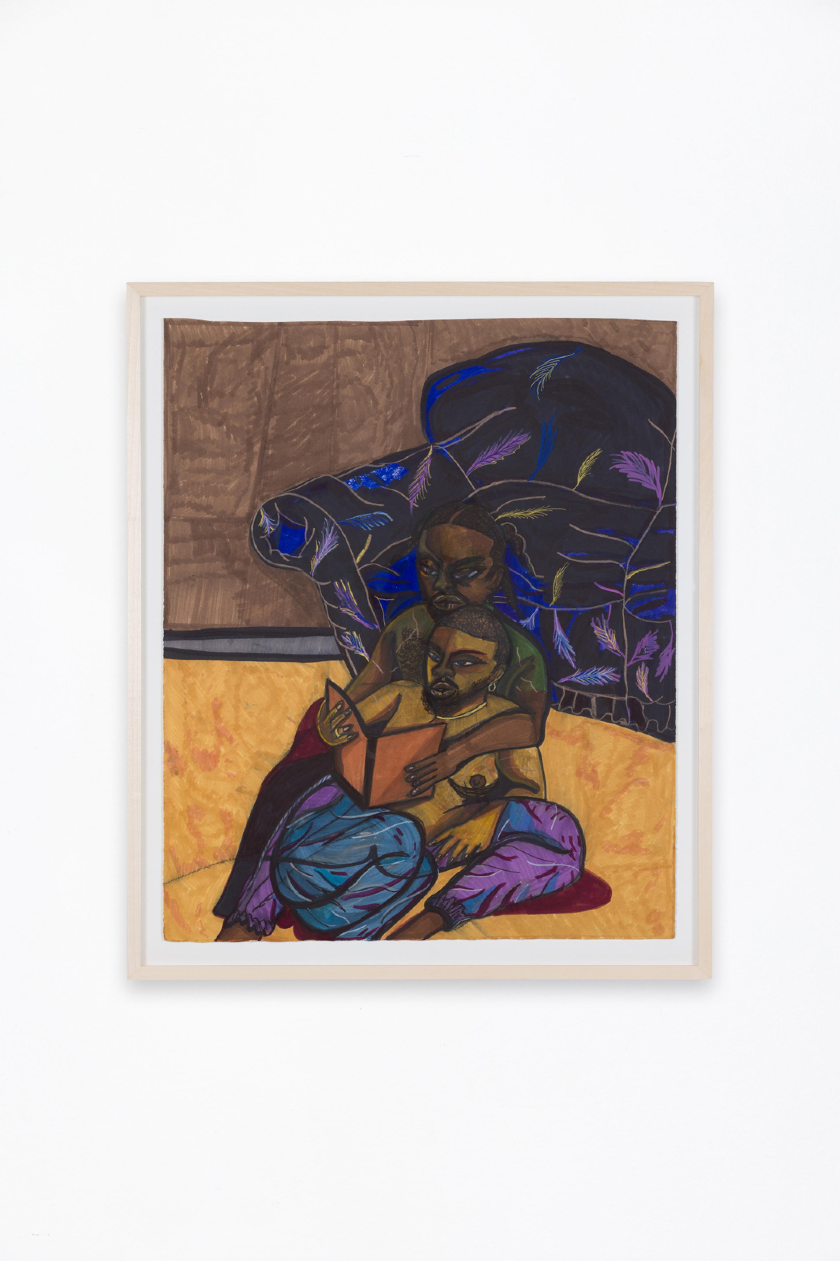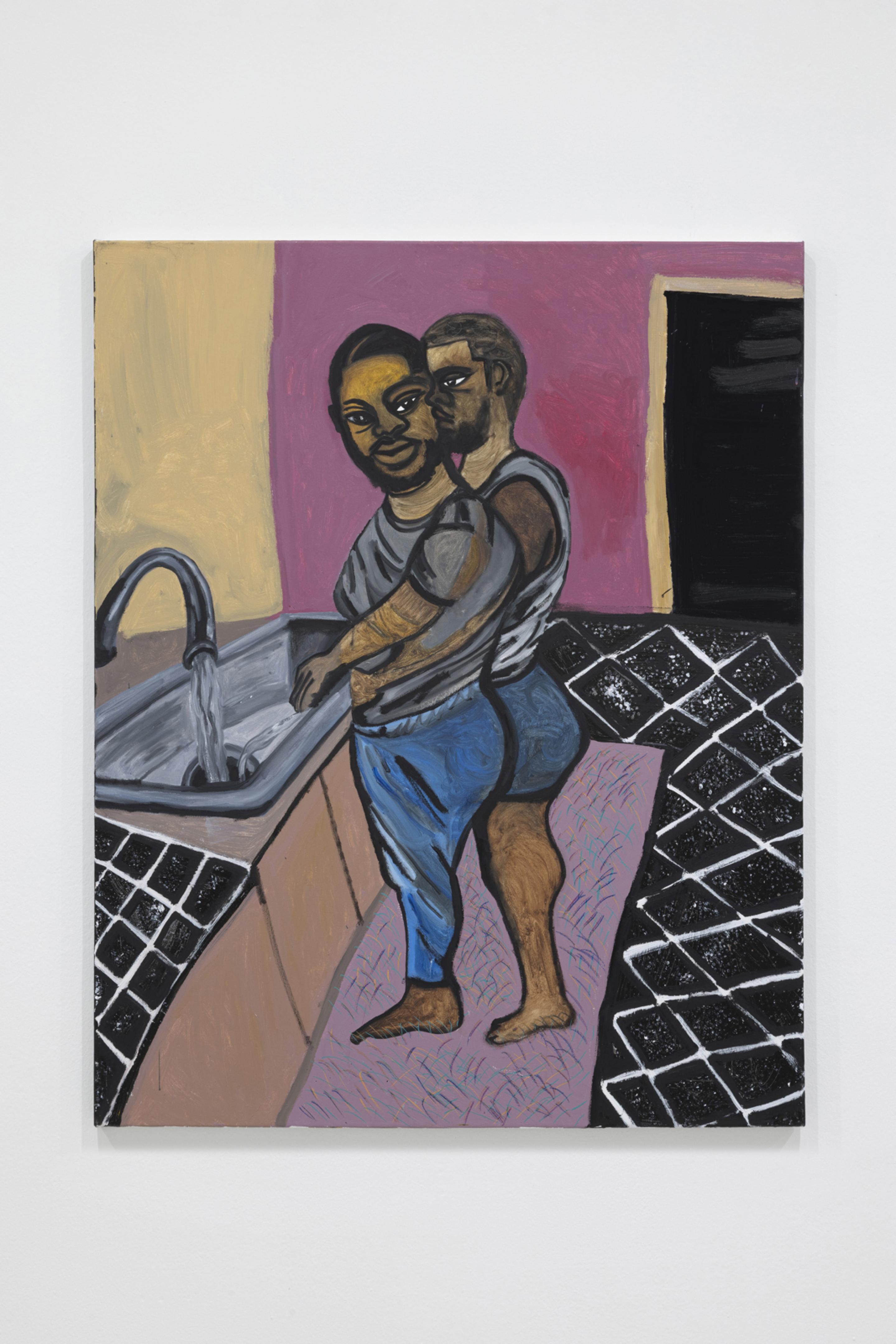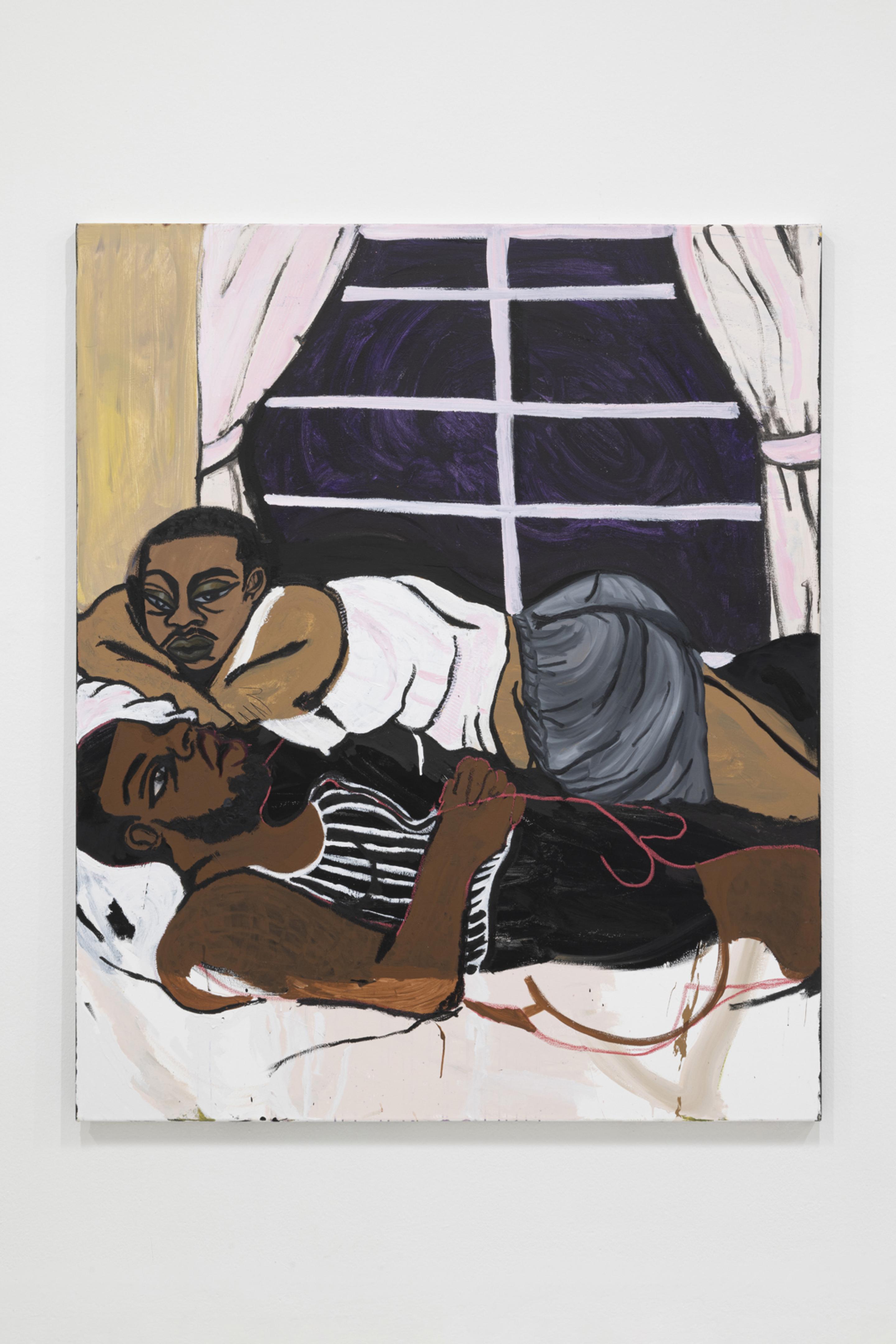 Pen, marker, oil stick, acrylic paint, and photo collage on canvas