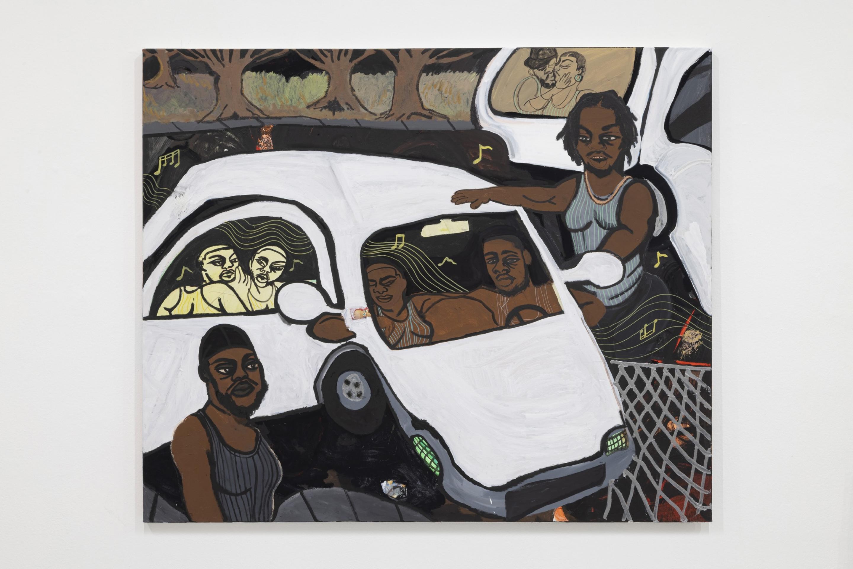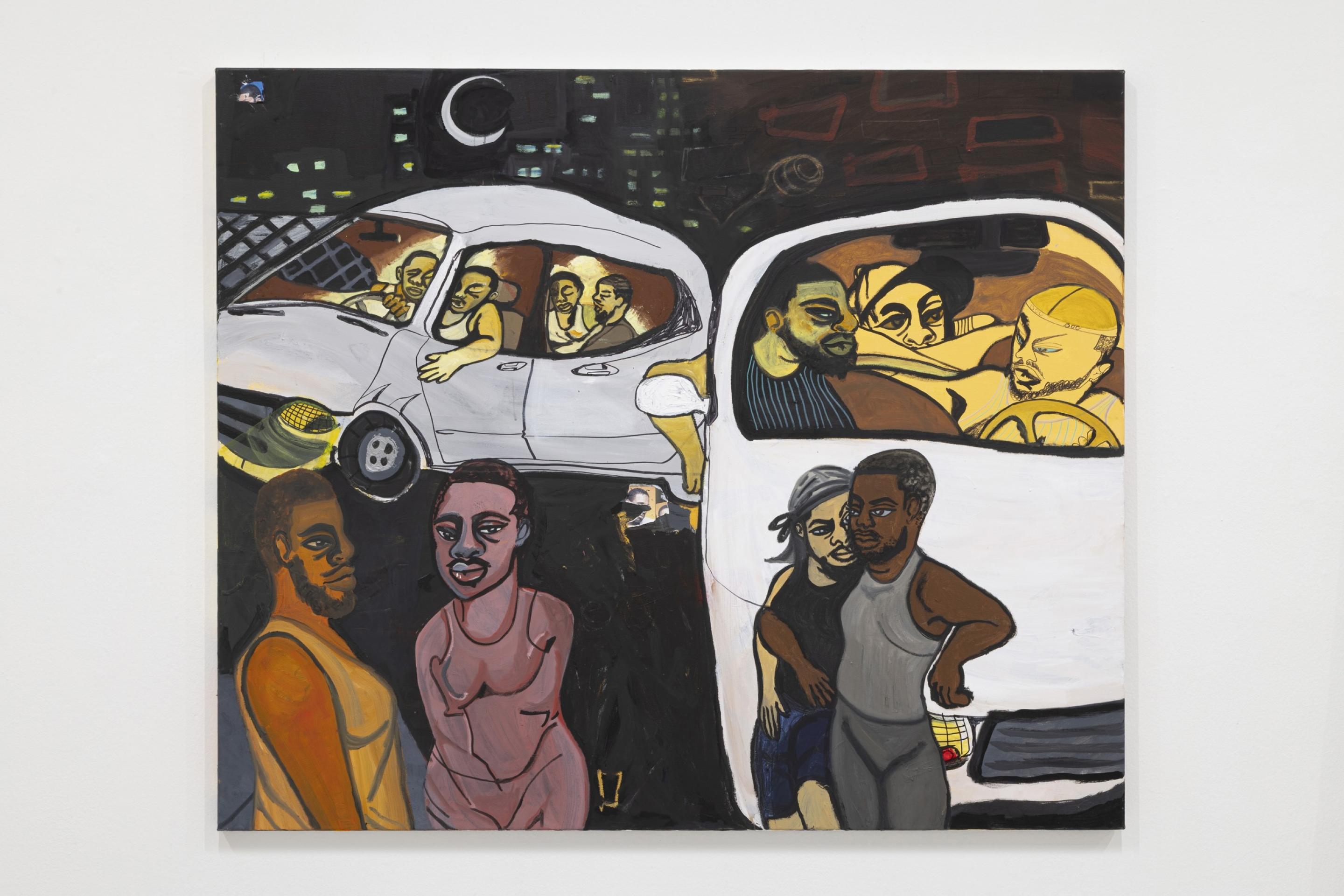 Driving by parked friends, beautiful passengers