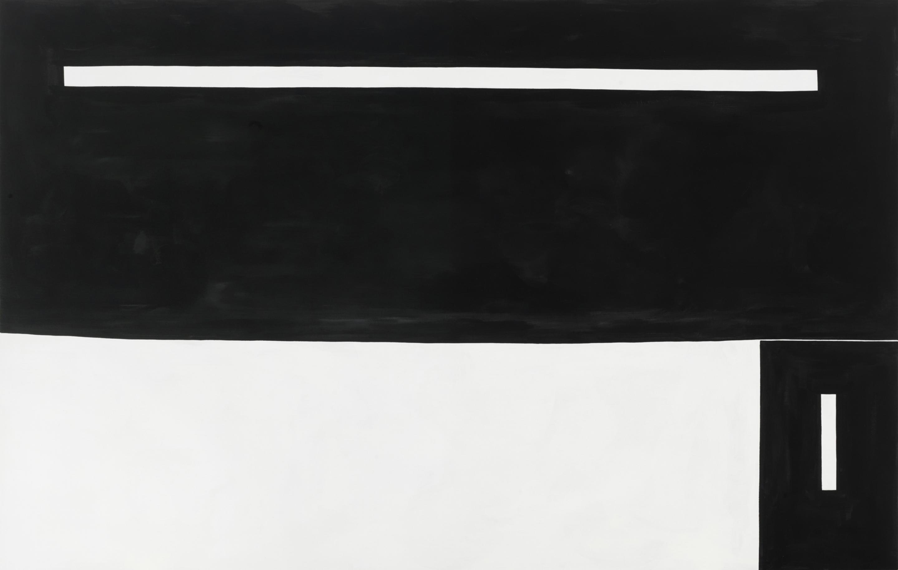 I lavori realizzati in seguito hanno accentuato ulteriormente la sua ricerca sul colore puro e sulla luce: lo sfondo argentato è diventato bianco contrapposto a fasce di colore nero che fluttuano nello spazio pittorico, riempiendolo, e creando una forte opposizione cromatica. Non si tratta di una serie che può essere ripetuta meccanicamente: le opere, che potrebbero sembrare una semplice variazione cromatica degli elementi orizzontali e verticali che le compongono, in realtà presentano notevoli differenze nelle pennellate, nel modo in cui è trattata la superficie con la tempera all’uovo, lavorata con una raffinata emulsione, nell’uso e nelle gradazioni dei colori. Se ci si avvicina alle tele e se le si osserva attentamente, leggere sfumature di colore emergono dallo sfondo. Sempre diversi sono gli elementi che compongono l’immagine e così anche la relazione tra gli spazi non è mai la stessa. Verticale e orizzontale si confrontano, si oppongono, rappresentando la relazione pittorica tra vita e morte.