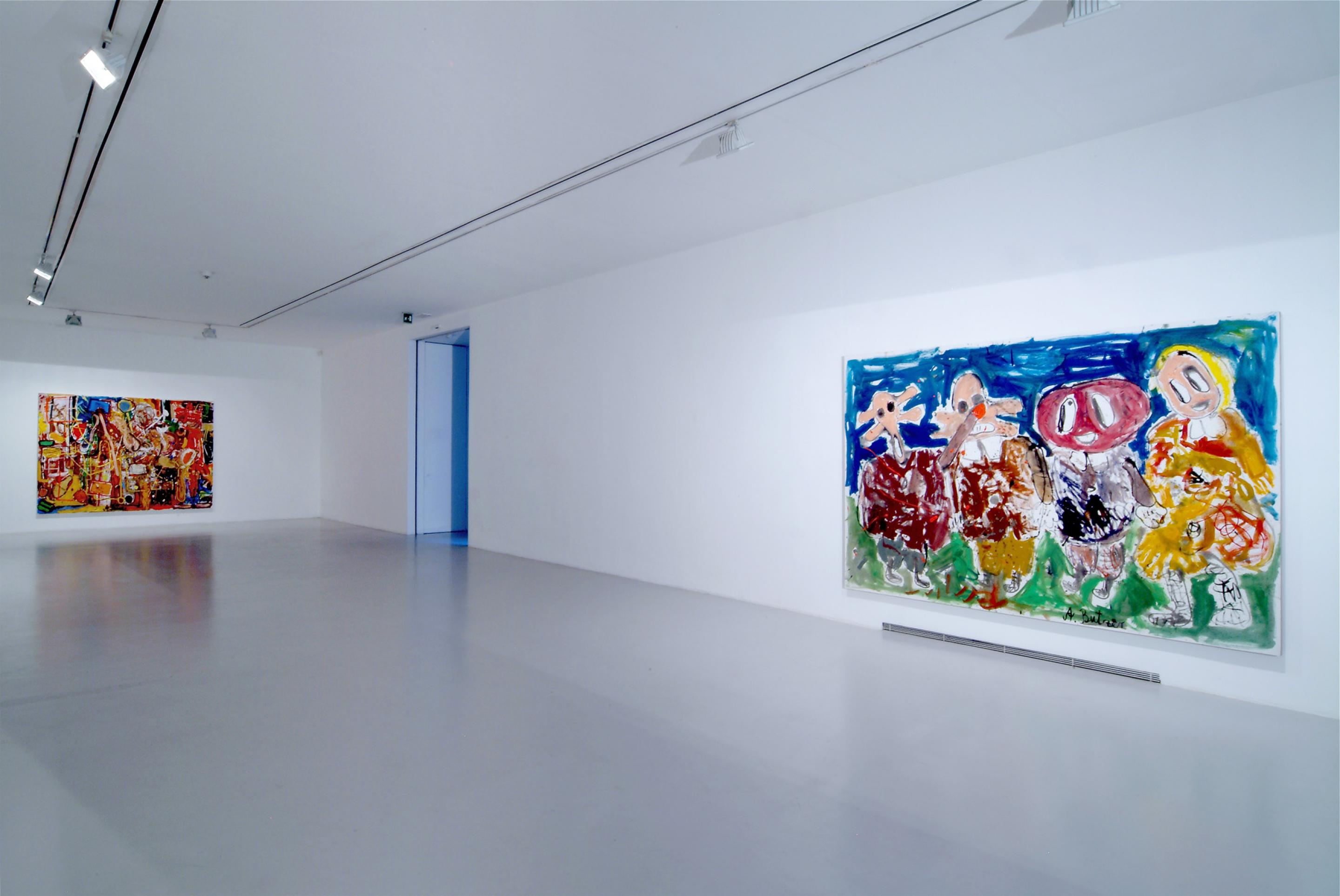 wander in fictious sceneries made by exuberant colours and that don't draw away from the new abstract works because, as the artist says: "The so called abstract and figurative paintings are just interchangeable to me, because they have legitimated one another".