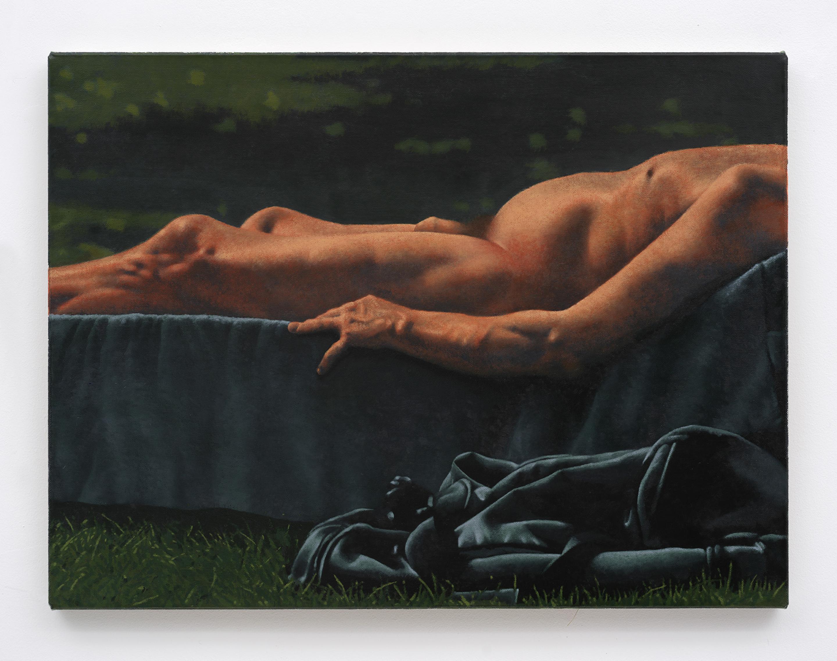 Henry James ha descritto come le relazioni "non si fermano da nessuna parte" ma è compito dell'artista far sembrare che "esse appaiano farlo felicemente". Quando Oliver Osborne descrive la sua figurazione come una sorta di astrazione, io credo che stia tentando qualcosa di simile - per arrestare in qualche modo l'interpretazione, per impedirle di andare troppo oltre e di riportarla a se stessa. Ci sono modalità formali e materiali attraverso cui l'artista porta avanti questo obiettivo - è seducente vedere la tecnica precisa come risultato di un processo pittorico lento e meticoloso. Ci sono cambiamenti intenzionali nella composizione degli elementi, che rafforzano il senso del metodo, misurate differenze tra "una mela qui" o "una mela lì". Questo non è un silenzio warholiano o uno svuotamento di significato, piuttosto, la loro scansione è come l'afasia indotta dall'enunciazione accurata della stessa parola più e più volte.