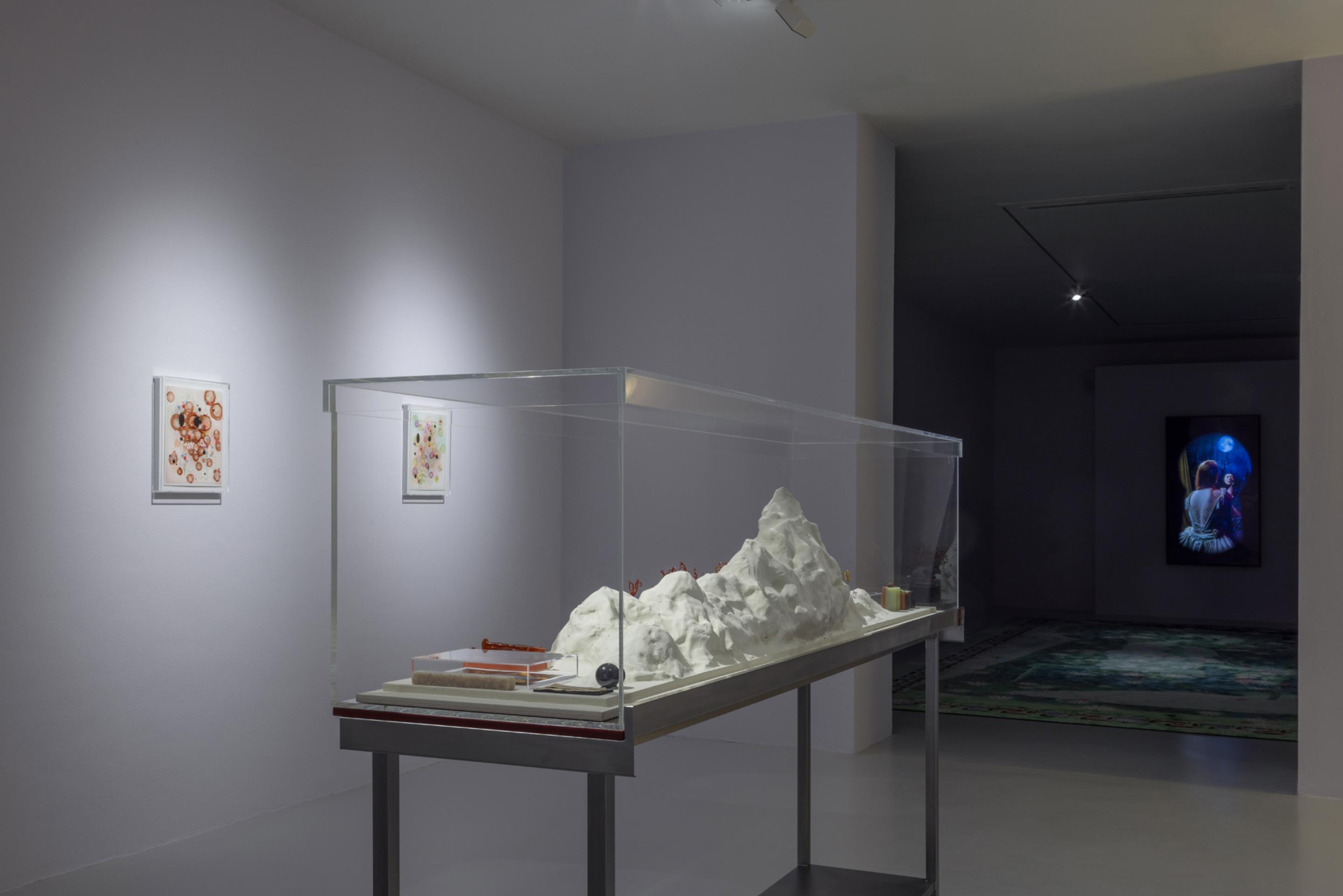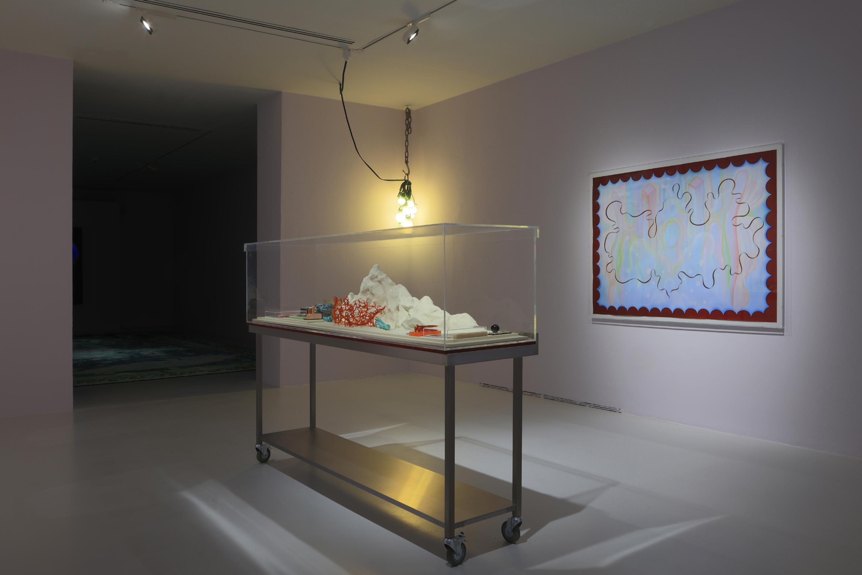 Lavish Phantoms of the House of Dust [Fastosi fantasmi della Casa della Polvere] è il titolo di un’installazione immersiva di Tai Shani. Di questo nuovo corpus di opere fanno parte sculture, dipinti, disegni e animazioni in cui storie gotiche si intrecciano a oggetti-feticcio e forme illusorie. Ne deriva un ambiente visivo carico di riverberi spettrali e tracce infestanti che si insinuano attraverso le striature del tempo e dei suoi echi.