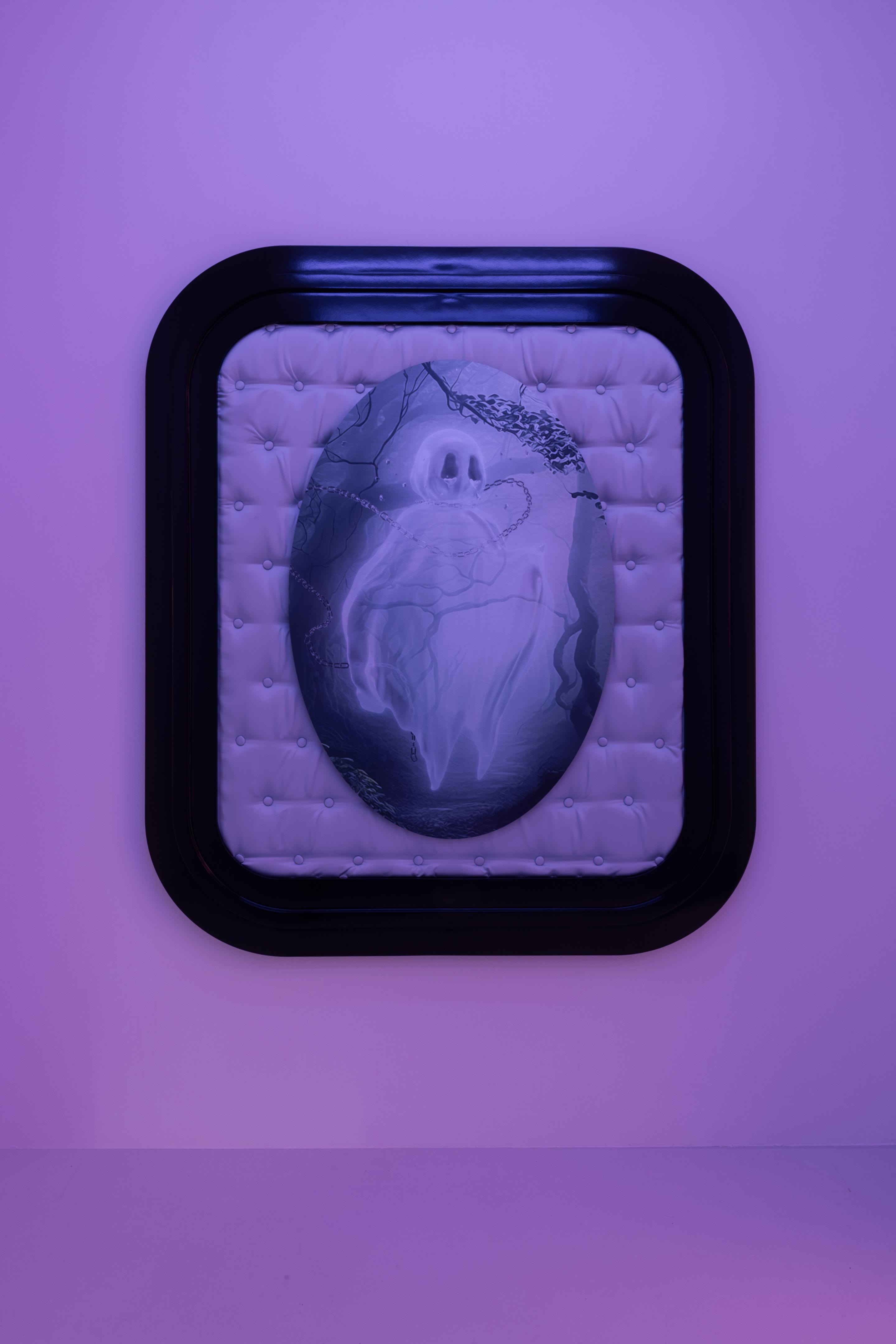 Lavish Phantoms of the House of Dust is an immersive installation by Tai Shani. This new body of work spans sculpture, paintings, drawings, and animation that weave together gothic histories, fetish objects, and phantasmic forms. The result is a visual environment filled with spectral echoes and haunted traces that tunnel through the striations of time and its echoes.