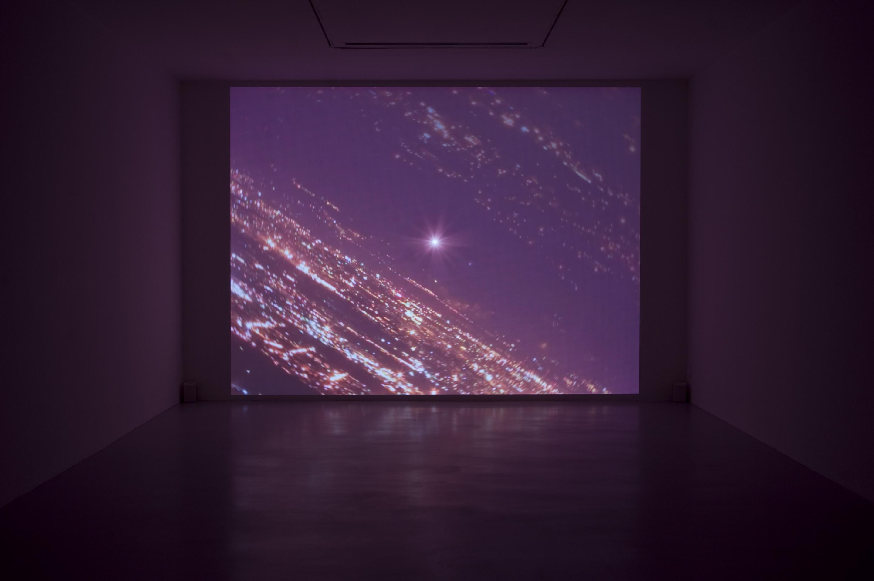 All the works in the exhibition have the same title: “Orbite Rosse”. Back in 1998, the artist already showed a double video projection called “Orbite” in the gallery. In Toderi’s work references to orbits have been constant ever since the beginning of her career: be it the moon that moves around the Earth, the planets that move around the sun, satellites or spaceships that move around planets, or even a football inside a stadium, or the movements of a spinning top on a pavement.