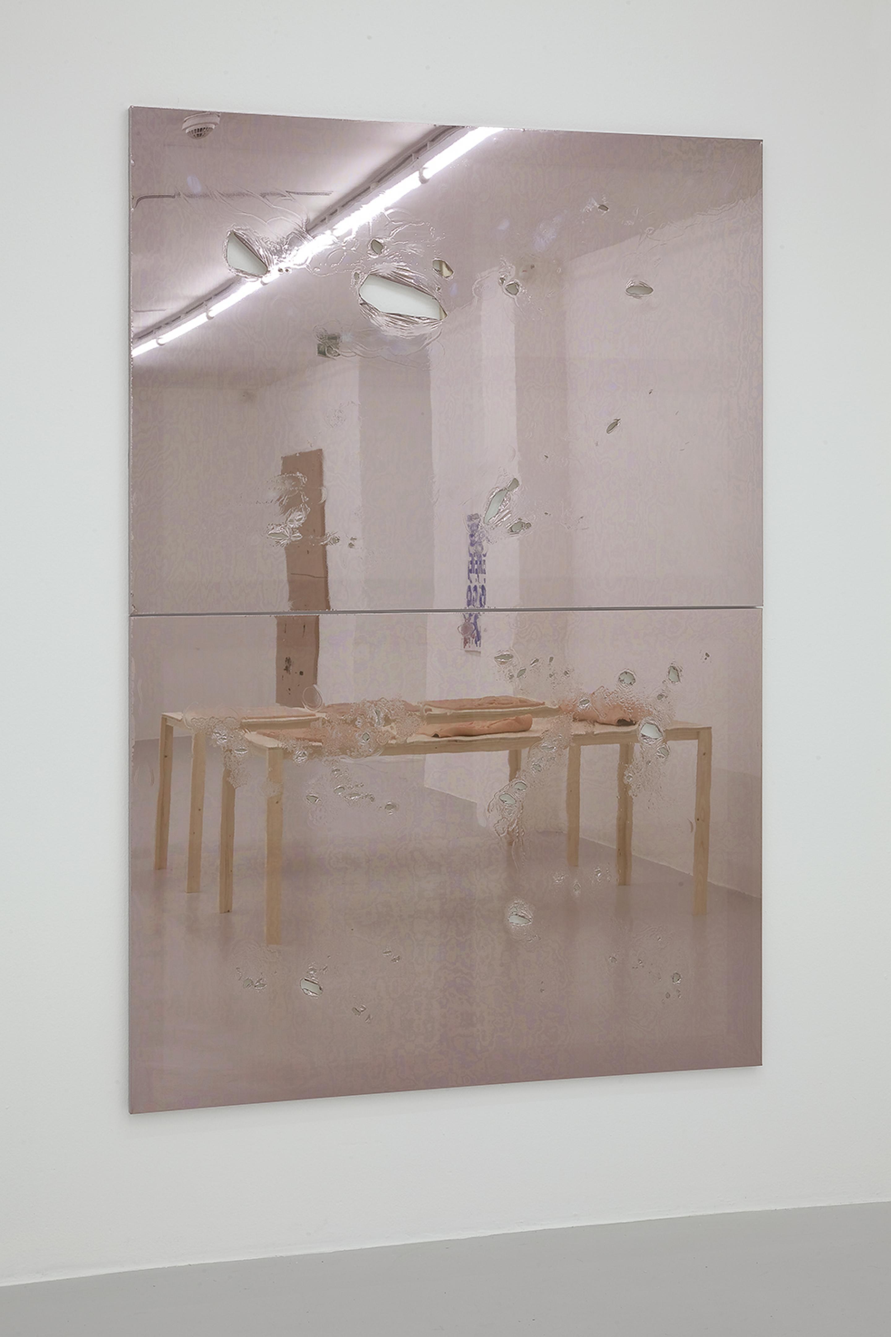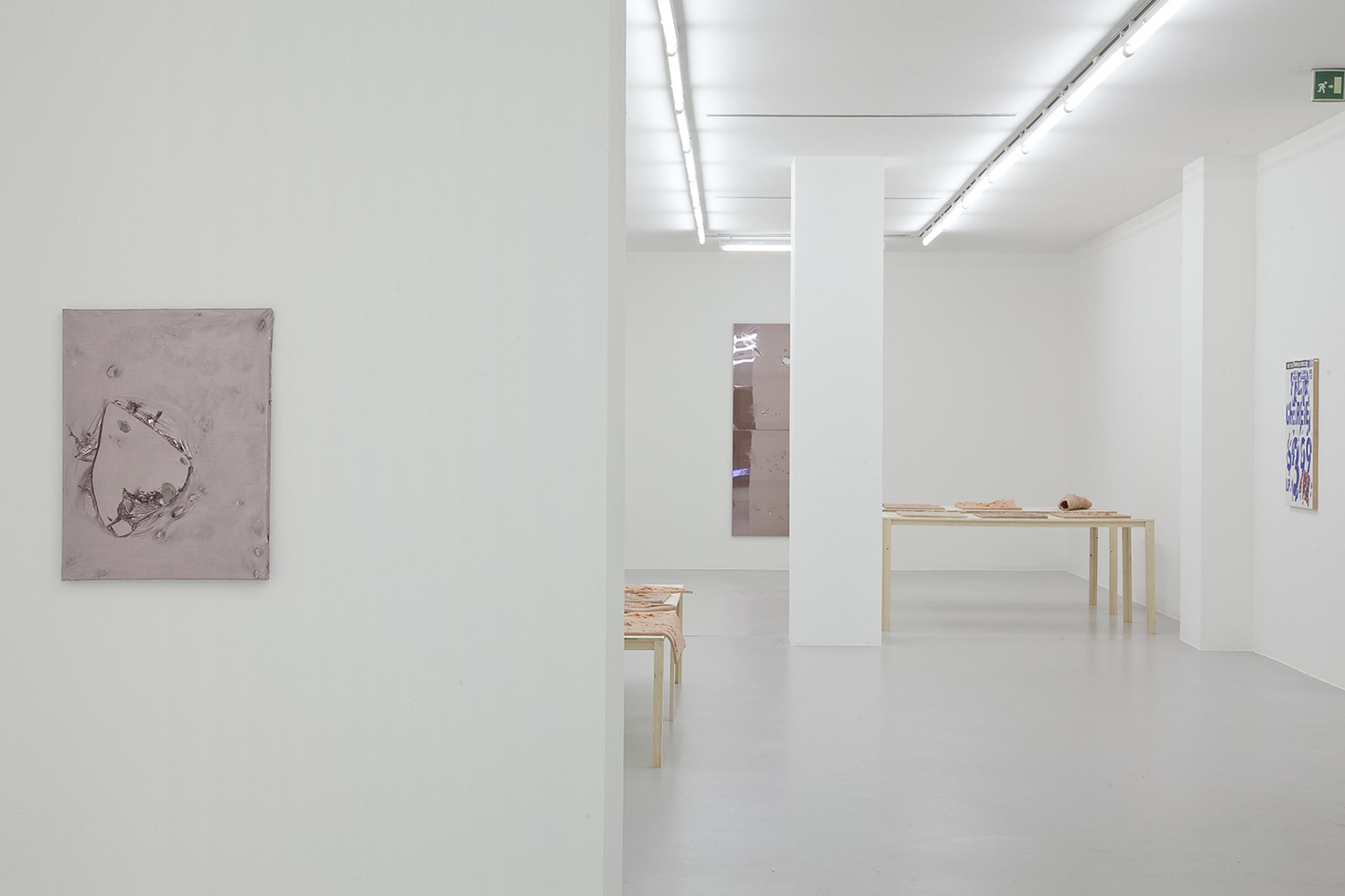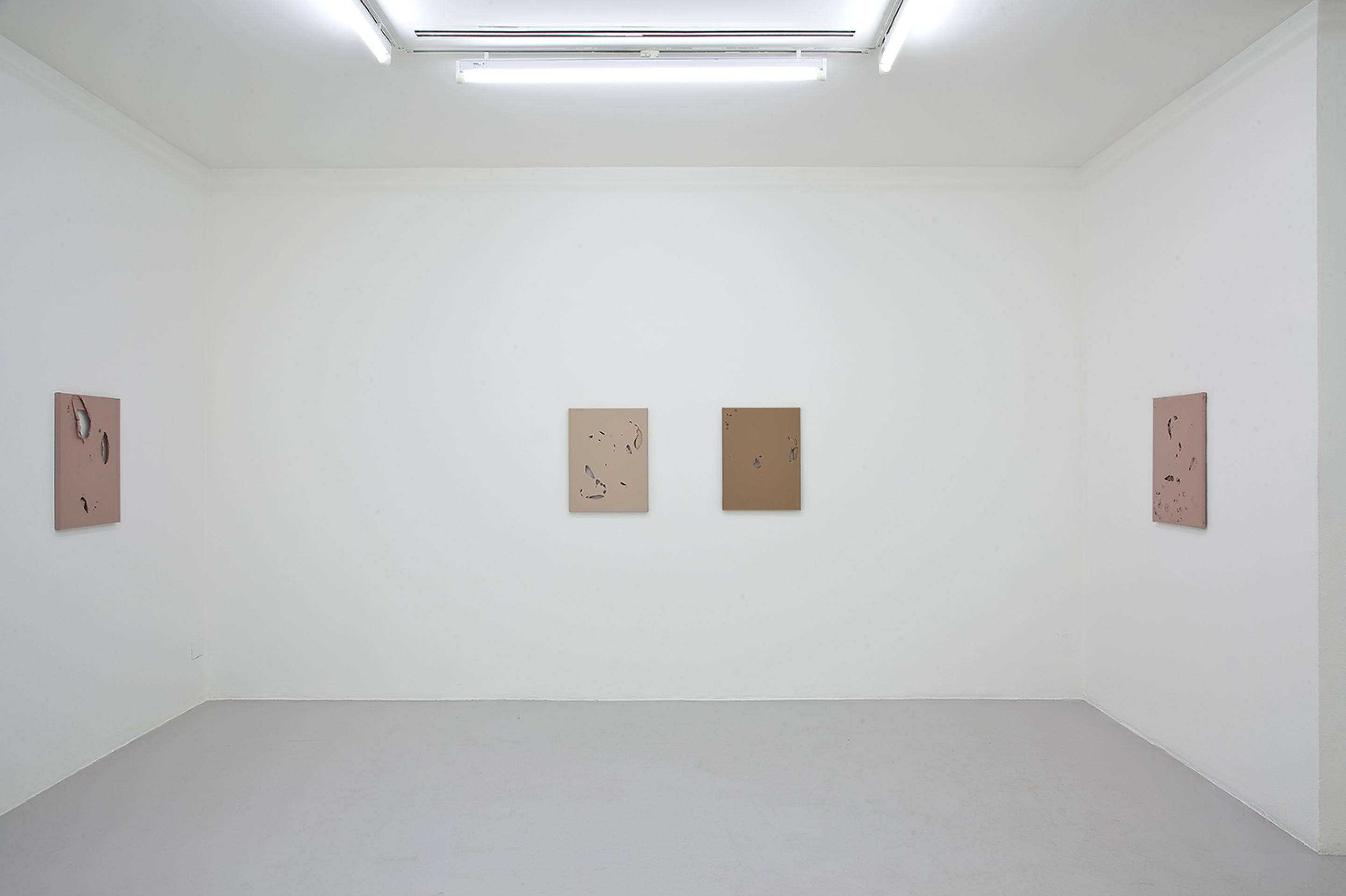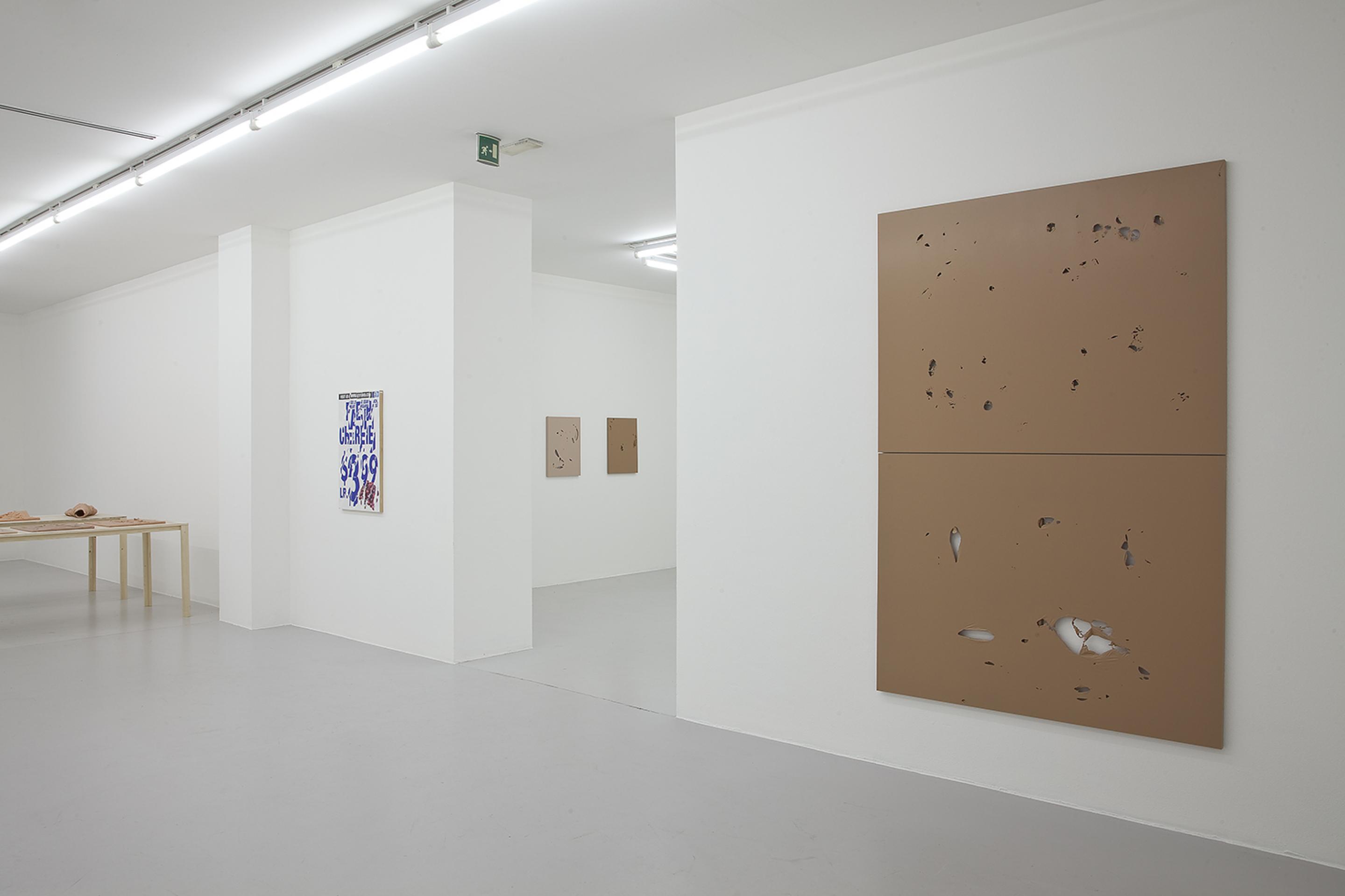 This exhibition presents new work made from polyester window film, a set of mannequins (a collaboration between Gambaroff and Nina Yashar) as well as new paintings made from supermarket posters and silicon works, made from molds of non-exhibited paintings.