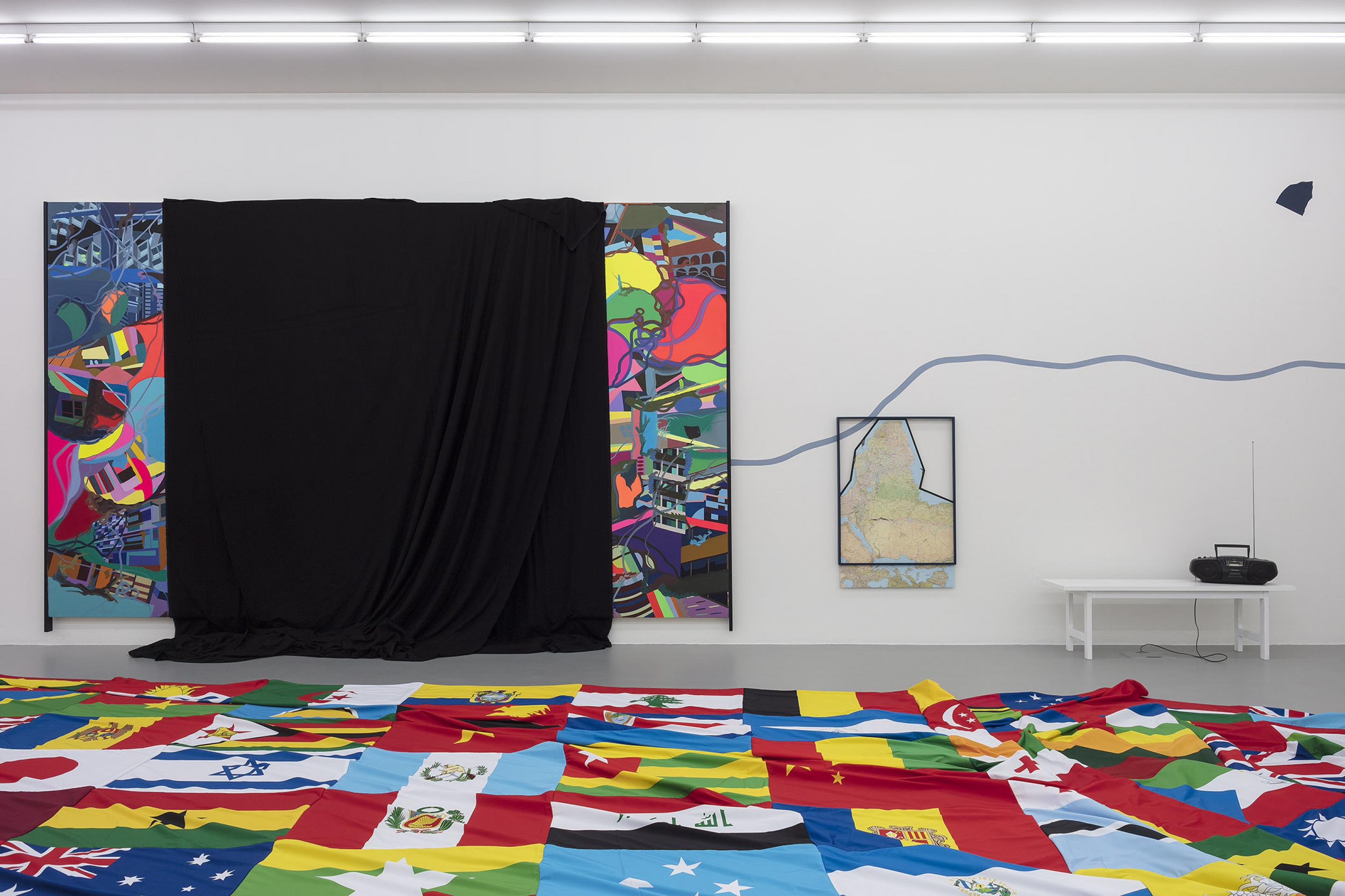 Per la mostra in galleria, Ackermann ha tratto ispirazione dalle mappe di Alighiero Boetti: arazzi in cui le diverse nazioni sono rappresentate dai colori delle rispettive bandiere, formando così delle raffigurazioni ideologiche del passare del tempo e dei cambiamenti geopolitici, e affermando al tempo stesso l'idea di un mondo unito.