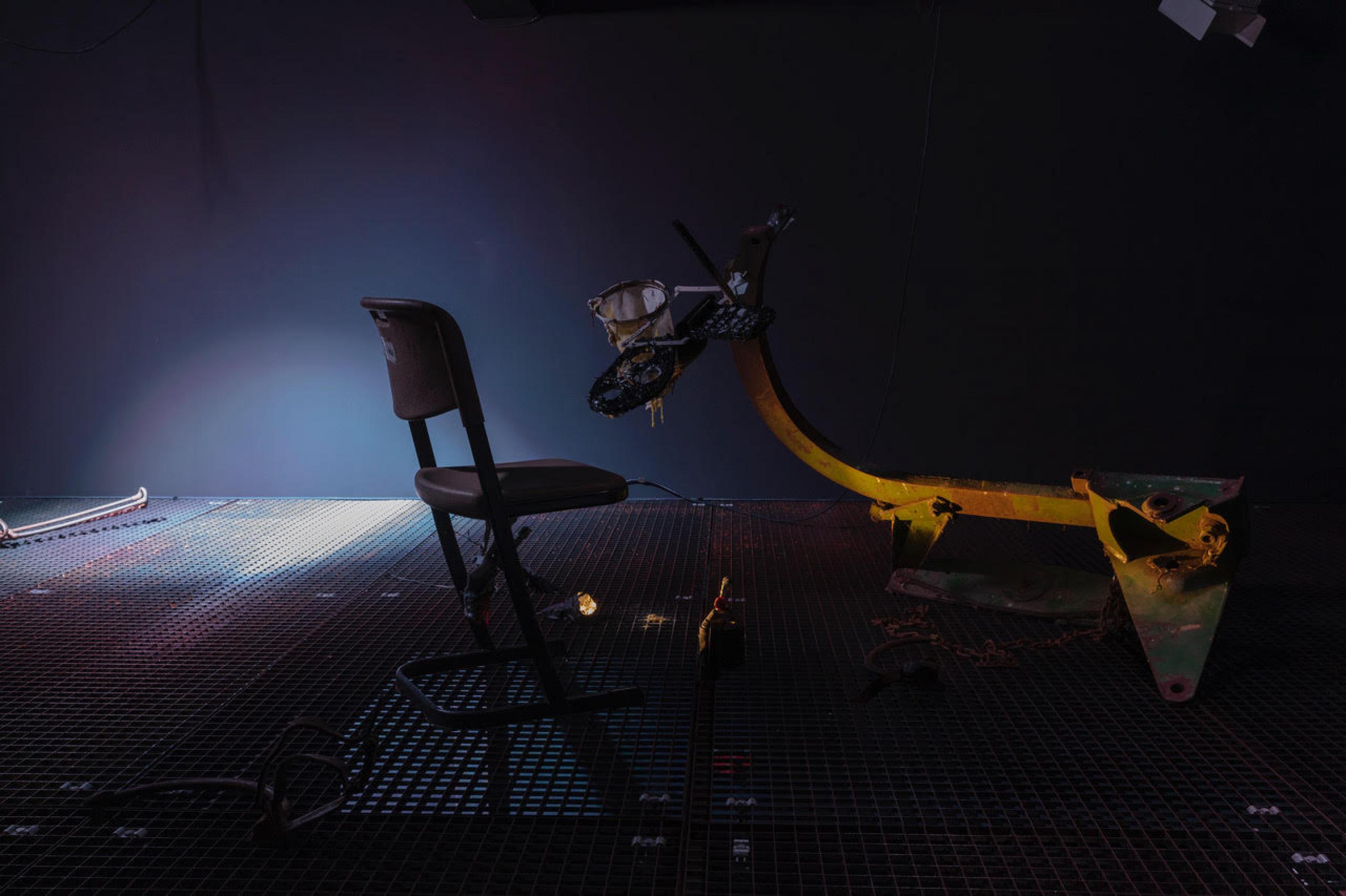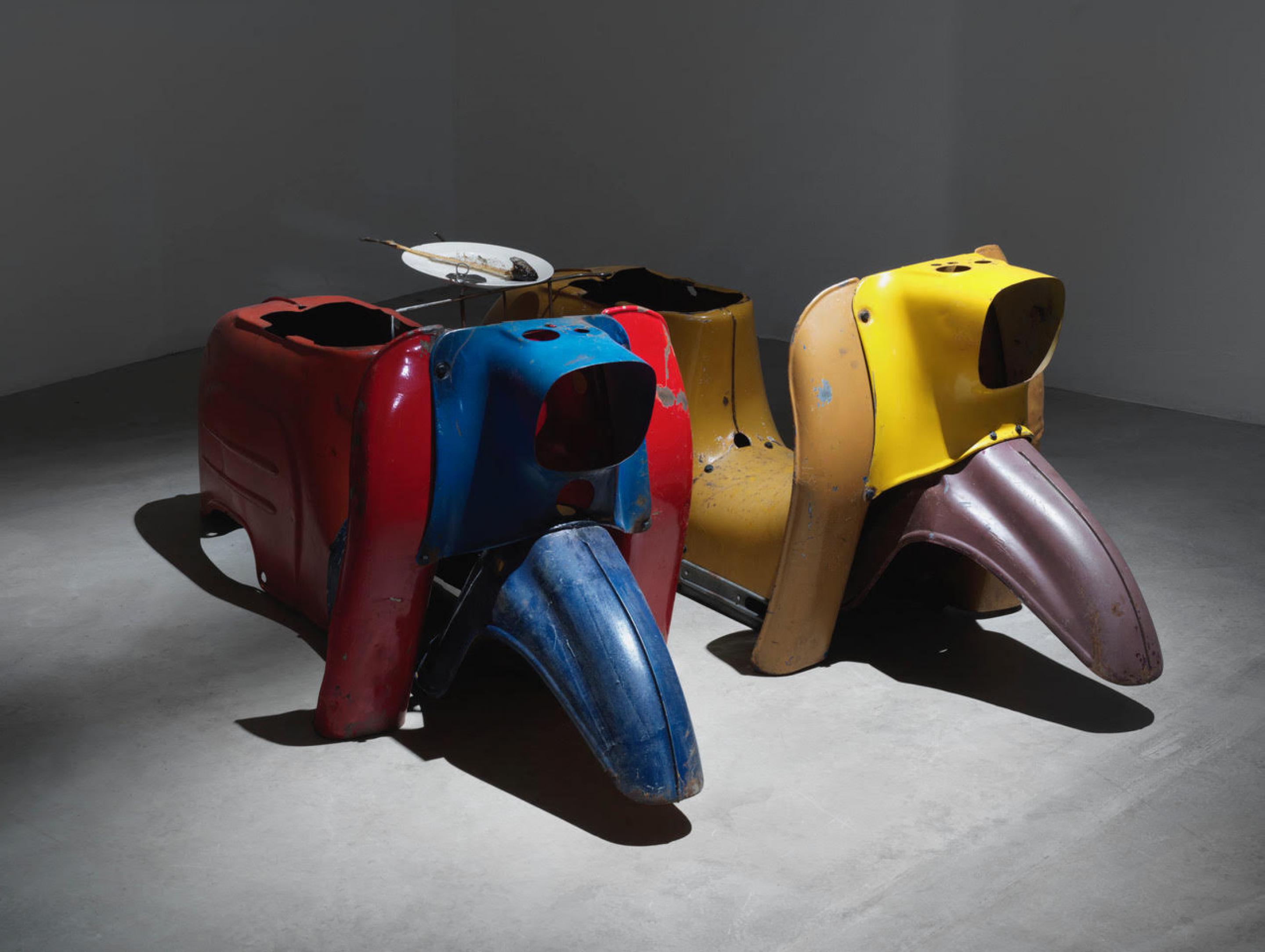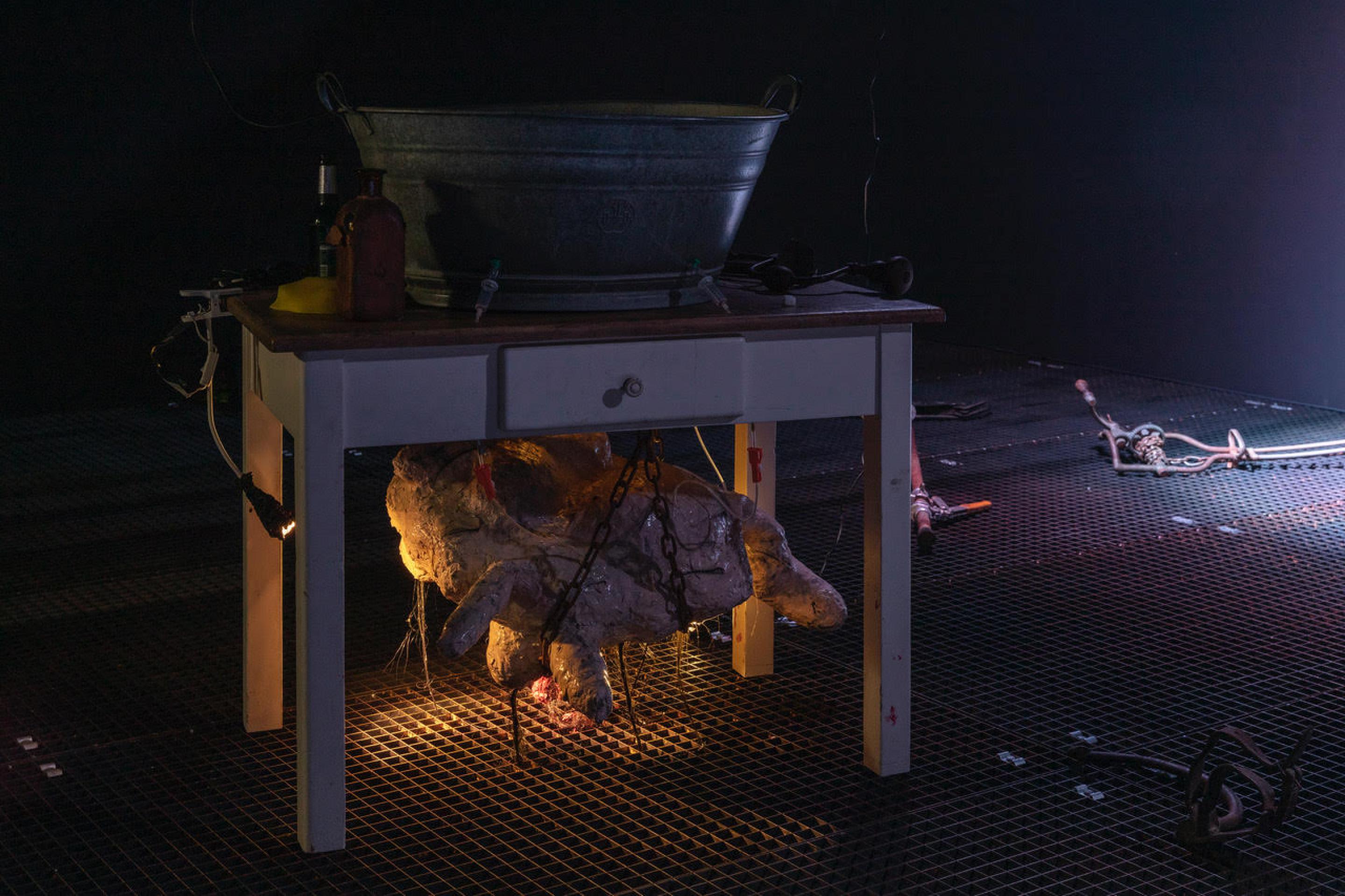 John Bock, im antliTZ des SchädelapparaTZ, Installation view, Neuer Berliner Kunstverein, Berlin, 2019. Photo: Jens Ziehe