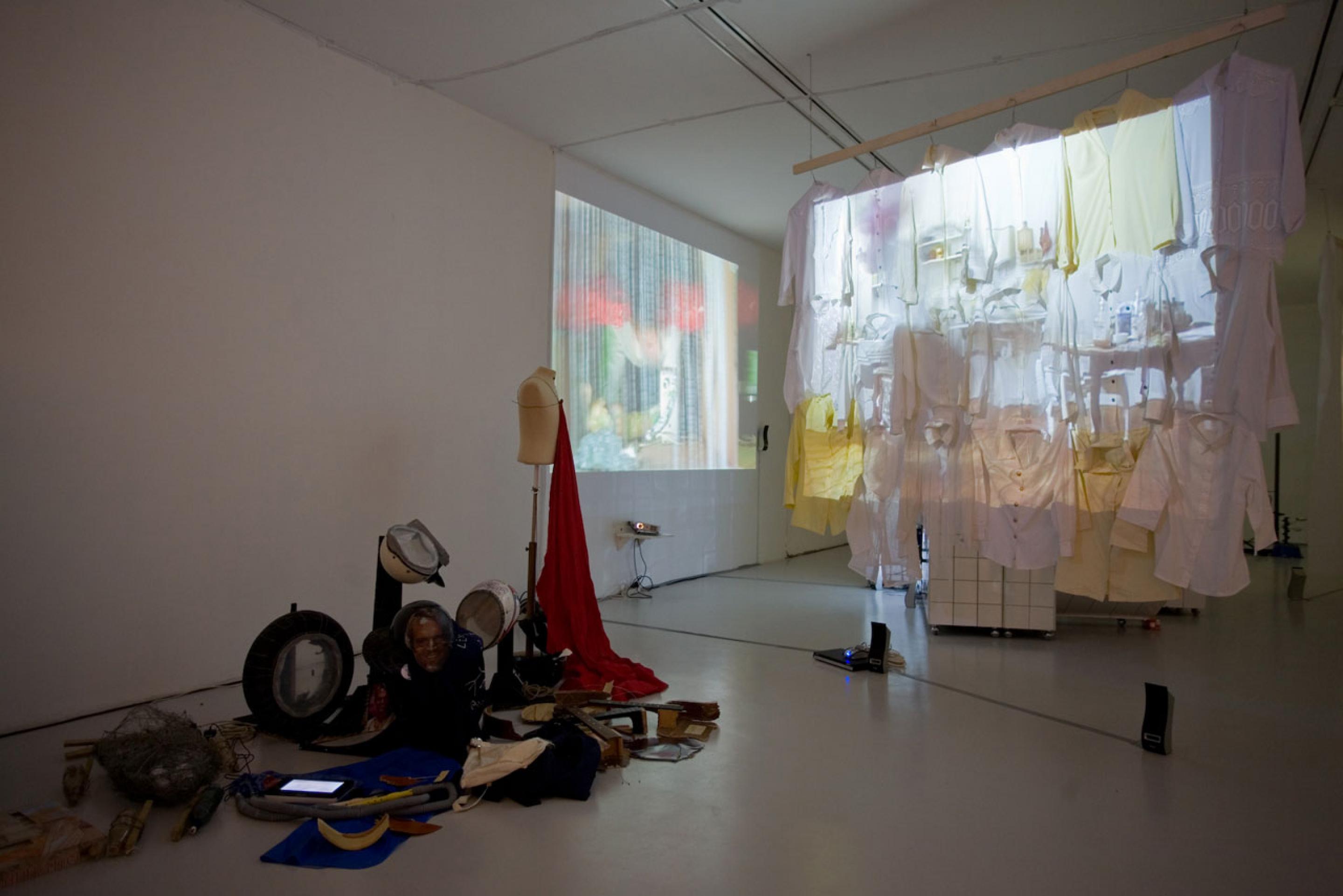 John Bock, after having experimented the narrative language in his late works, with this solo-show comes back to his performer nature.