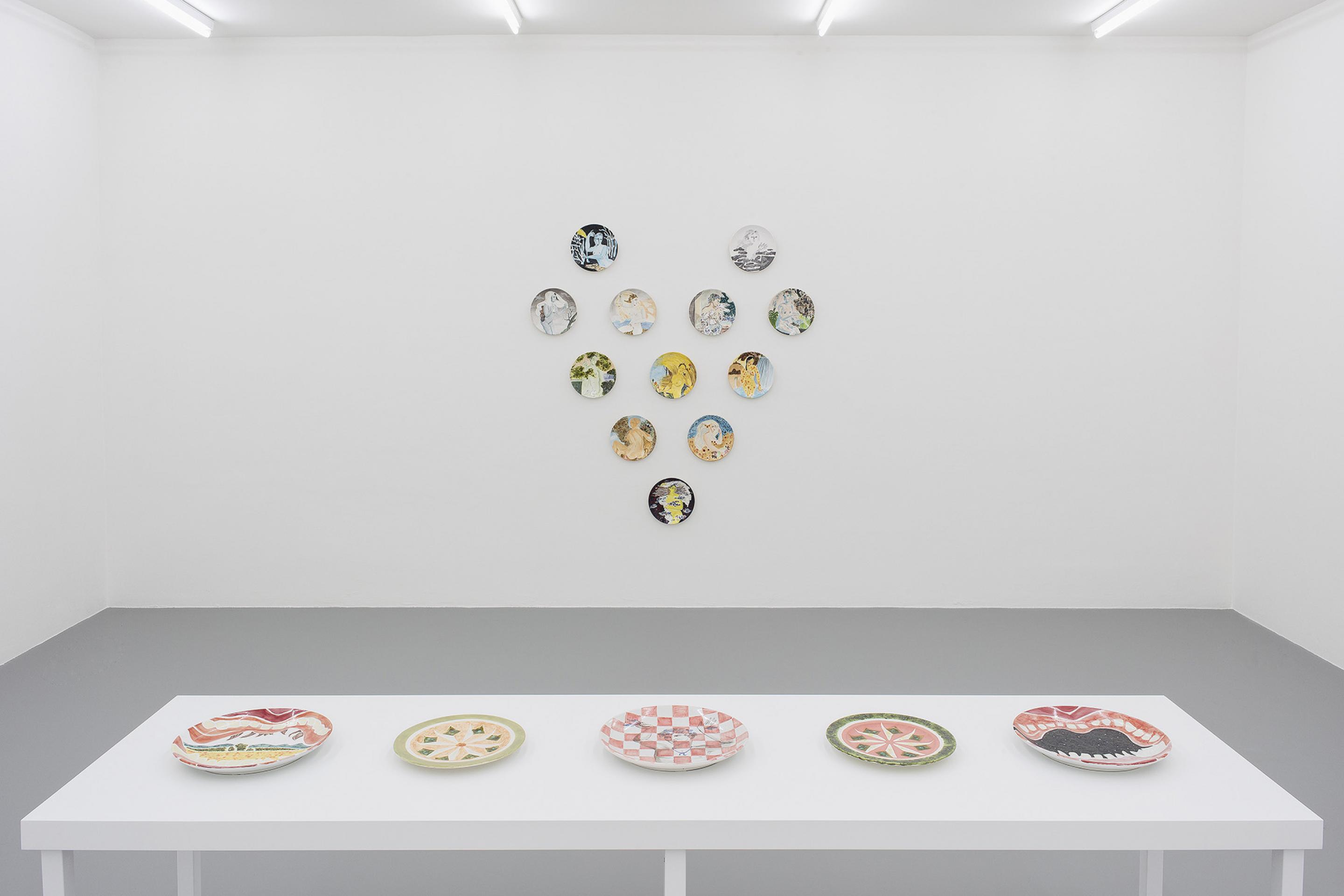 Recent group exhibitions: Sputterances, Metro Pictures, New York, USA (2017); That Continuous Thing: Artists and the Ceramics Studio, 1920–Today, Tate St. Ives, St. Ives (2017); Shelf Paintings in collaboration with Fredrik Vaerslev, All Around Amateur, Bergen Kunsthall, Bergen; Le Consortium, Dijon (2016); DAS INSTITUT with Allison Katz in DAS INSTITUT, Serpentine Gallery, London (2016); The Violet Crab, David Roberts Art Foundation, London (2015); Yes, We’re Open, Gió Marconi, Milan (2015); Puddle, Pothole, Portal, Sculpture Centre, New York (2014).