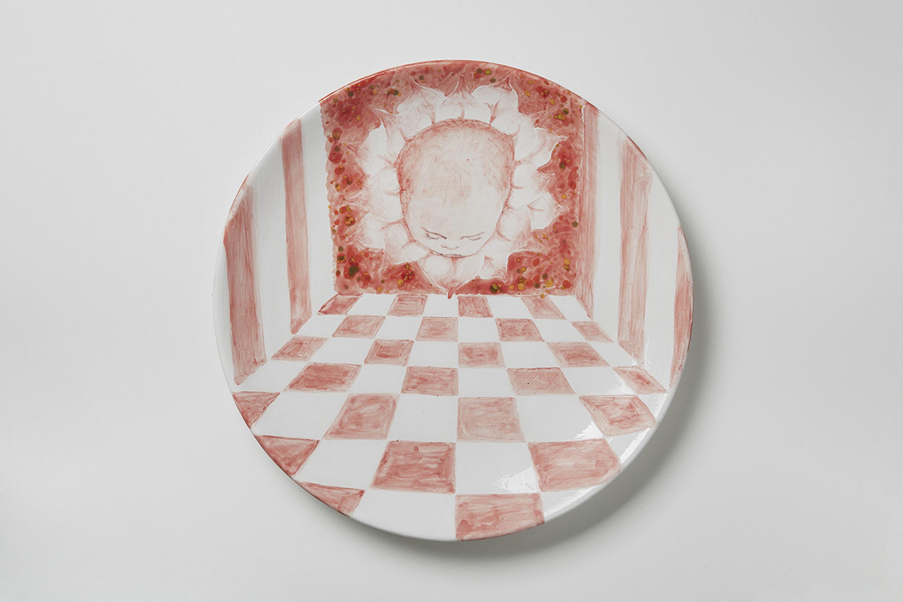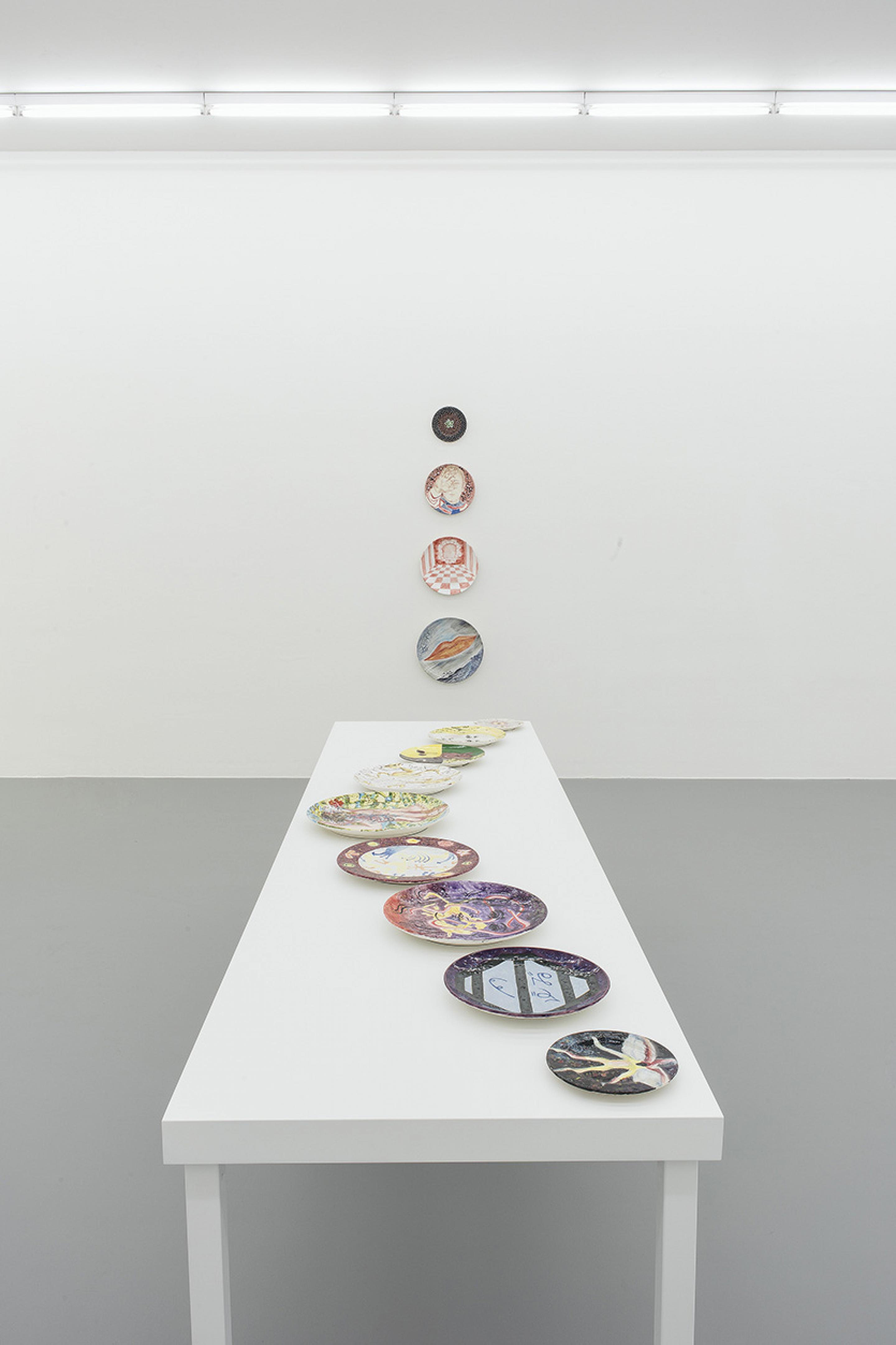 L'attrazione per la smaltatura dei piatti è interamente basata sulla non conoscenza del risultato finale. Ci sono così poche tecniche in cui la pittura può essere così tanto basata sul caso, in cui la cottura è metà del gioco. Gli smalti assumono via via colori e trame completamente diversi da quelli che avranno alla fine; la forza primordiale delle temperature vulcaniche porta al loro caos estetico. Piccoli cristali di rocca immersi nella sostanza liquida si trasformano chimicamente e imitano gli effetti di diverse ere geologiche - minerali, la litosfera, evoluzione- così come sintesi più contemporanee - plastica, dolcetti, tintura tie-dye, farcitura delle torte, glitter. Quello che emerge è spesso una sfida alle mie aspettative e ai miei gusti.