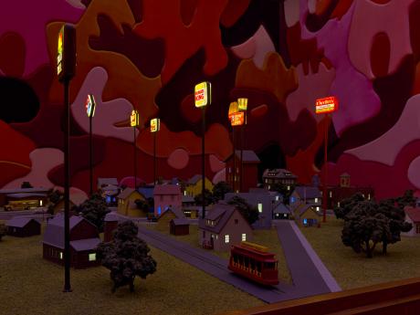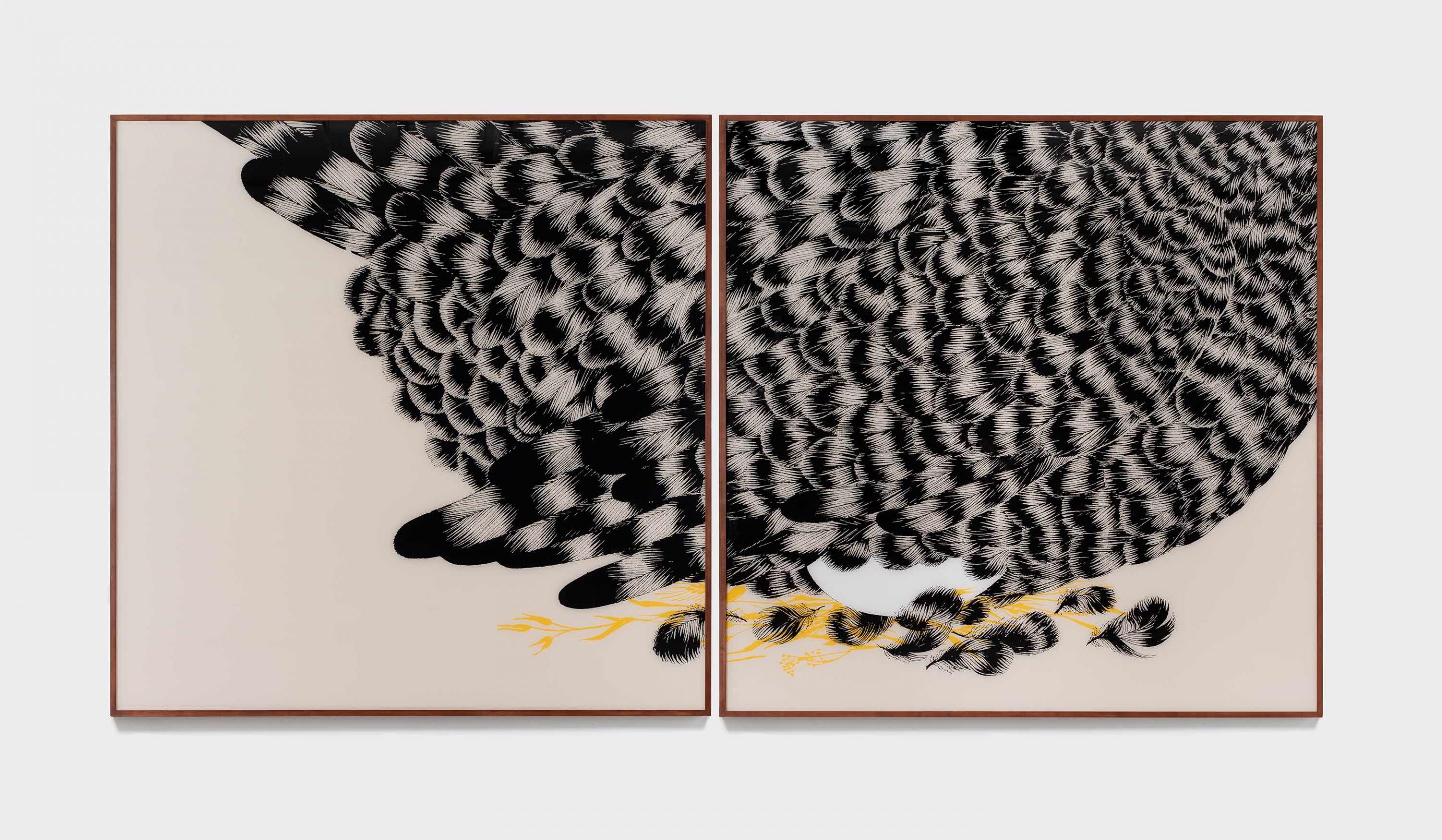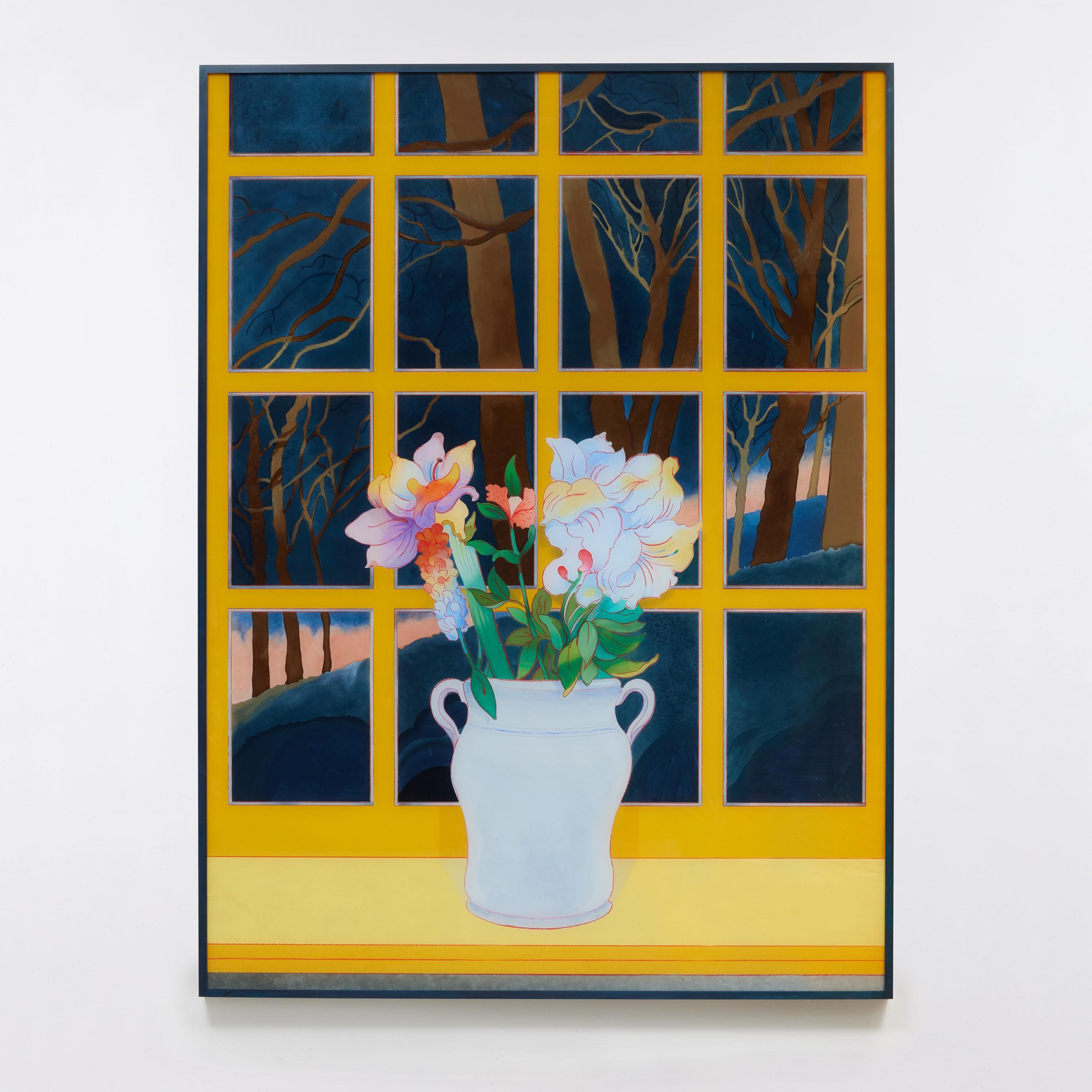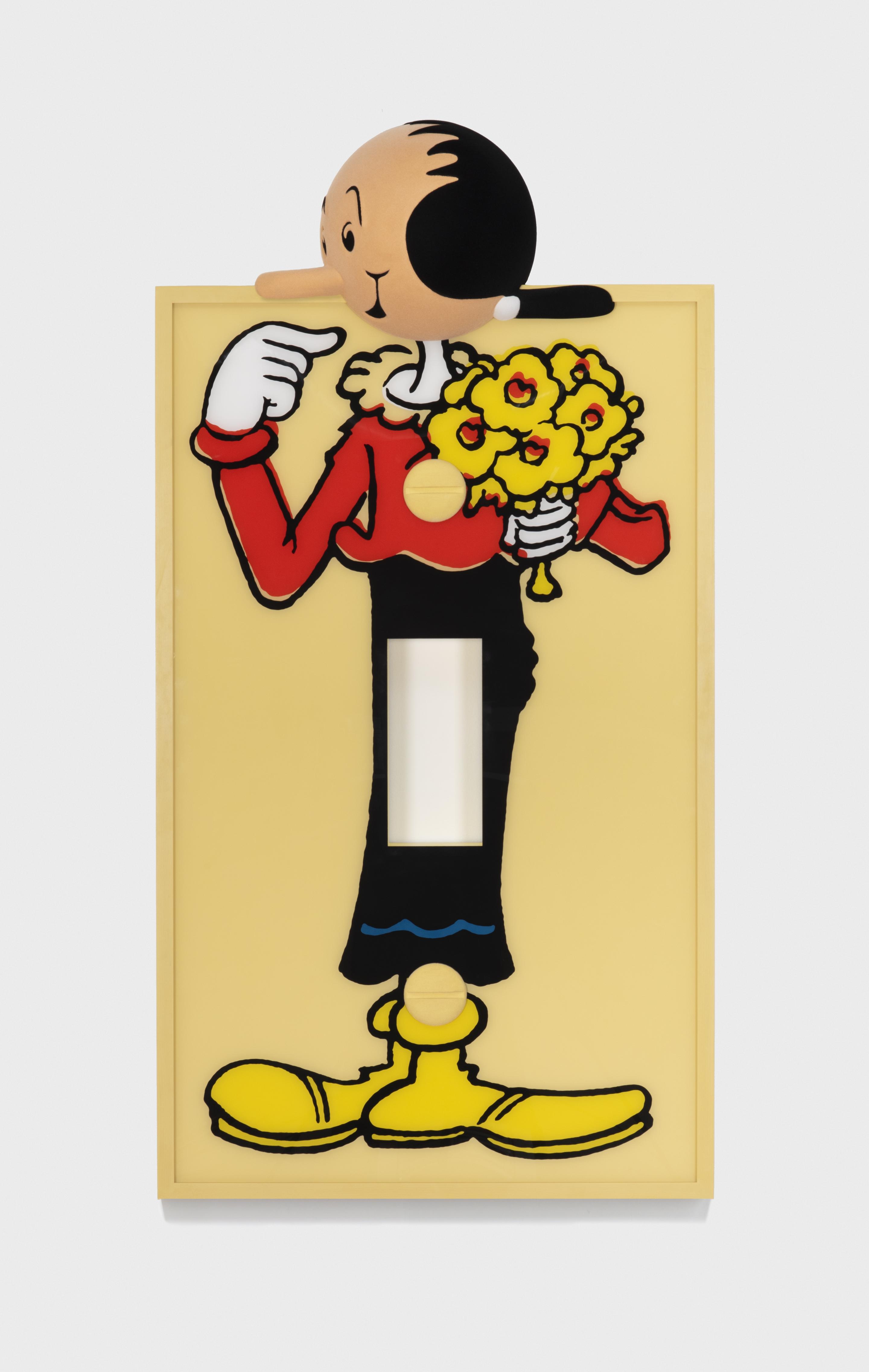 Plexiglass, Flashe paint, sequin pins, foam, velvet, hardware, wood frame