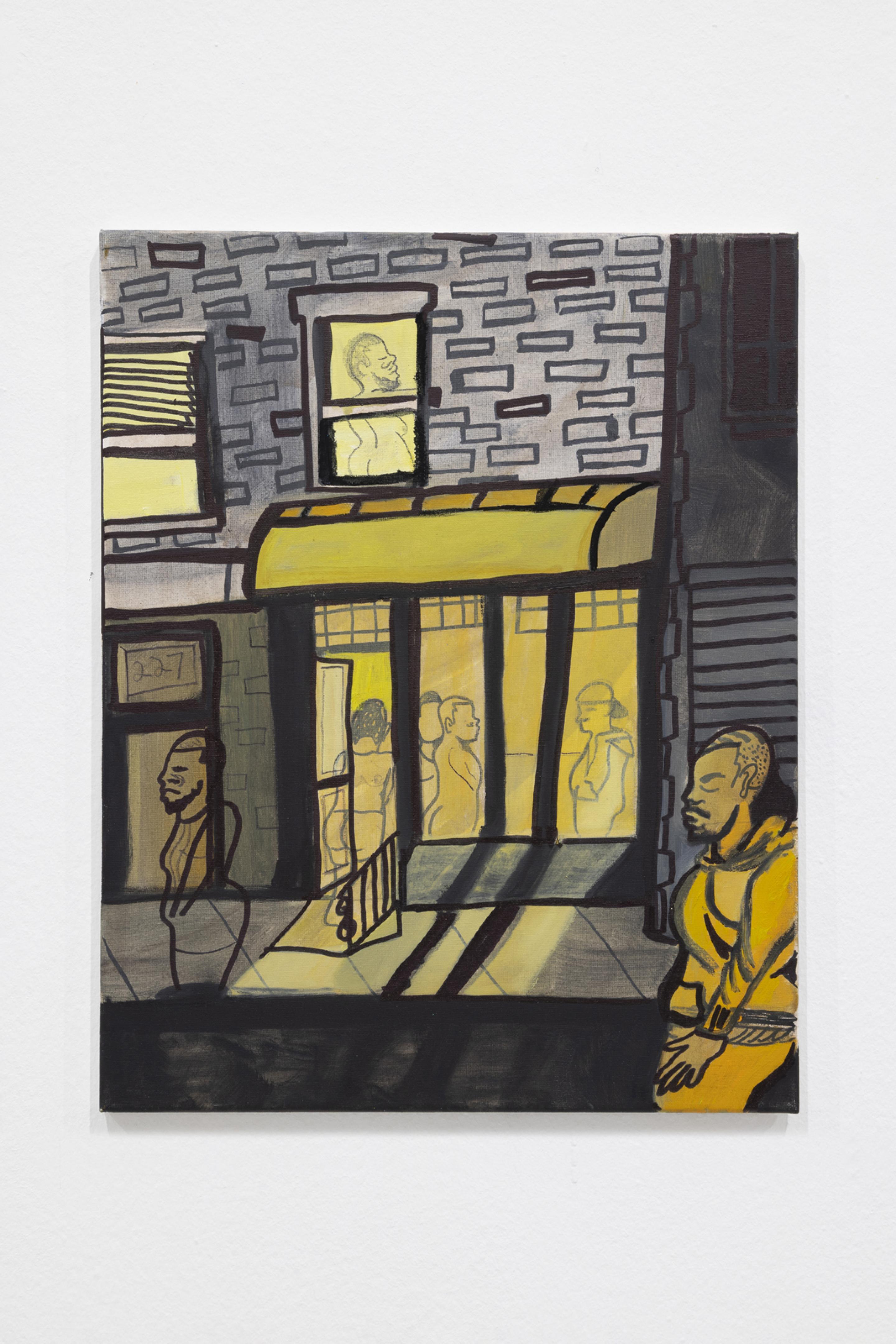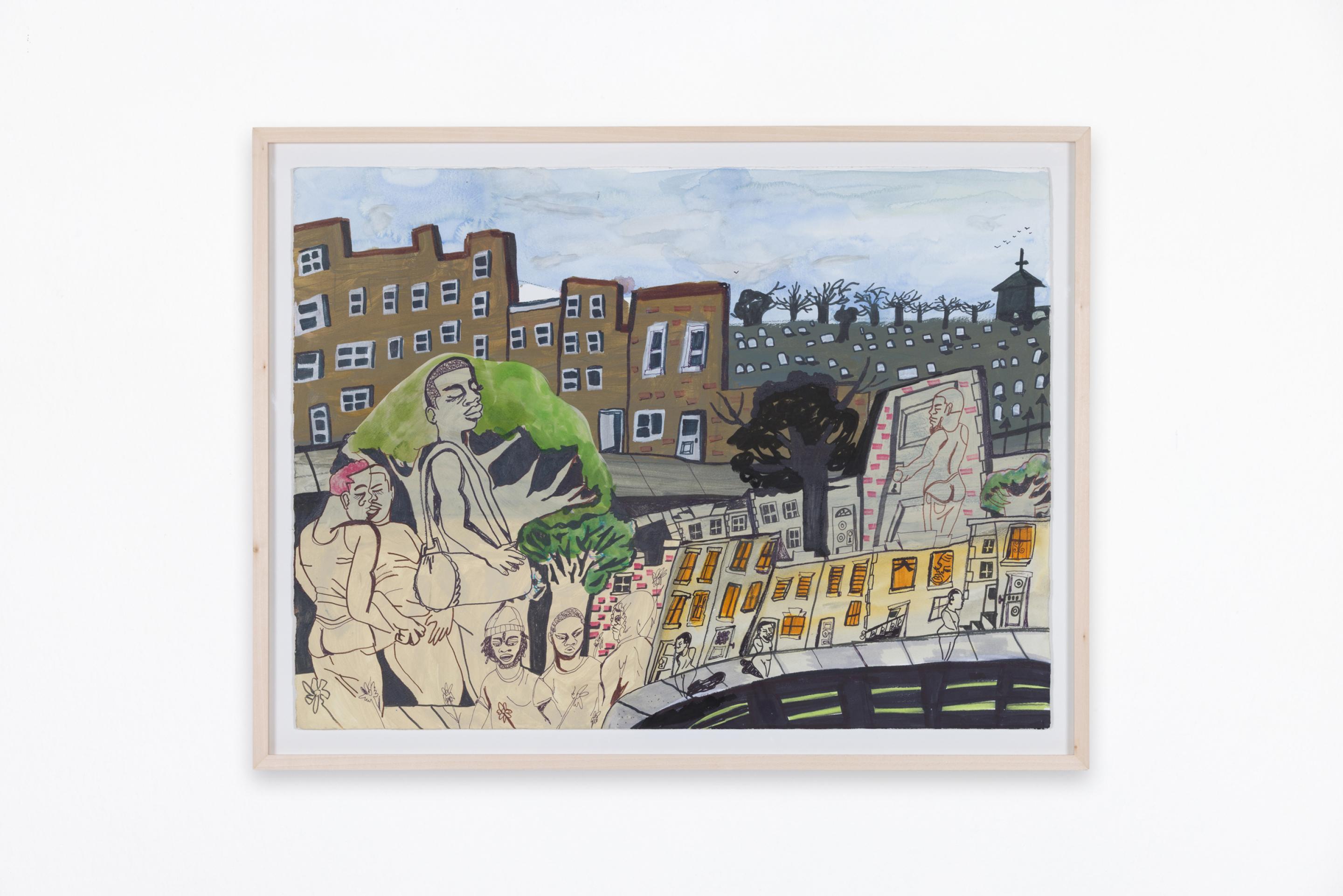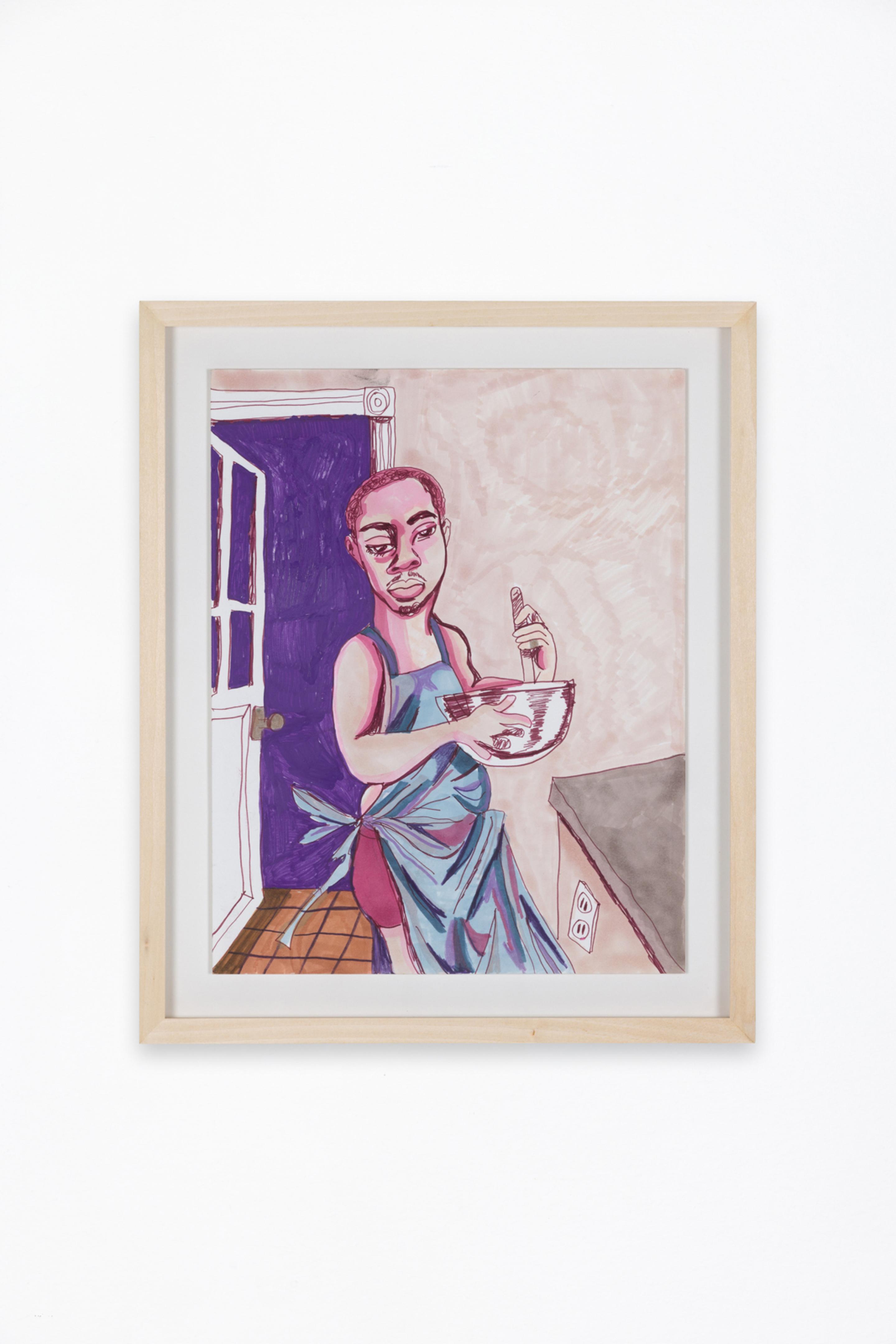 Pen, marker, oil stick, acrylic paint, and photo collage on canvas