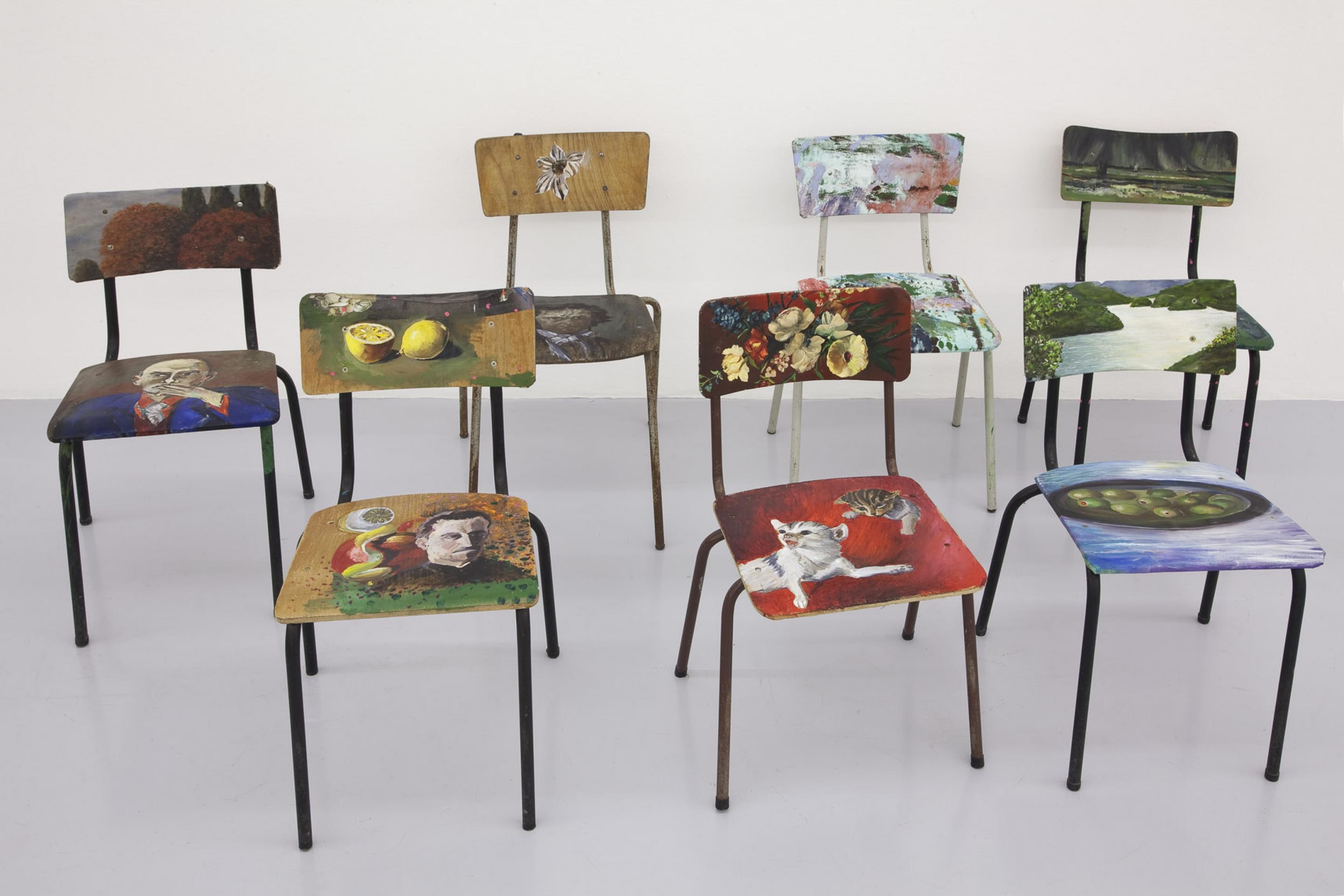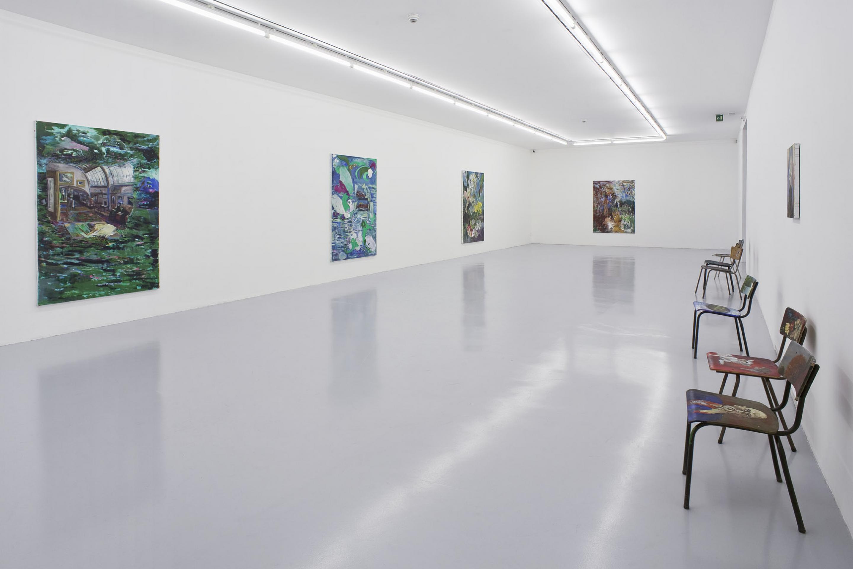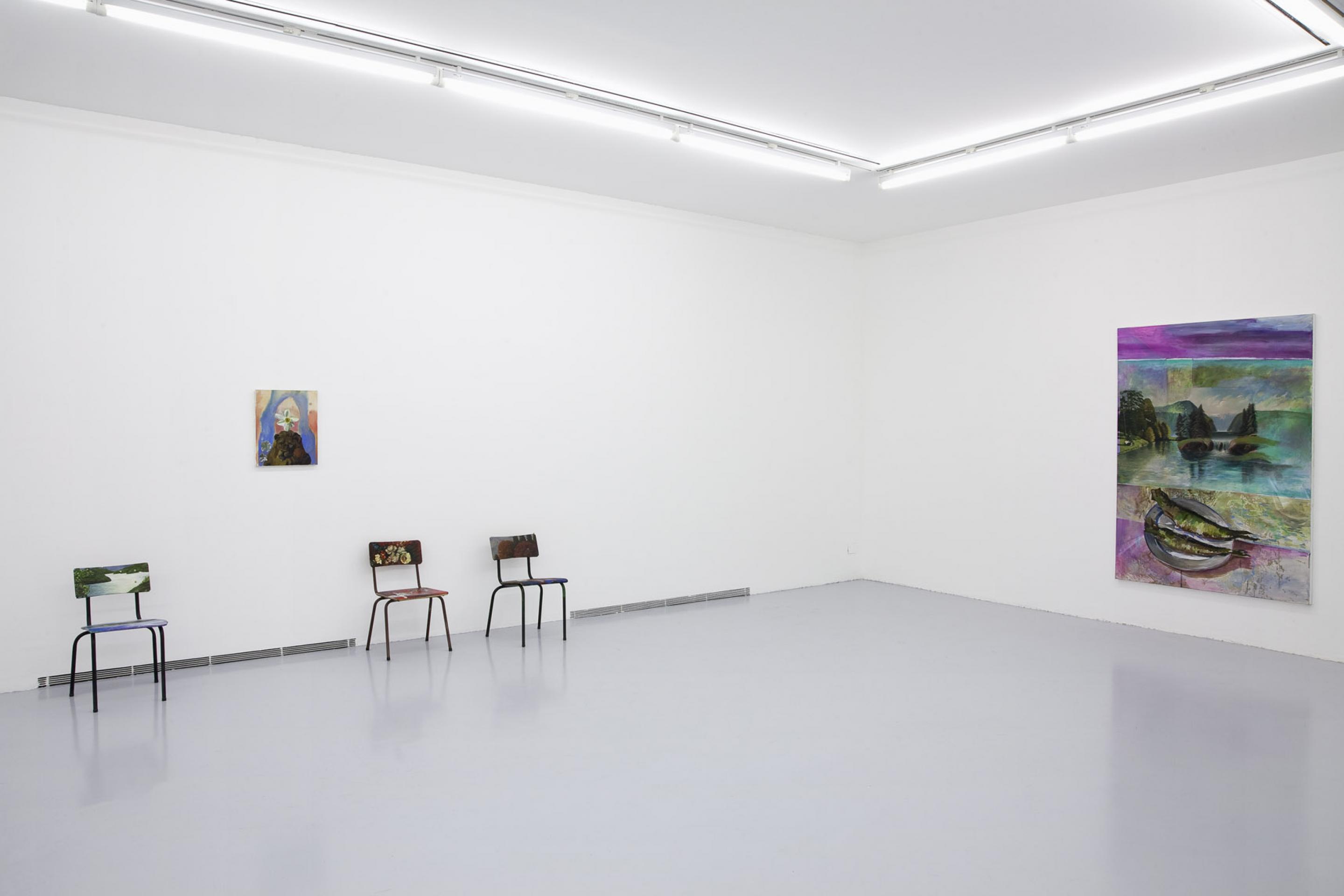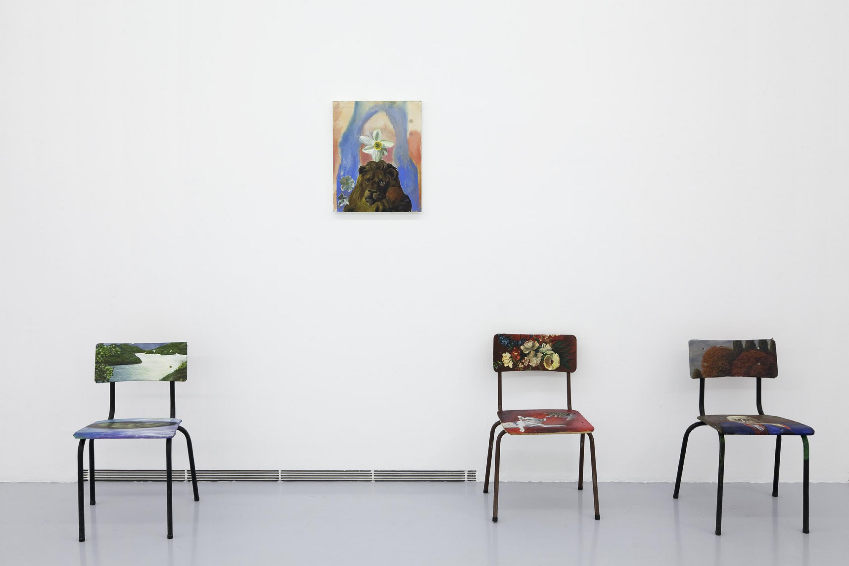 Per la personale da Giò Marconi l’artista presenta una nuova serie di lavori pittorici, un fumetto che viene proiettato e alcune sedie dipinte a mano.