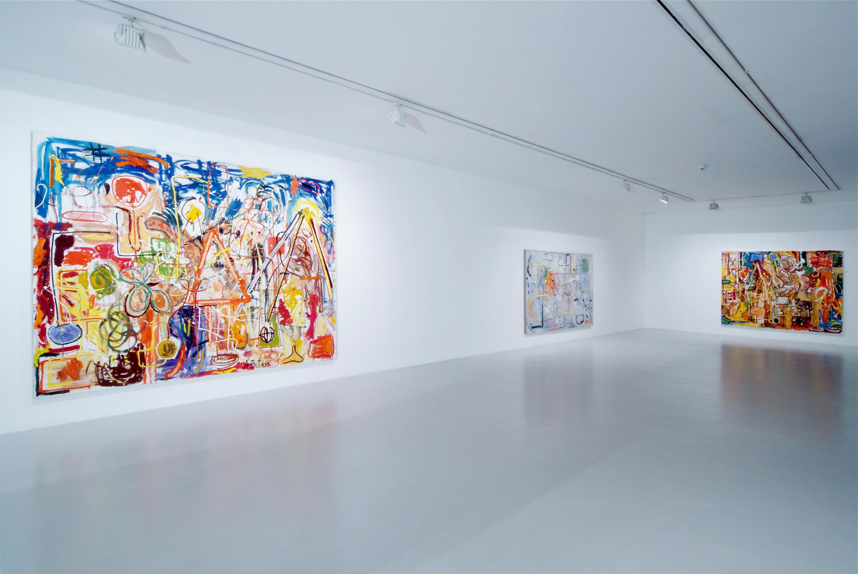 wander in fictious sceneries made by exuberant colours and that don't draw away from the new abstract works because, as the artist says: "The so called abstract and figurative paintings are just interchangeable to me, because they have legitimated one another".