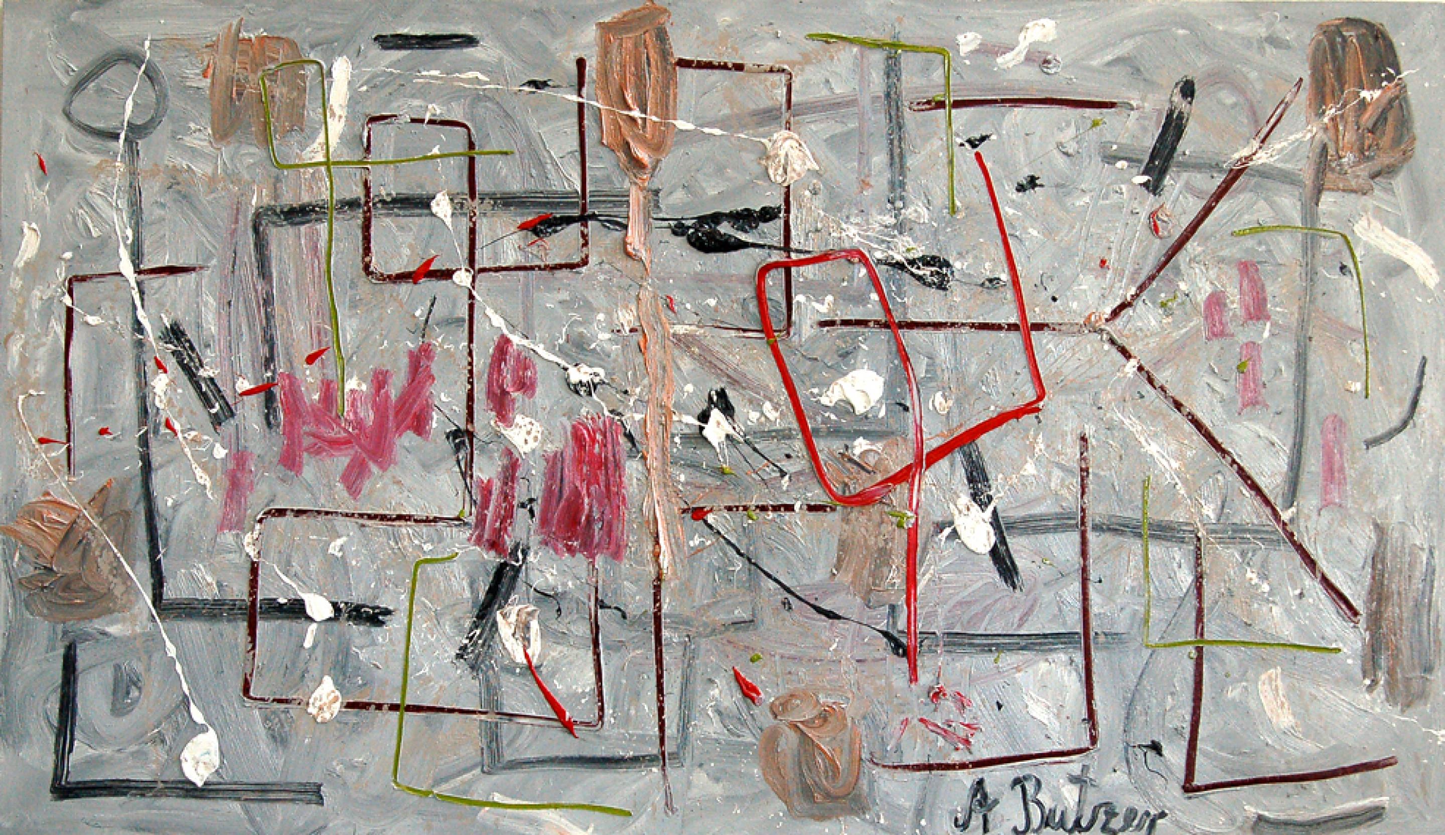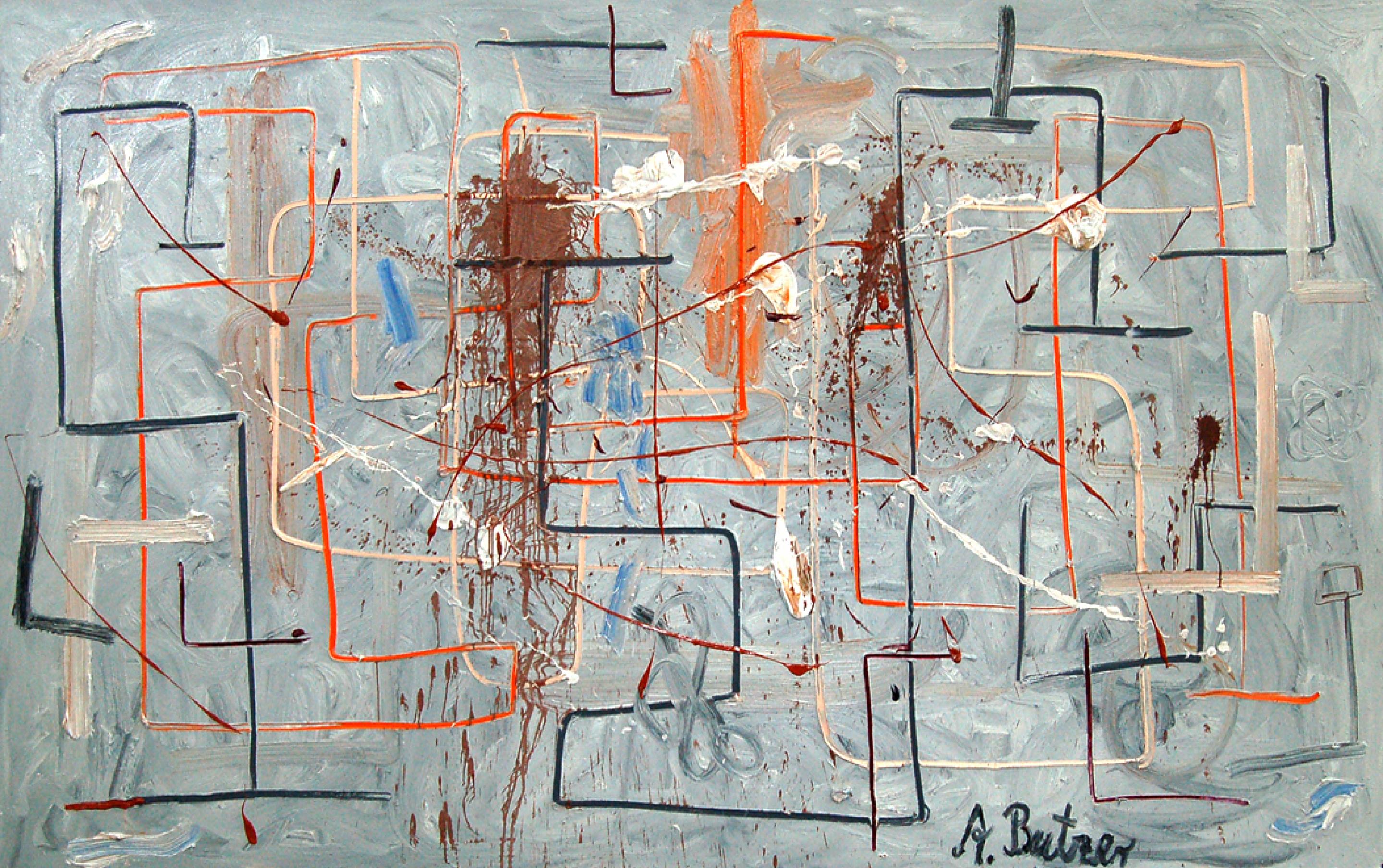 Espressione violenta, stile crudo, nessuna formazione: André Butzer ricorda lontanamente i grandi artisti dell’ Outsider-Art. Tuttavia egli respinge il concetto come stigmatizzazione, affronta la cultura di massa simulando la produzione industriale e gioca la carta della serialità contro la presunta spontaneità e originalità dell’ Espressionismo. André Butzer parla solo di idee associate all’ Art Brut, definendo il suo lavoro caratterizzato da colori stesi in maniera grossolana e da una violenza espressionista liberata attraverso il colore, come “Belle Arti”.