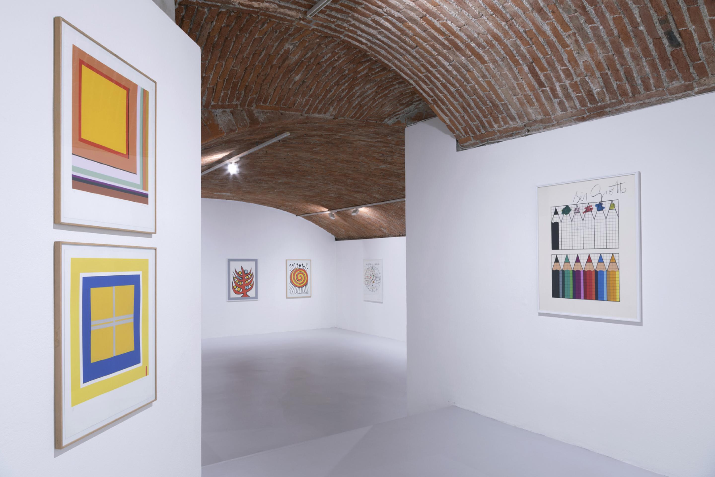 Valerio Adami - Enrico Baj - Alberto Burri - Alexander Calder - Patrick Caulfield - Alik Cavaliere - Mario Ceroli - Gianni Colombo - Lucio Del Pezzo - Antonio Dias - Piero Dorazio - Lucio Fontana - Sam Francis - Richard Hamilton - Alain Jacquet - Ronald Kitaj - Georges Mathieu - Man Ray - Giuseppe Maraniello - Joan Miró - Aldo Mondino - François Morellet - Louise Nevelson - Giulio Paolini - Gianfranco Pardi - Arnaldo Pomodoro - Mauro Reggiani - Larry Rivers - Mimmo Rotella - Mario Schifano - Antonio Seguì - Emilio Tadini - Antoni Tàpies - Joe Tilson - Victor Vasarely - Emilio Vedova - Luigi Veronesi - Gerhard von Graevenitz - William T. Wiley