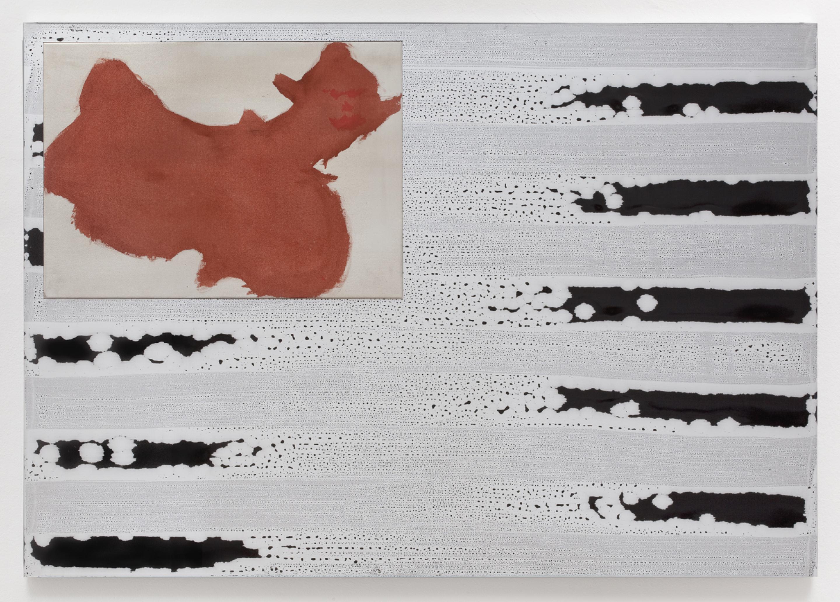 Gouache on canvas and foamcore, archival inkjet print, aluminium, glass, tape