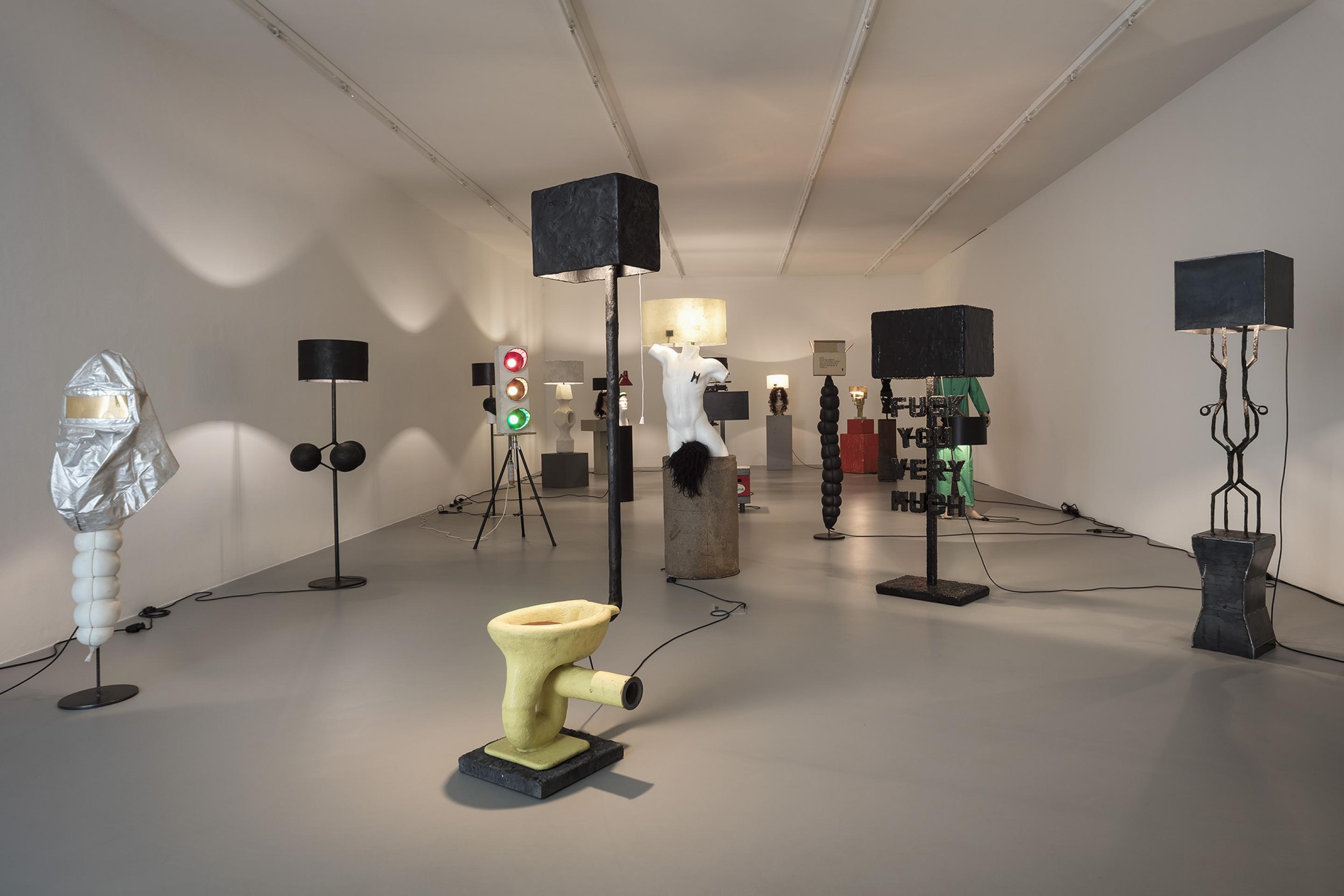 With RENEGADE Van Lieshout defines art on his own terms. He challenges the market while giving it what it wants: Van Lieshout, the artist sometimes referred to as designer, will make or take an artwork and turn it into design by just adding a lampshade. Like one of the lamps in the exhibition reads: fuck you very much. With incredible speed Atelier Van Lieshout sculpts a multitude of lamps at a time, thereby quickly accumulating an amount that can spread through the art world like a virus. By adding a lampshade, Van Lieshout presents this new group of works to the public as if it were quickly assembled DIY furniture: large quantities, functional and very accessible.
