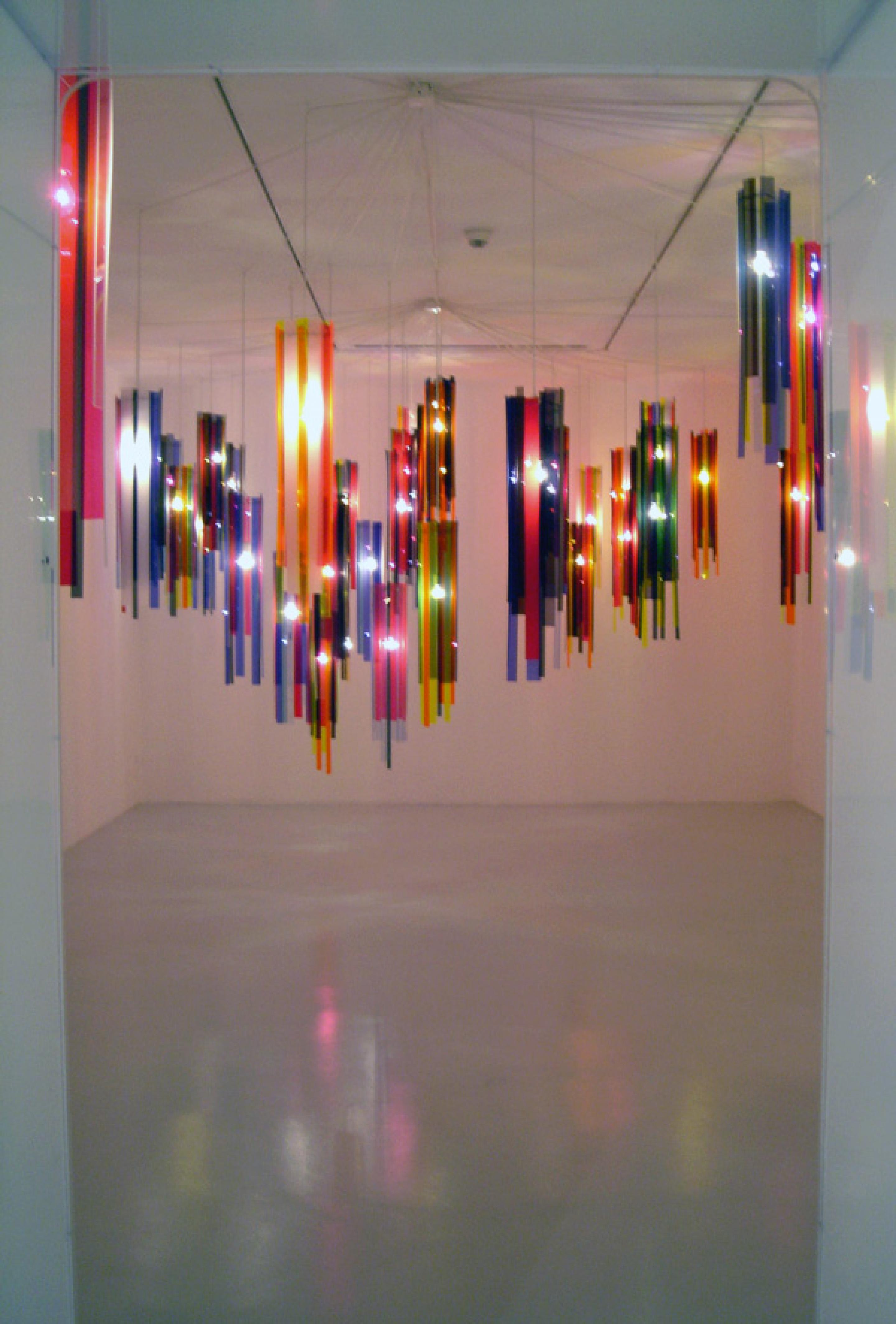 In mostra una nuova grande scultura architettonica che dominerà l'intero salone del piano terra; nelle sale adiacenti grandi e colorate digital prints alle pareti, soffitti costellati di lampade fluorescenti e di carta, e ancora alle pareti Studio Windows, silhouettes di finestre fatte di MDF e perspex colorato che esattamente rispecchiano l'ambiente dello studio dell'artista a Francoforte e recentemente esposte nella prima personale dell'artista a Londra alla Whitechapel. E ancora Origami Flowers, mini sculture floreali bicolori fatte di carta e gomma poste su basamenti in legno e attraversate all'interno da filo metallico.