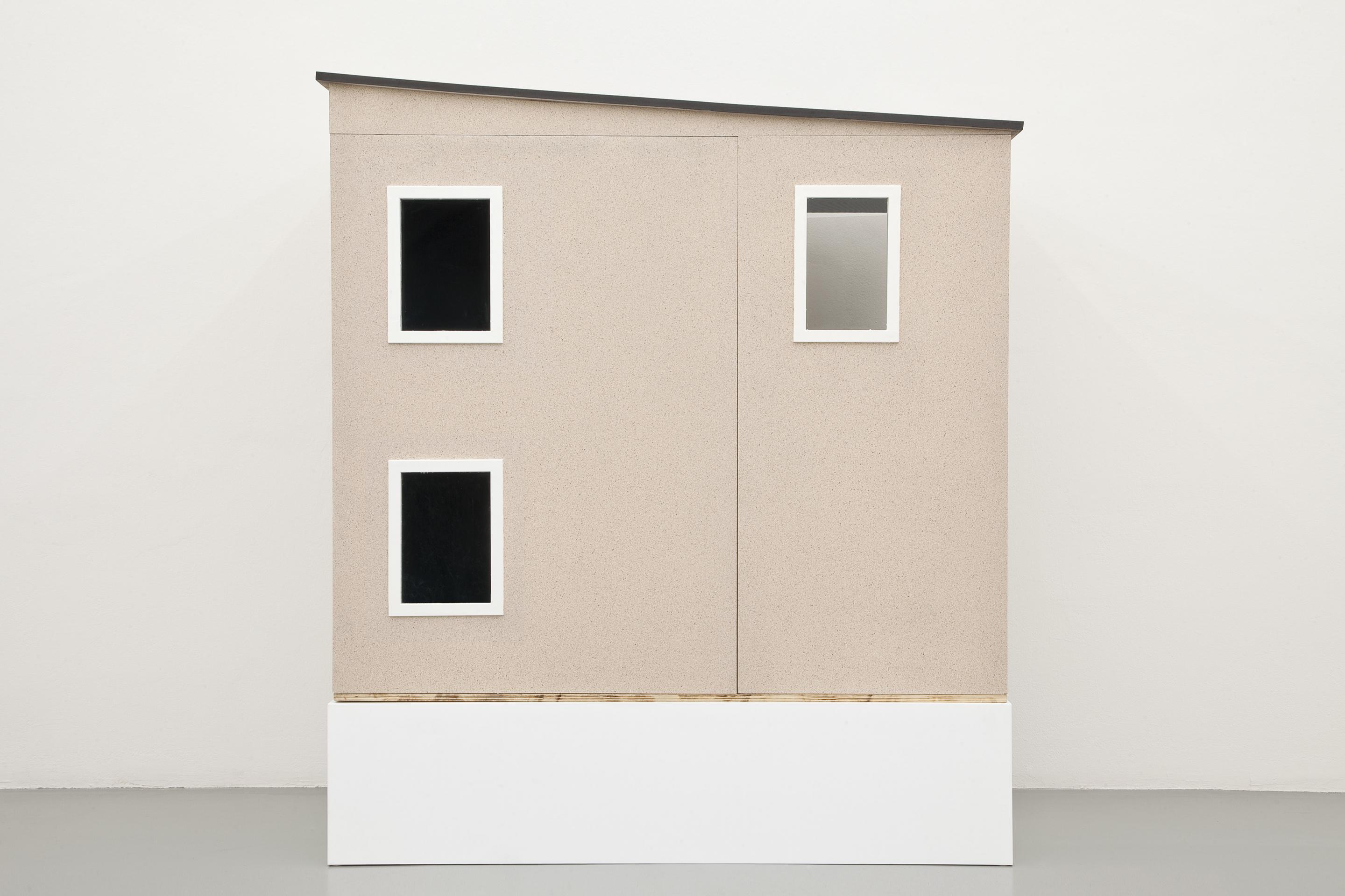 House: MDF, finer (plywood), pine, acrylic paint, acrylic spray paint, acrylic transparent varnish with UV-filter and galvanised screws