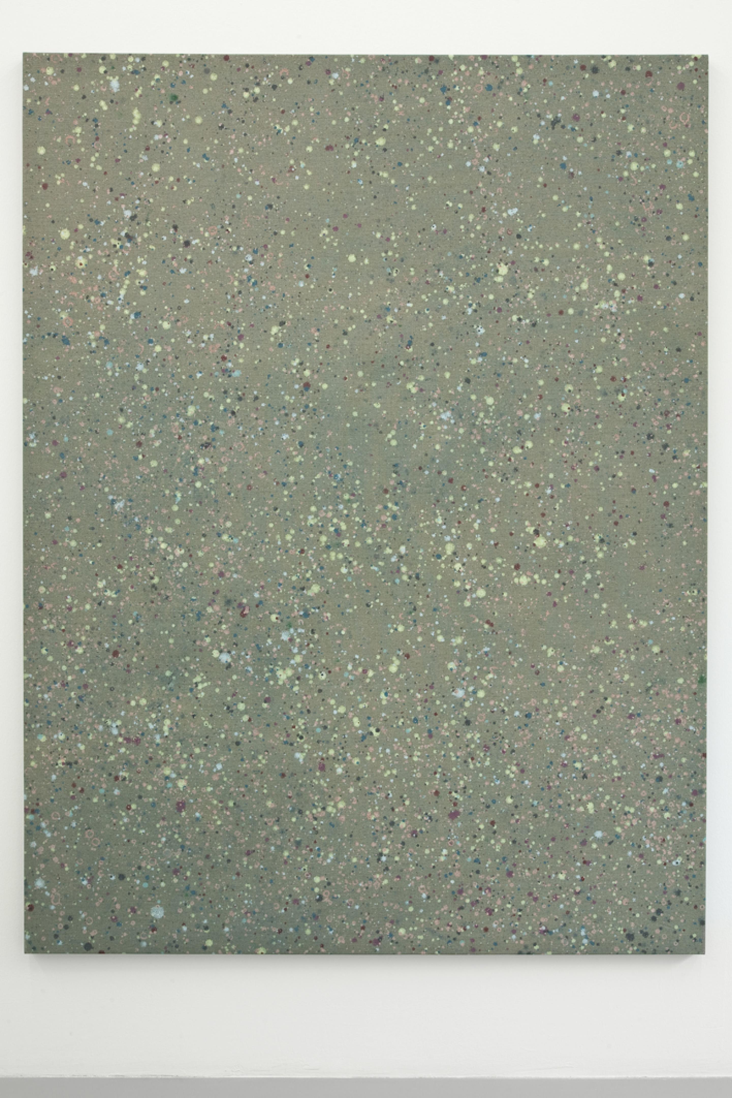 Fredrik Værslev’s paintings are not primarily about metaphysical speculations and rituals, in spite of superficial likenesses with the works of painters like Jackson Pollock. Værslev is, in his artistic research – be it about terrazzo floors, awnings or sundecks – profoundly interested in the everyday. The everyday is his starting point. This is brought into the sphere of fine art through the simulation of patterns. He studies that which we step on or walk by, abstracts it into colours on a surface, often letting the unpainted play with the painted.