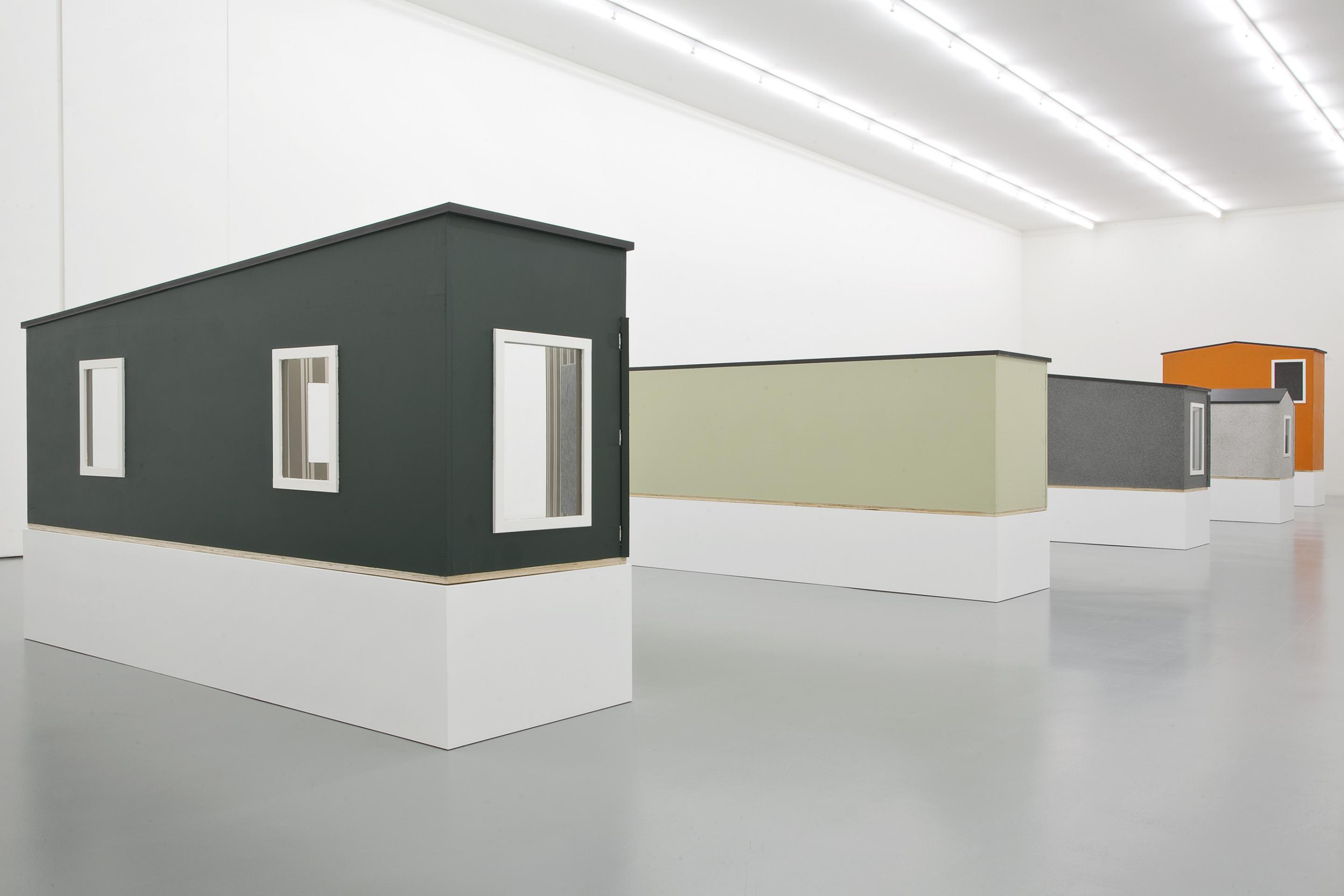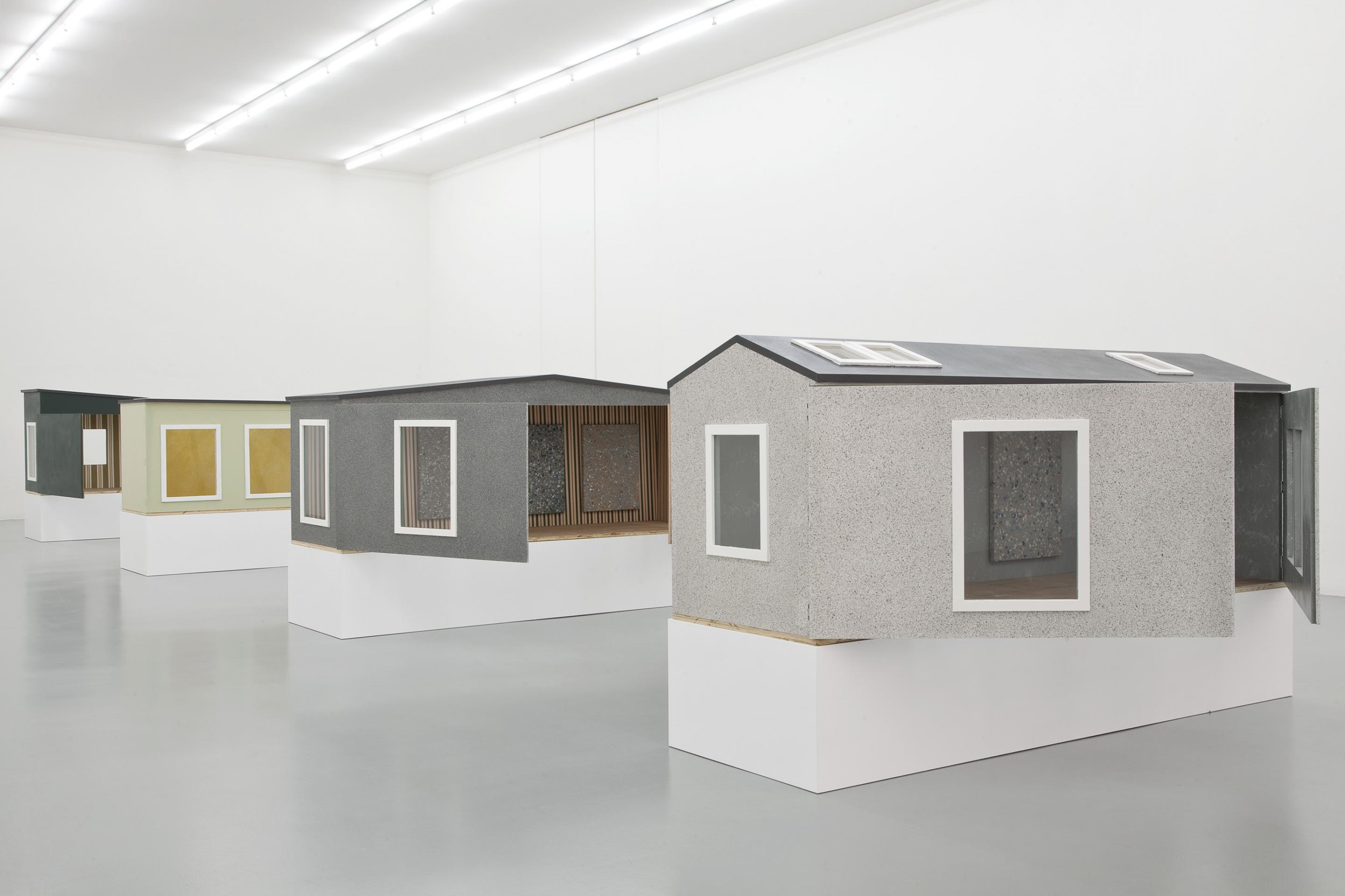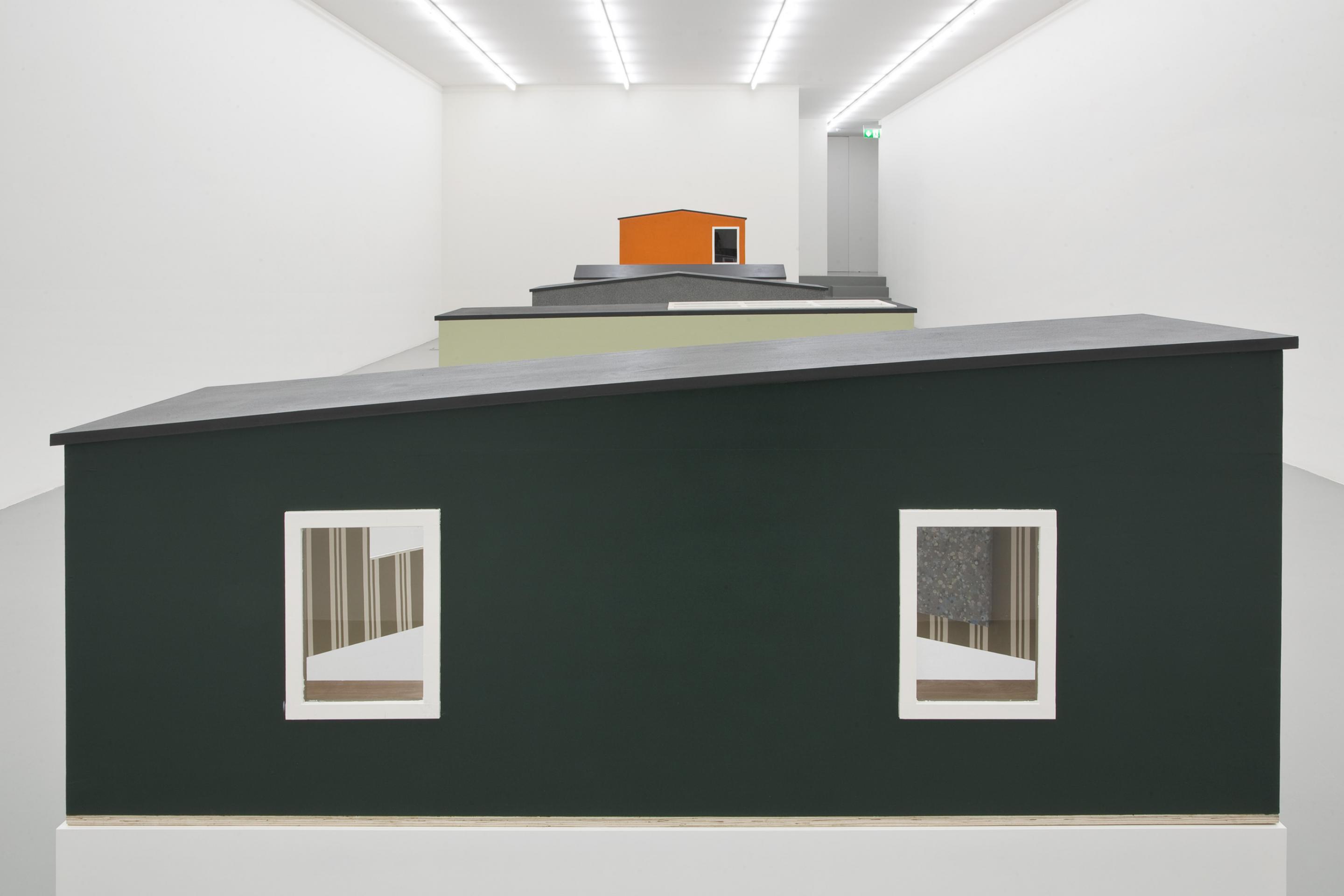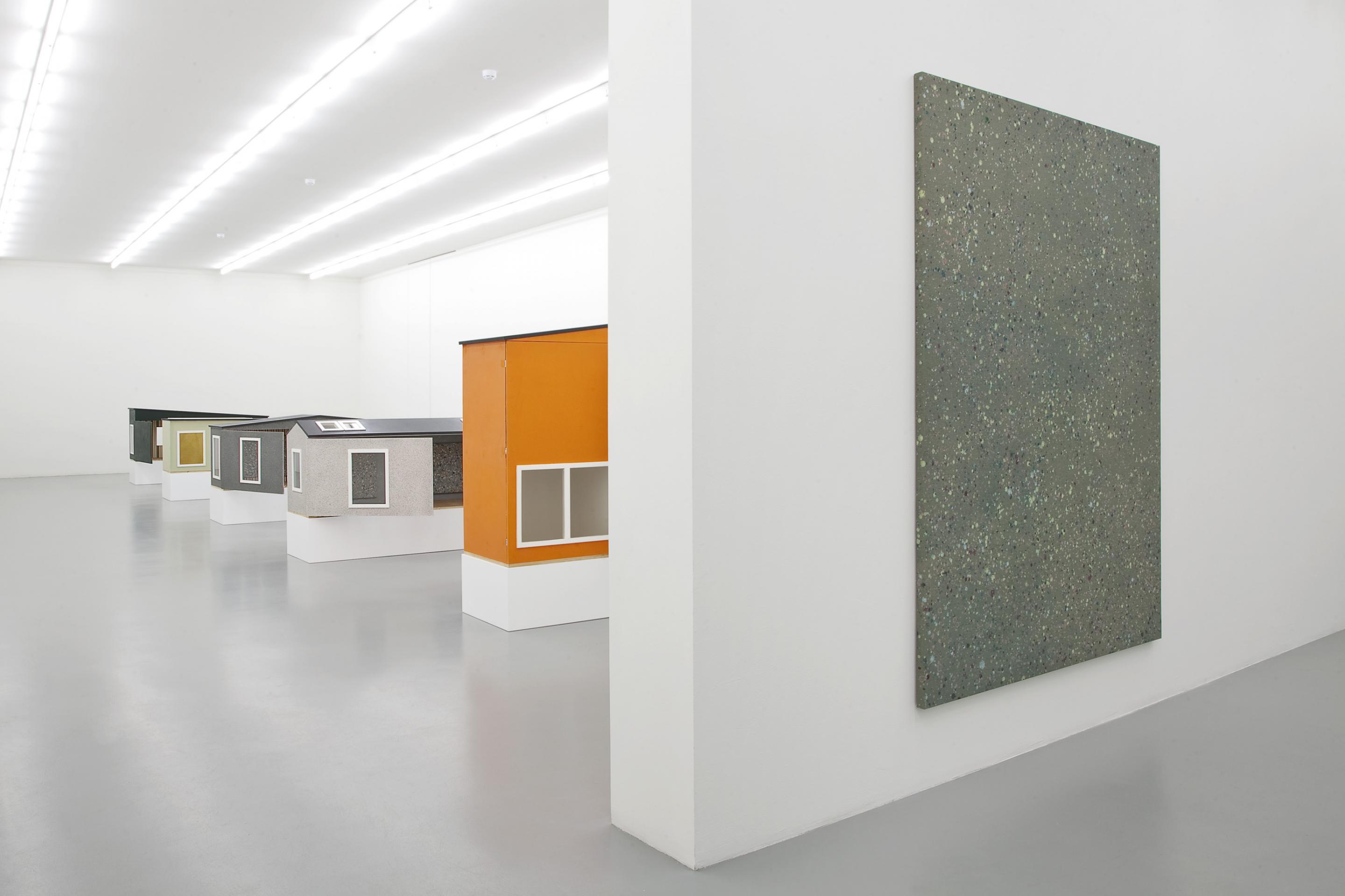 A body of small-scale works are exhibited inside a series of wooden houses Fredrik Værslev specifically produced and painted for the show.