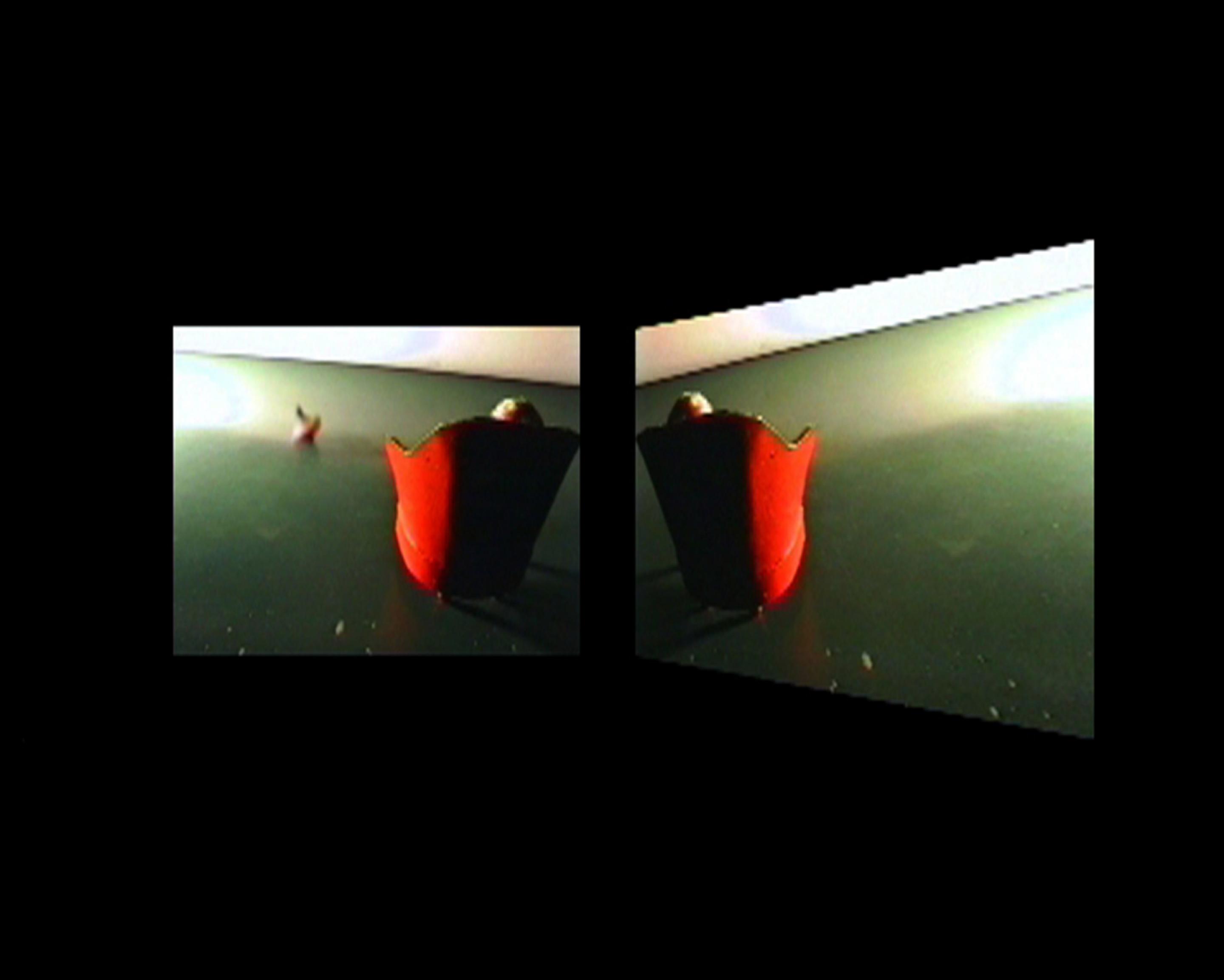 Saranno in mostra due video dal titolo “Orbite”, nei quali si intravede un personaggio seduto su una poltroncina rossa e due trottole lanciate su un piano che disegnano ognuna un ellisse il cui movimento si protrae all’infinito e un trittico dal titolo “Il cratere 8”, dove l’immagine di un cratere che appare e scompare e proiettata in tre tempi differenti ma simultanei. L’artista esporrà inoltre alcune fotografie dal titolo “Messaggeri”, dove in paesaggi contemporanei di periferia urbana appaiono misteriosi personaggi come calati da un mondo fiabesco.