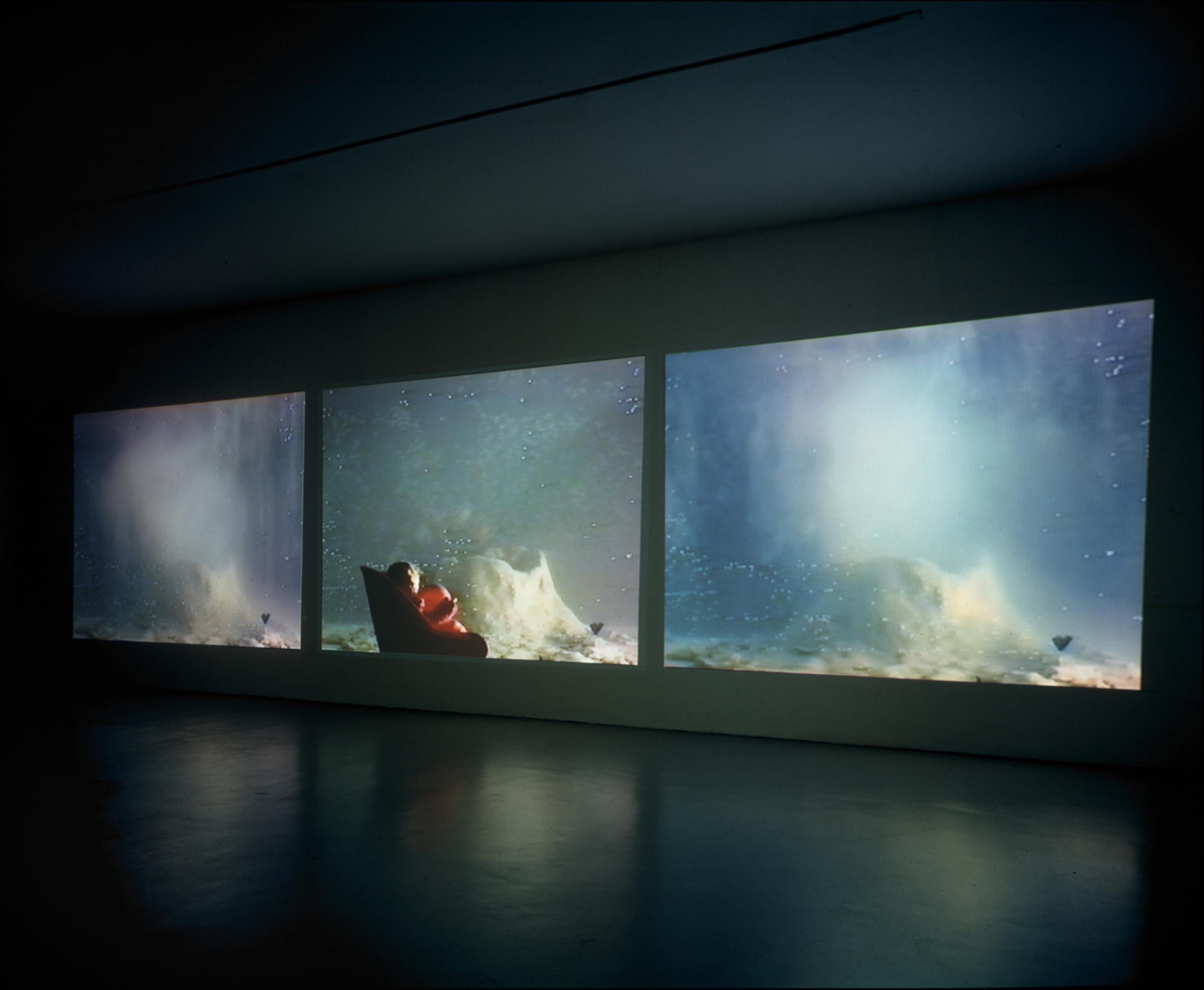Fin dall’inizio Grazia Toderi ha usato come mezzo espressivo il video. Pur funzionando come opere audiovisive i suoi lavori conservano comunque un legame con la pittura, per esempio con le Nature Morte, il cui tema centrale è la rappresentazione della vita e delle sensazioni come cose che mutano nel tempo. Ogni suo video è basato su una sola immagine. Senza fare movimenti, la telecamera inquadra un solo oggetto, fissa un’azione che si sviluppa lentamente o si ripete nel tempo. Si ha l’impressione di guardare la stessa cosa. Per esempio un getto d’acqua su una piantina di fiori, come nel caso di Nontiscordardime, il video che l’artista ha presentato alla Biennale di Venezia nel 1993, oppure una donna che tenta di aprire un ombrello sul fondo di una piscina, come nel video Zuppa dell’eternità e luce improvvisa, realizzato in occasione della sua mostra al F.r.a.c. Languedoc-Roussillon. L’immagine subisce cambiamenti, ma quei cambiamenti avvengono senza clamore. La visione si amplifica dilatandosi. Lo spettatore assume una serie di informazioni, riconosce dei significati che si diluiscono e si alimentano nel corso della proiezione. Attraverso il lento ma continuo sviluppo di una emozione si genera un sentimento.