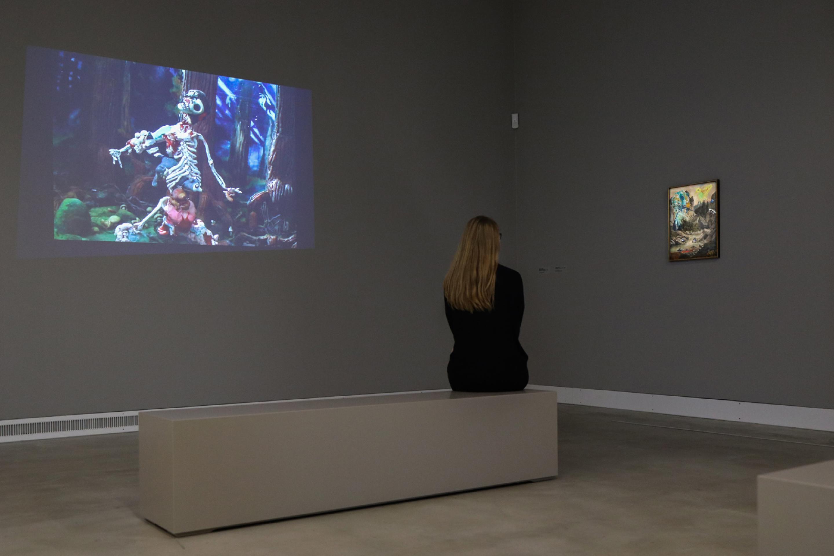 Nathalie Djurberg & Hans Berg, Installation view, MONDJÄGER. Nathalie Djurberg & Hans Berg in dialog with Asger Jorn, Kunstmuseum Ravensburg, Ravensburg, 2019-2020