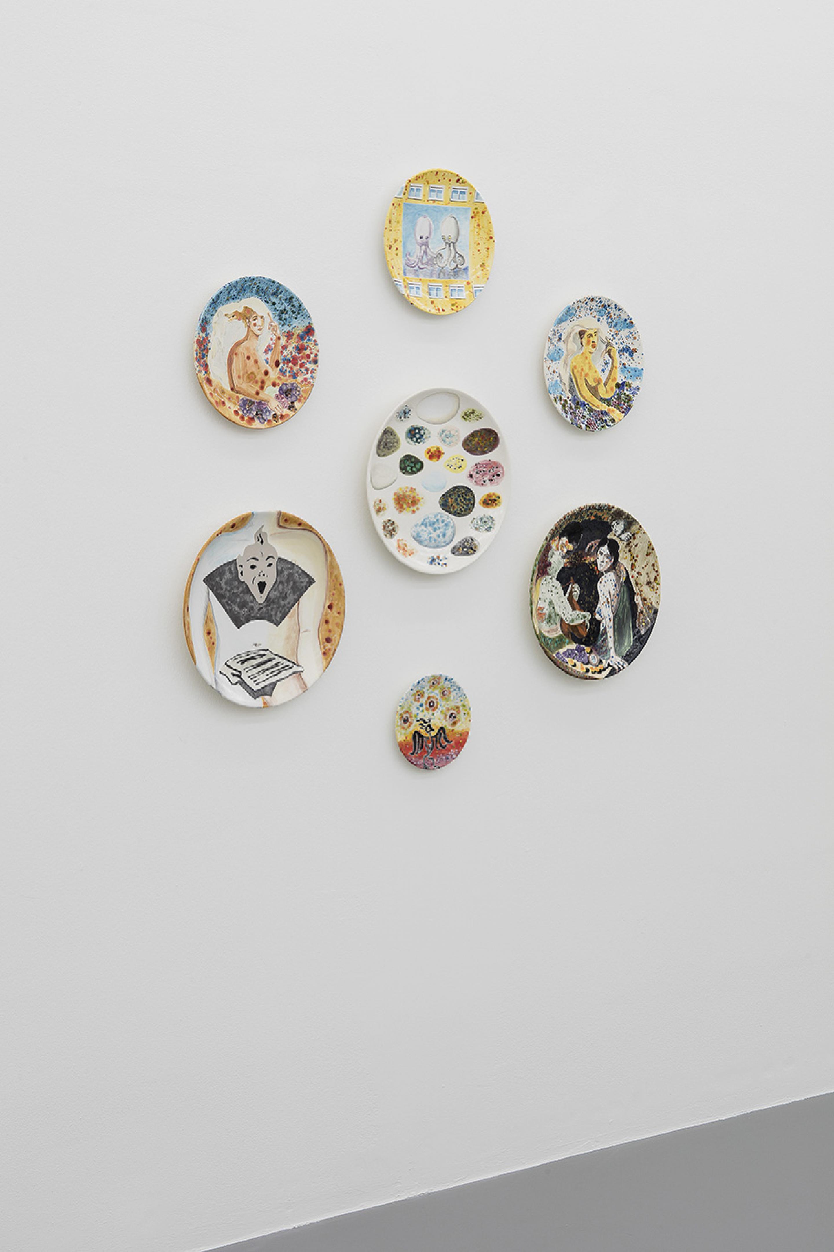 Recent group exhibitions: Sputterances, Metro Pictures, New York, USA (2017); That Continuous Thing: Artists and the Ceramics Studio, 1920–Today, Tate St. Ives, St. Ives (2017); Shelf Paintings in collaboration with Fredrik Vaerslev, All Around Amateur, Bergen Kunsthall, Bergen; Le Consortium, Dijon (2016); DAS INSTITUT with Allison Katz in DAS INSTITUT, Serpentine Gallery, London (2016); The Violet Crab, David Roberts Art Foundation, London (2015); Yes, We’re Open, Gió Marconi, Milan (2015); Puddle, Pothole, Portal, Sculpture Centre, New York (2014).