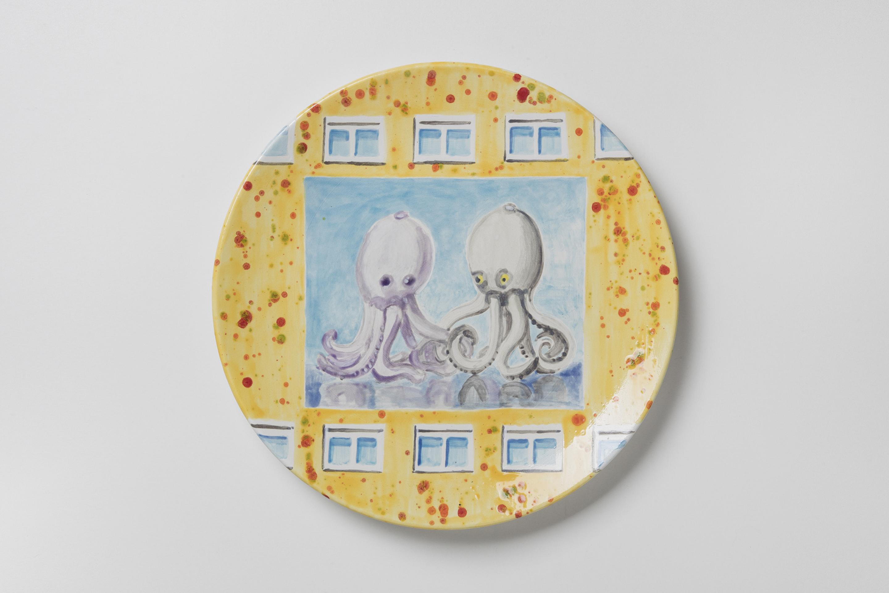 L'attrazione per la smaltatura dei piatti è interamente basata sulla non conoscenza del risultato finale. Ci sono così poche tecniche in cui la pittura può essere così tanto basata sul caso, in cui la cottura è metà del gioco. Gli smalti assumono via via colori e trame completamente diversi da quelli che avranno alla fine; la forza primordiale delle temperature vulcaniche porta al loro caos estetico. Piccoli cristali di rocca immersi nella sostanza liquida si trasformano chimicamente e imitano gli effetti di diverse ere geologiche - minerali, la litosfera, evoluzione- così come sintesi più contemporanee - plastica, dolcetti, tintura tie-dye, farcitura delle torte, glitter. Quello che emerge è spesso una sfida alle mie aspettative e ai miei gusti.