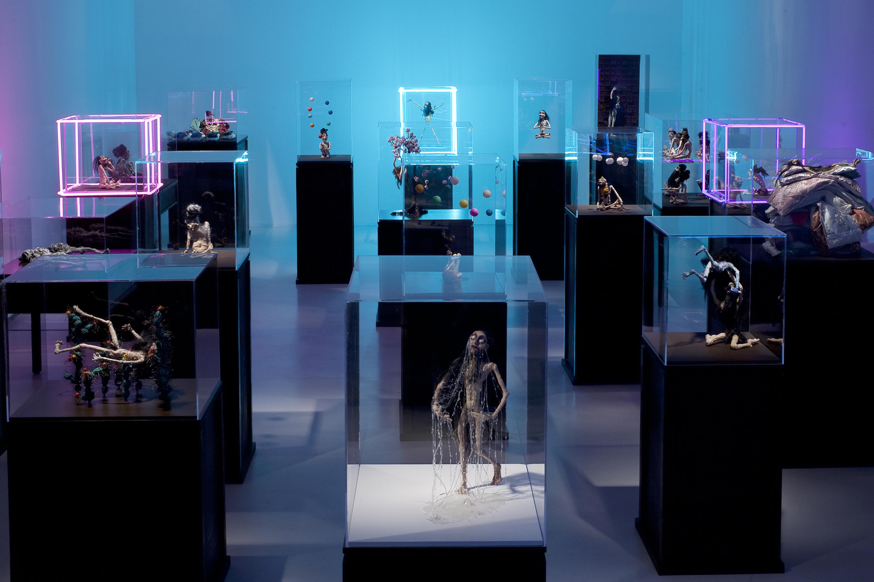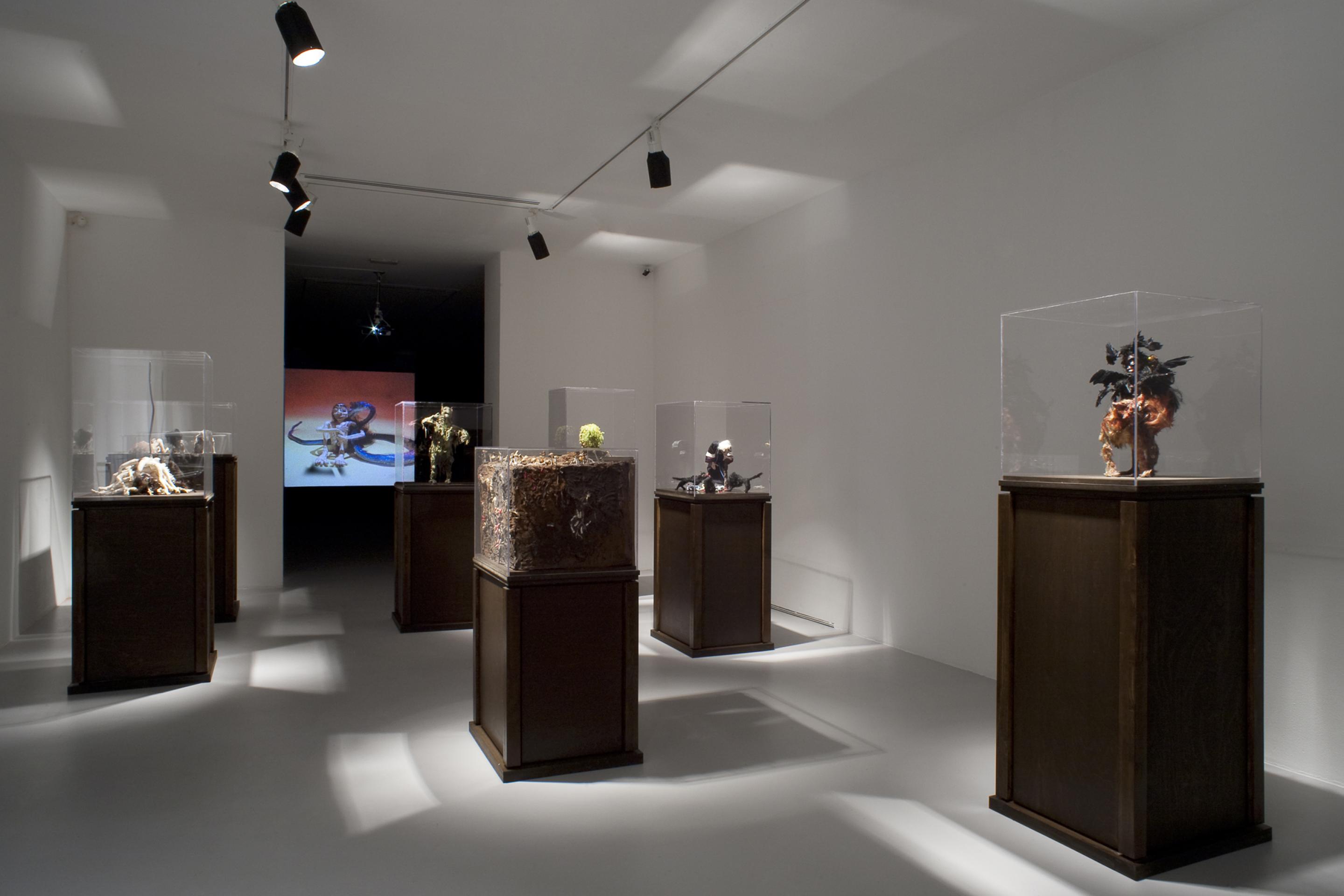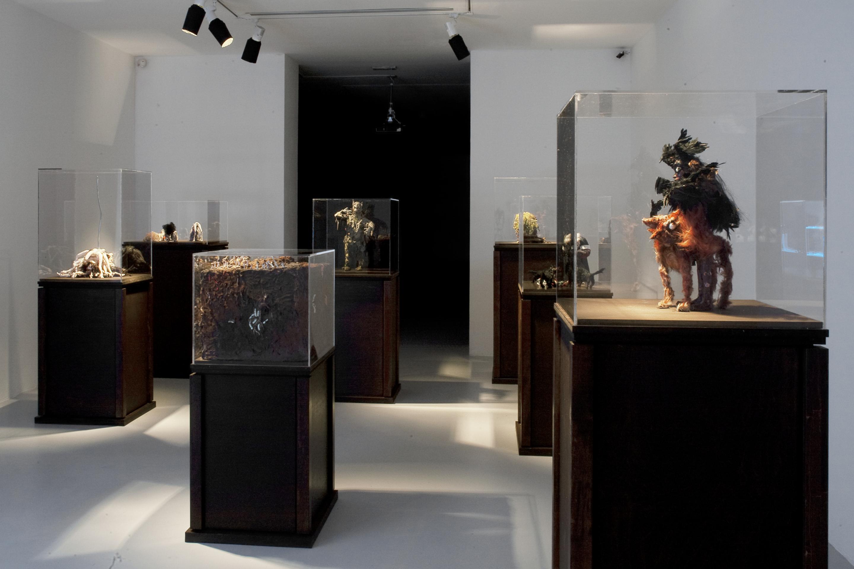 On display in the gallery will be 60 puppet sculptures that are presented in 41 plexiglass boxes positioned on wooden plinths. Two new films which are accompanied by soundtracks of Hans Berg that are underscoring and intensifying the works are especially made for the exhibition.