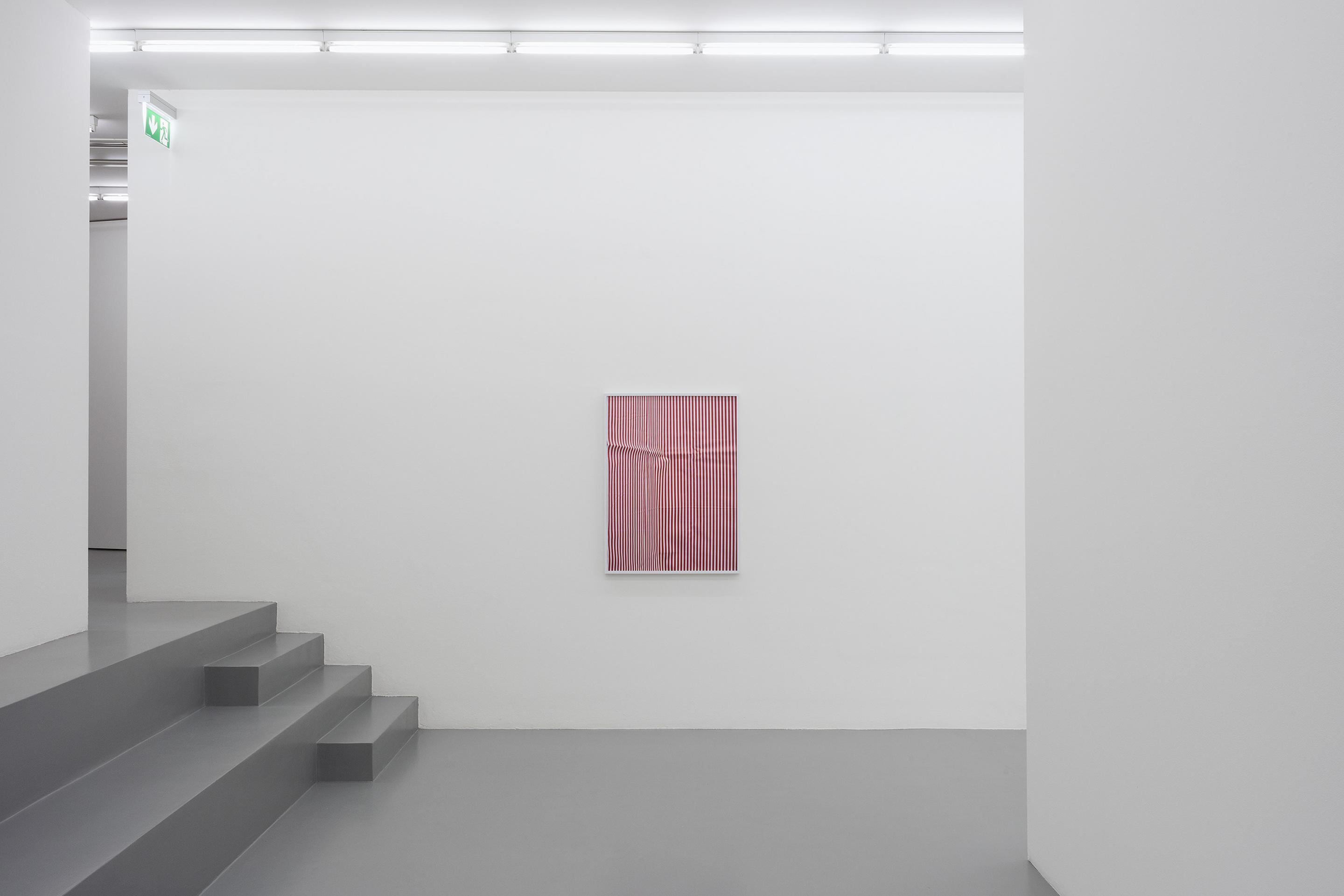 With Proposal for Knots, Kelm ties in with her usage of fancy and unusual textile backdrops, addressing questions of textile design as a form of visual language, and representation of global trade. The image depicts a fabric with a design that takes up instructions charts on how to knot. In Good Morning an unfolded, generically printed table napkin salutes us four times in english, french, spanish and german. The four suns shine brightly behind the words. The unfolded napkin is covered by small flower blossoms and a thick black cable, alluding to the studio technique behind the image. The textile backdrops of Apples, Straws and Stripes and Red Stripes seem decisively unstraightened – in Red Stripes the creases even take center stage, becoming a motif in its own right.