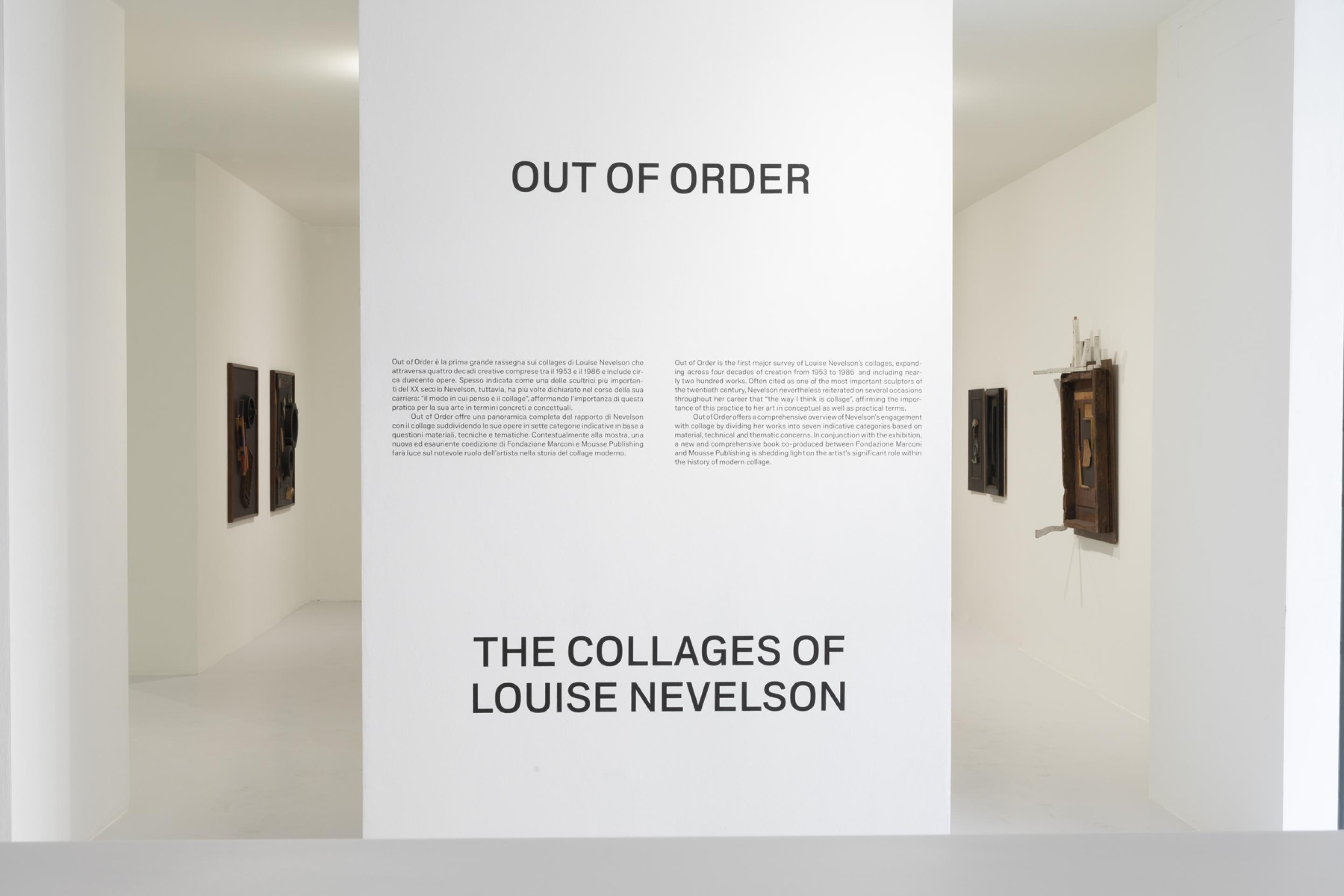 Attraverso un’indagine attenta dei suoi collages, il progetto espositivo OUT OF ORDER evidenzia che il modello fondamentale del linguaggio artistico di Nevelson non era onnicomprensivo. Nevelson ha infatti prodotto gruppi coerenti di opere basandosi su elementi formali vicini alla sua ricerca artistica come specifici materiali, strategie e questioni formali. Come lei stessa ha dichiarato in più occasioni, "il modo in cui penso è il collage".