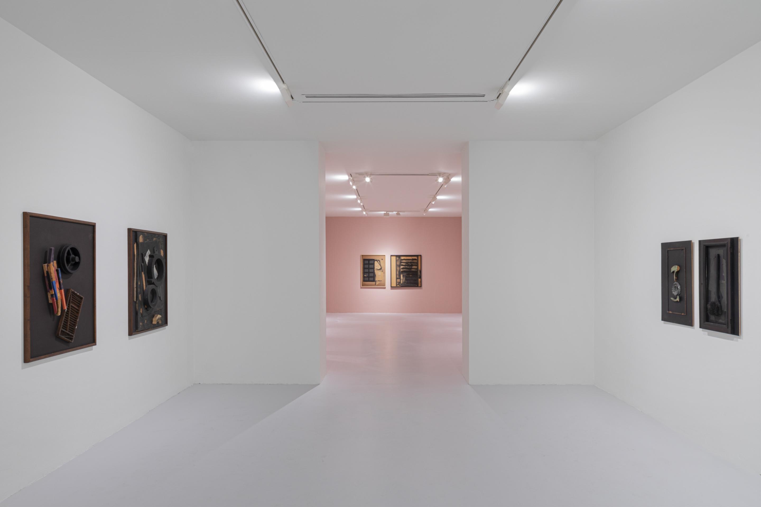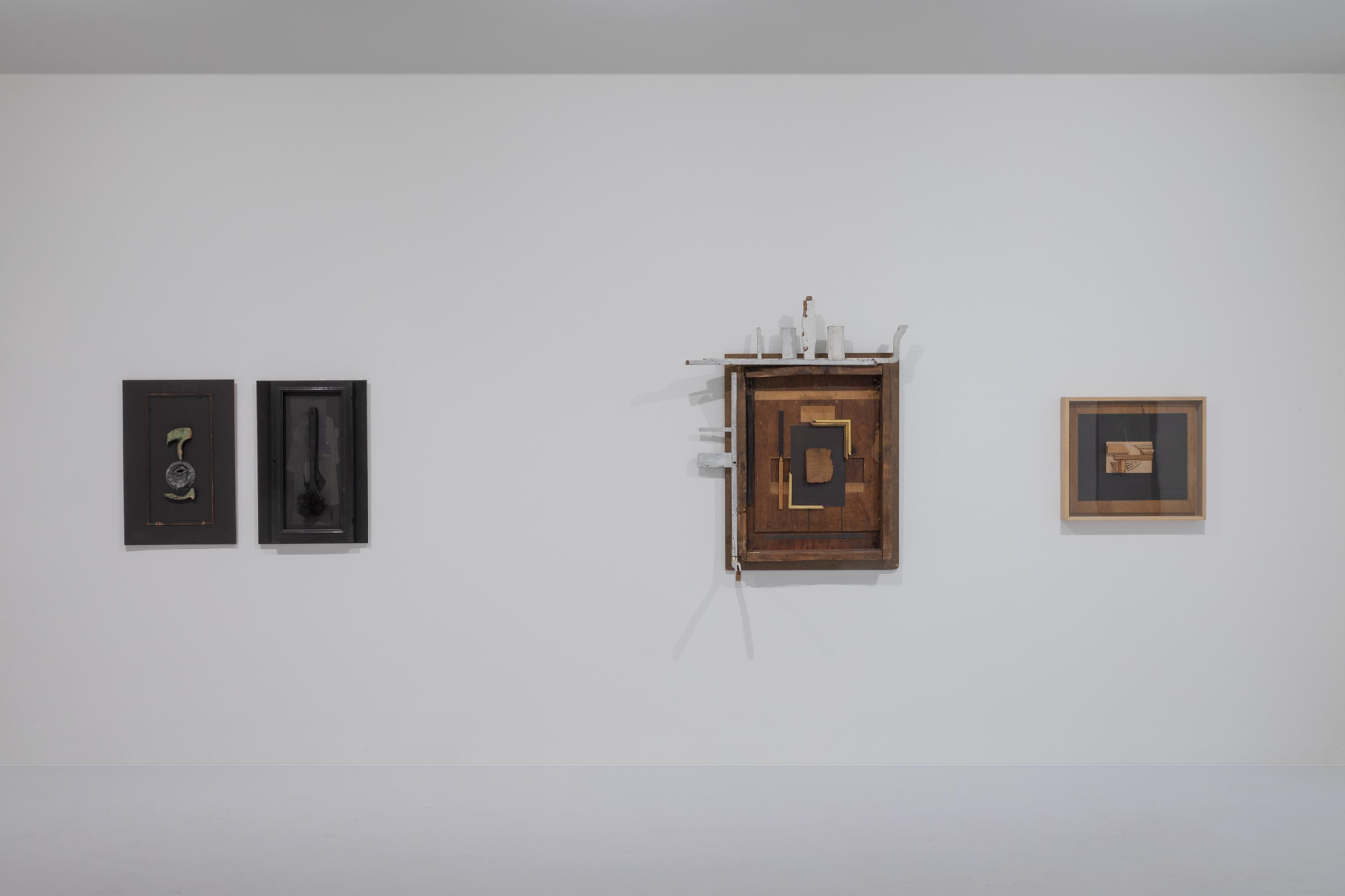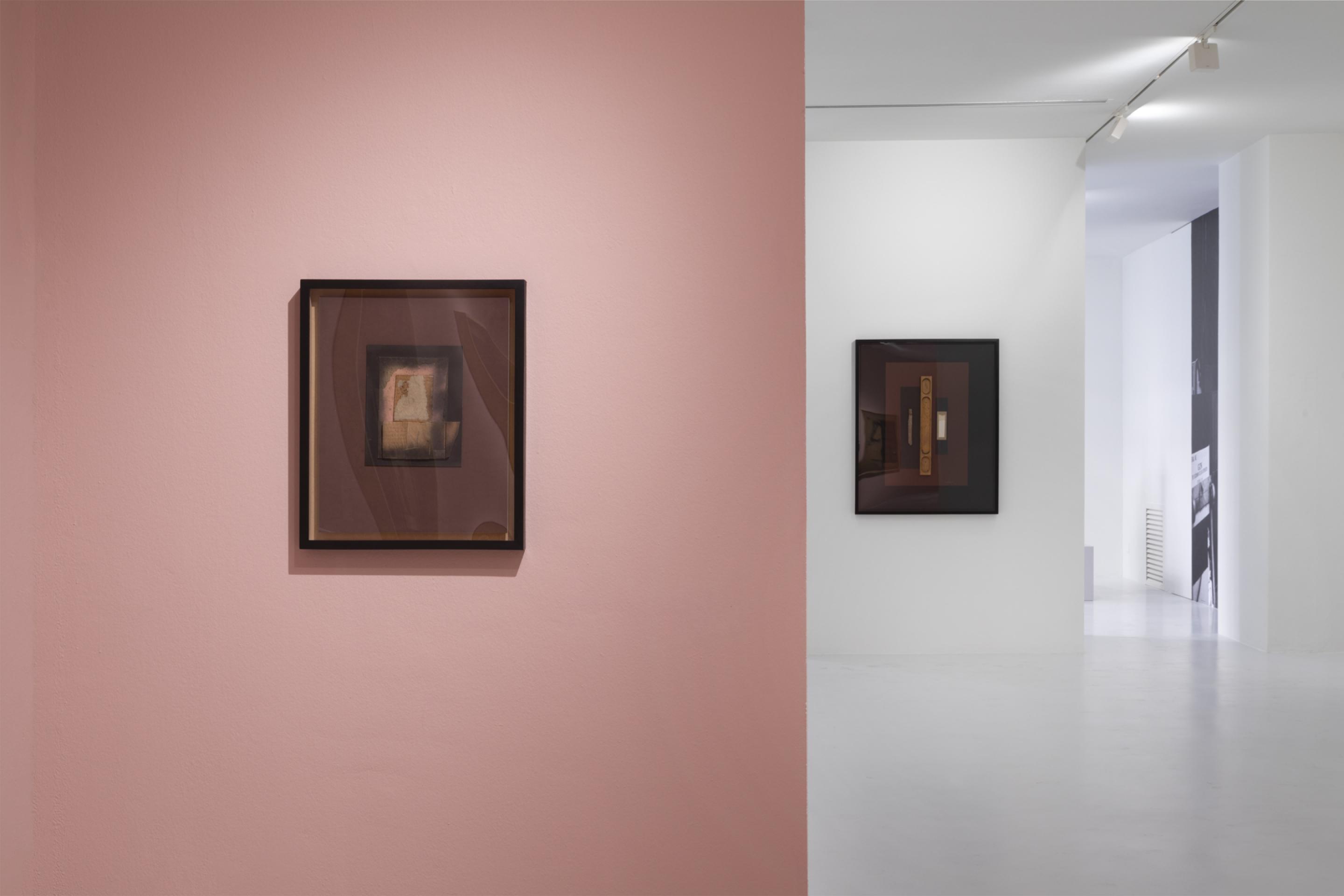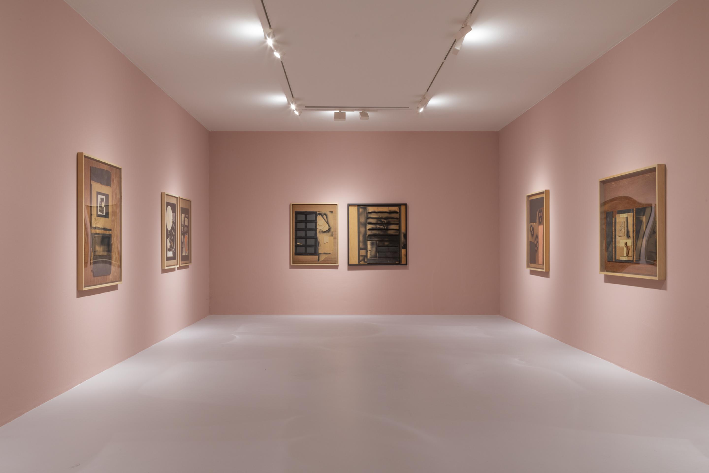L’esposizione milanese raccoglie un’ampia selezione di collages che l’artista, forte della lezione cubista appresa durante i viaggi in Europa, realizza a partire dagli anni Cinquanta, combinando supporti lignei e cartacei e ottenendo originali esiti prospettici.
