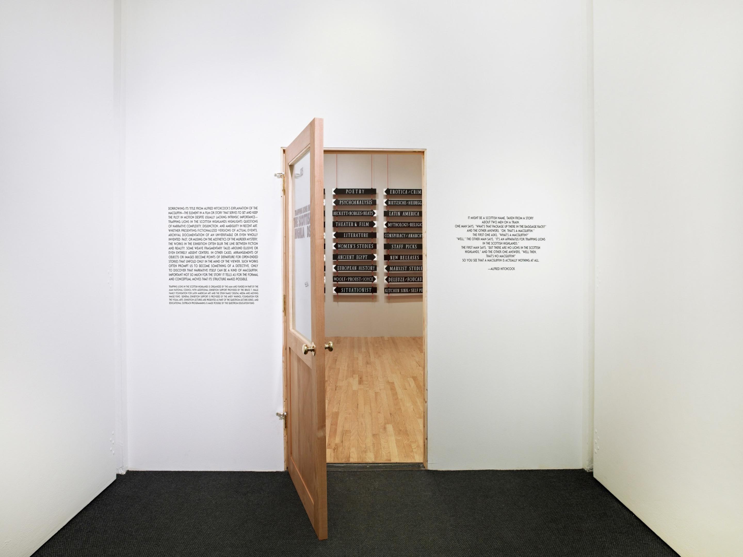 Matthew Brannon, Installation view, Trapping Lions in the Scottish Highlands, Aspen Art Museum, Aspen, 2013-2014