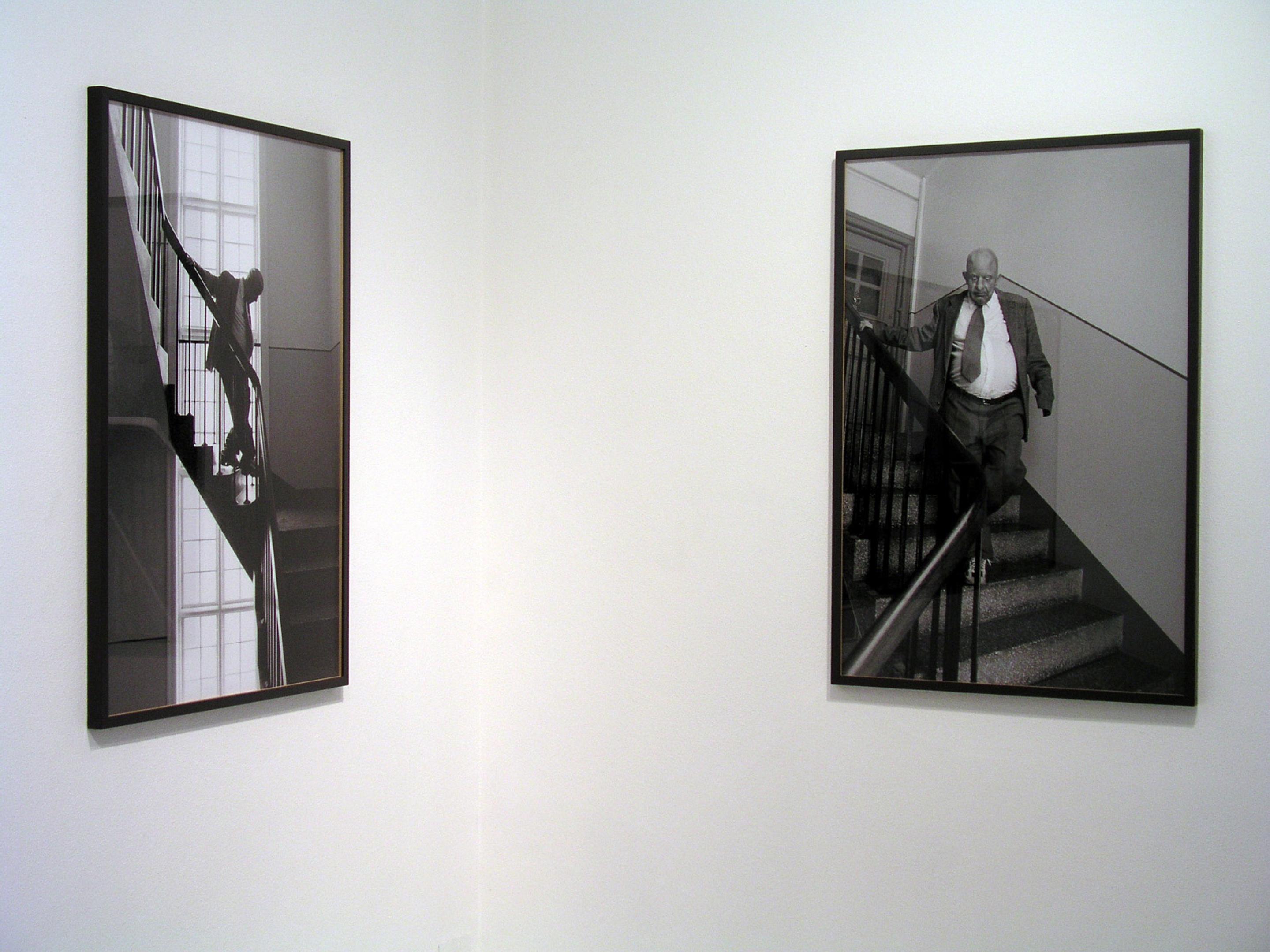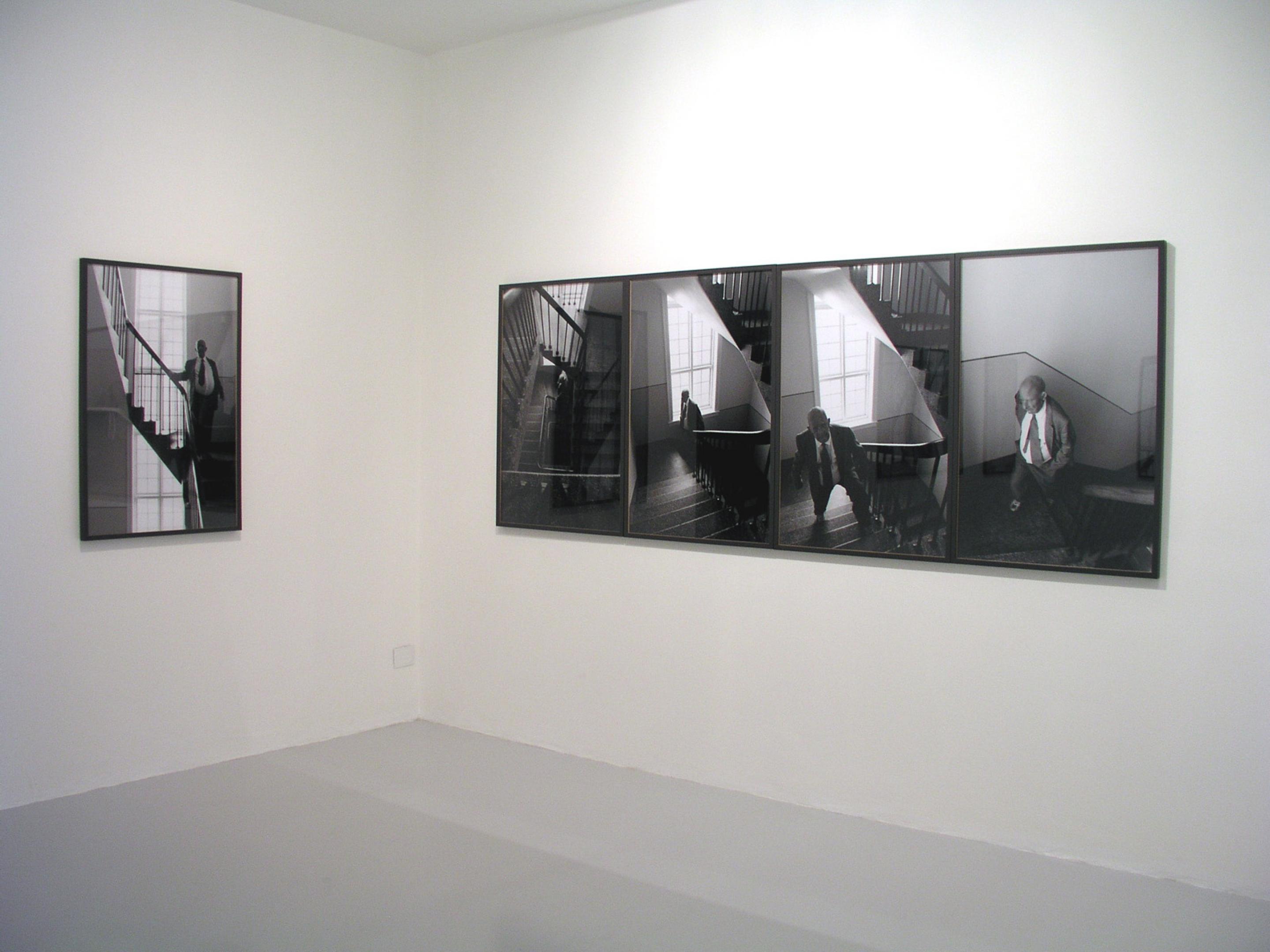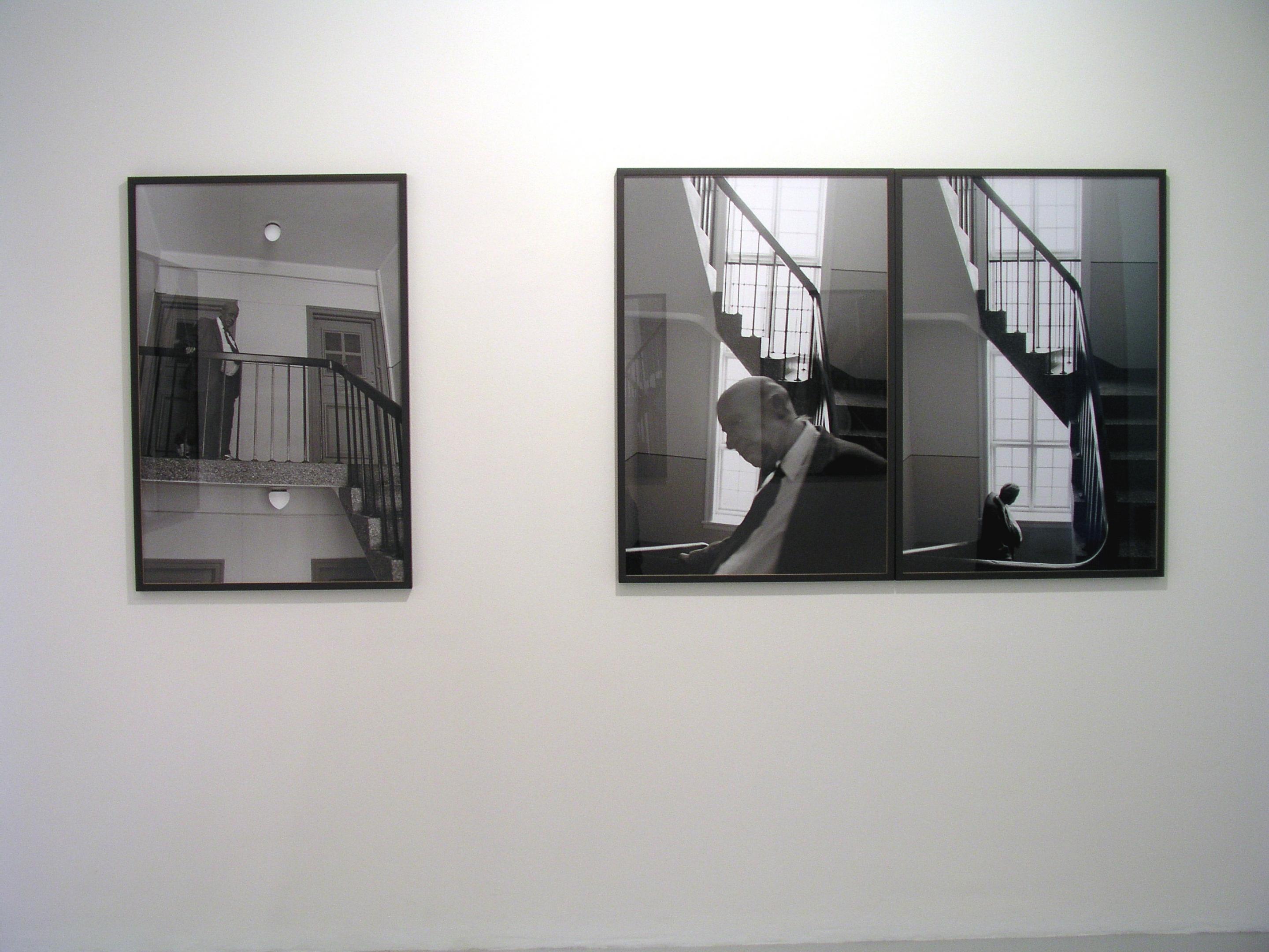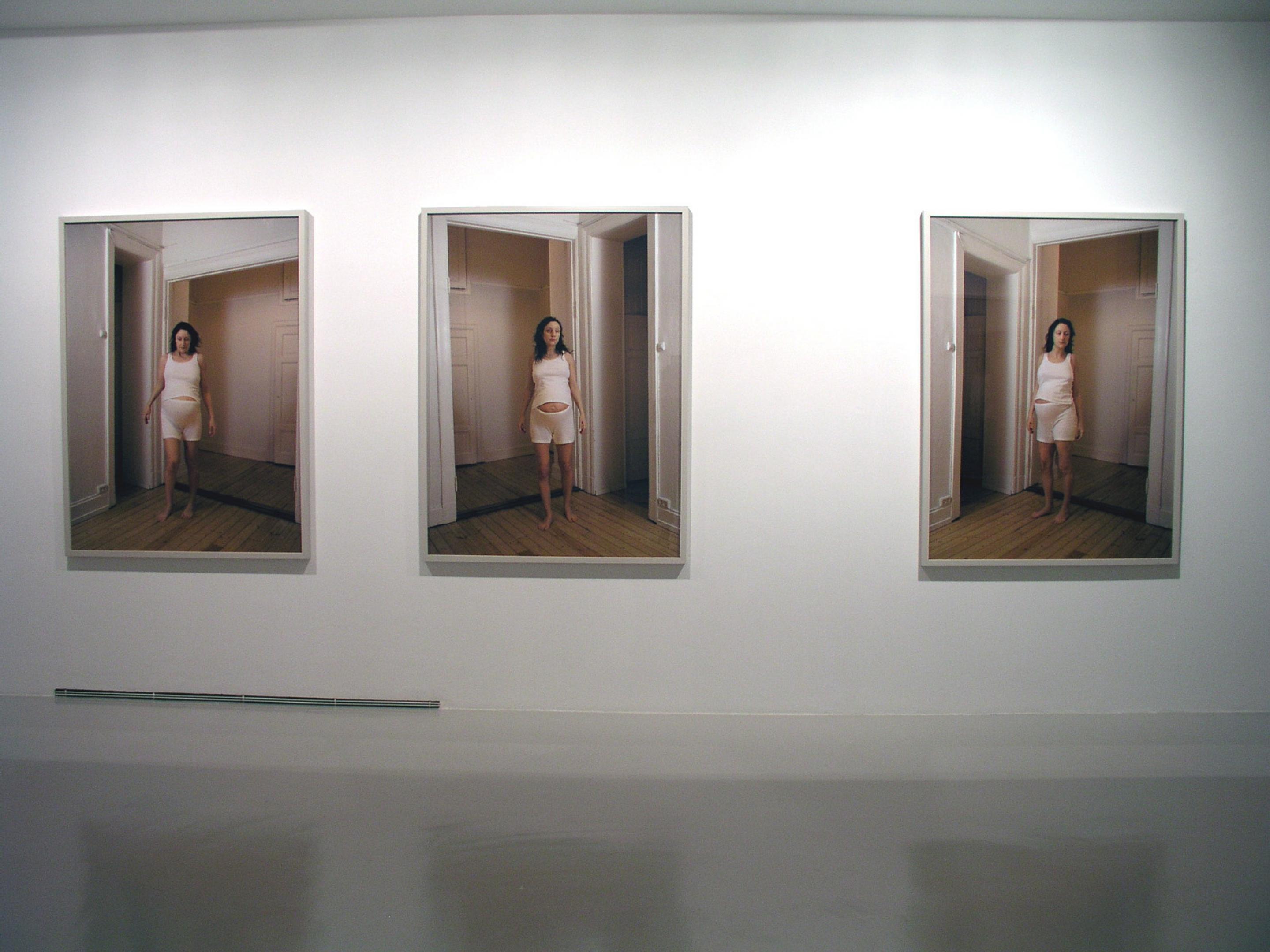 Le fotografie della serie Undo ritraggono il corpo dell’artista incinta, in piedi all’interno di un appartamento, vestita con dei semplici boxer e canottiera bianchi e ciascuna foto, in totale sette, documenta le variazioni della sua silhouette dovute alla gravidanza. Dalla rotondità del ventre alla curvatura della schiena passando per la piccolezza delle sue membra, sono tutti i contorni del corpo della Tandberg che sembrano impercettibilmente ondulati tanto che il suo viso si irrigidisce in una sorta di assimetria inquietante. La sobrietà della decorazione, le tonalità beige, così come le modificazioni delle linee di fuga del parquet e delle porte concorrono inoltre a creare un’atmosfera irreale in cui questo corpo portatore di una nuova vita appare in tutto il suo paradossale enigma. Con le opere fotografiche Old Man Going Up and Down a Staircase la Tandberg amplifica il sentimento di estraneità. L’artista in effetti è scivolata nella pelle di un vecchio mentre era alla fine della gravidanza; con il corpo vestito con un abito scuro ed il cranio reso calvo sale e scende le scale di un edificio, con tutte le difficoltà dovute al suo stato fisico. La serie di foto To Leave by Boat conferma il bisogno ricorrente dell’artista di mascherarsi, di estraniarsi: mettendo in scena un personaggio incappucciato la Tandberg perviene in effetti a provocare una possibile rilettura del corpo e delle sue posture, attraverso l’annullamento del volto e di tutte le nozioni di identificazione. In un modo più impegnato il video God Bless America, montato su DVD della durata di due minuti, mostrando l’immagine fissa di George W. Bush, la cui bocca si sovrappone a quella dell’artista fischiettando l’inno americano in modo molto ironico, conferma il gusto della Tandberg per l’ibridazione e la permutazione dei sessi. L’espressione semplice del volto del presidente viene enfatizzata dal fischiettio stonato. Redo è un film 8 mm trasferito su DVD molto breve. Mostra l’artista intenta a mettere delle foglie su di un albero spoglio. Il film è stato fatto con le azioni a ritroso in modo che quando si avvia il filmato all’indietro si ha l’impressione che l’artista metta delle foglie sull’albero. Si tratta di un’azione molto semplice e naturale, quasi un autunno simulato.