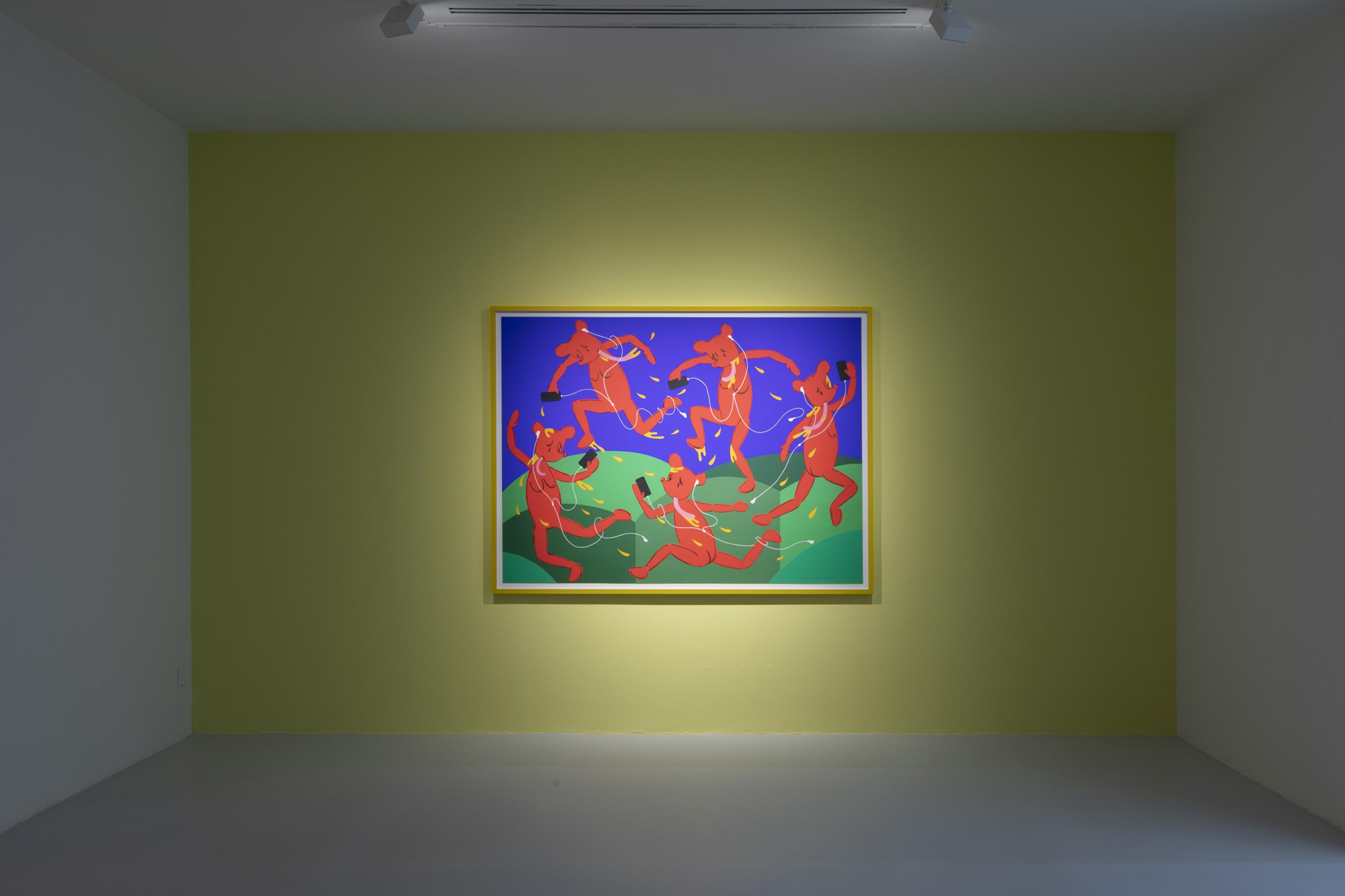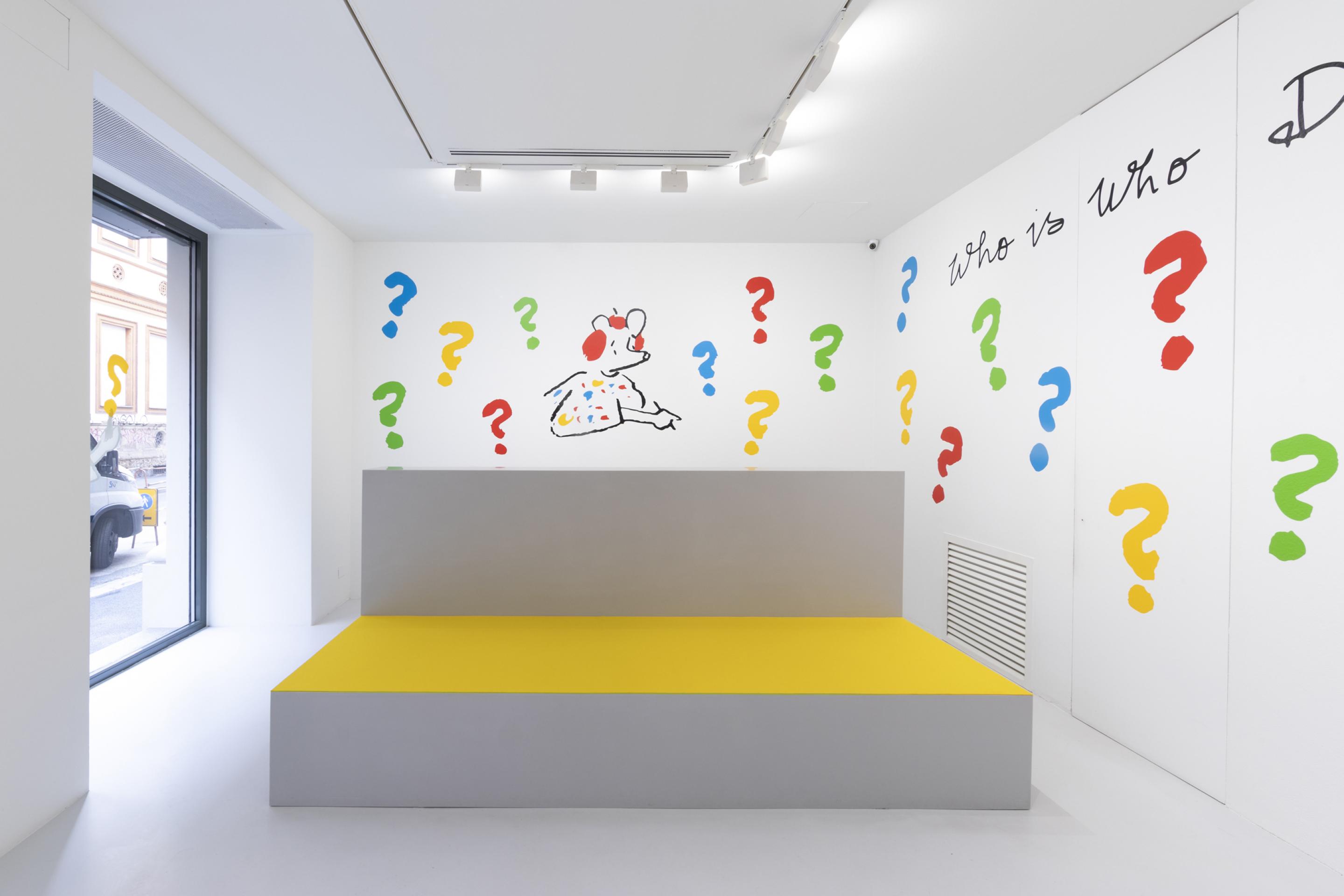 In questa mostra in galleria, Fujiwara presenterà un corpus di nuovi lavori che esplorano molti dei temi principali di Who the Baer, dall'identità di genere e il nazionalismo, agli appuntamenti online e all'appropriazione culturale attraverso una serie di nuove "opere piatte" su tela, carta e animazioni screen-based. Usando la metafora della piattezza per sottolineare l'eterno status di Who the Baer come immagine, un ampio corpus di opere all’interno dell’esposizione mescola icone storiche dell'arte, simultaneamente esaltandole e svuotandole di contenuto mentre vengono immerse nel bizzarro e megalomane mondo dei cartoni animati di Who. La mostra culmina in una sala site-specific dedicata alle opere del patrimonio culturale italiano che, viste attraverso gli occhi di un personaggio dei cartoni animati, gettano uno sguardo pungente e umoristico sull'identità nazionale attraverso i suoi simboli più cari.