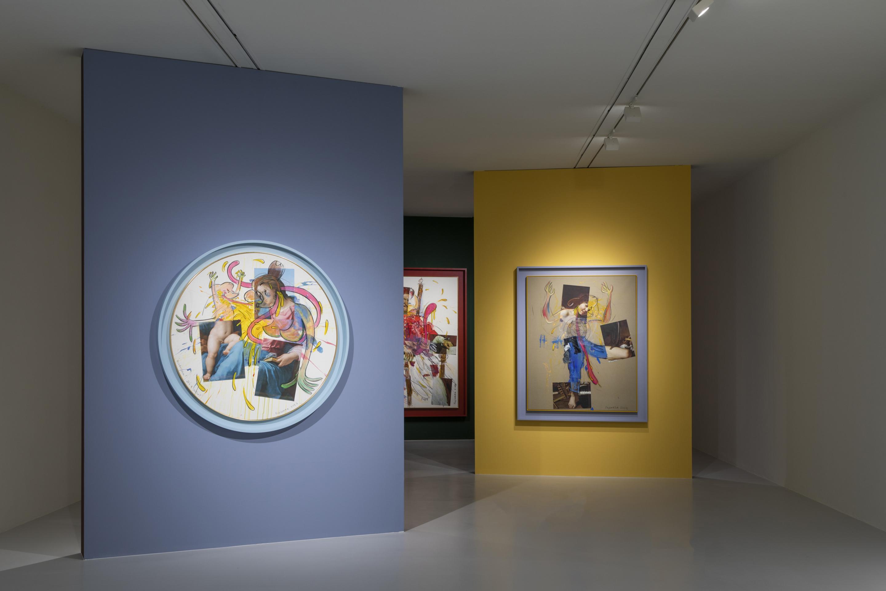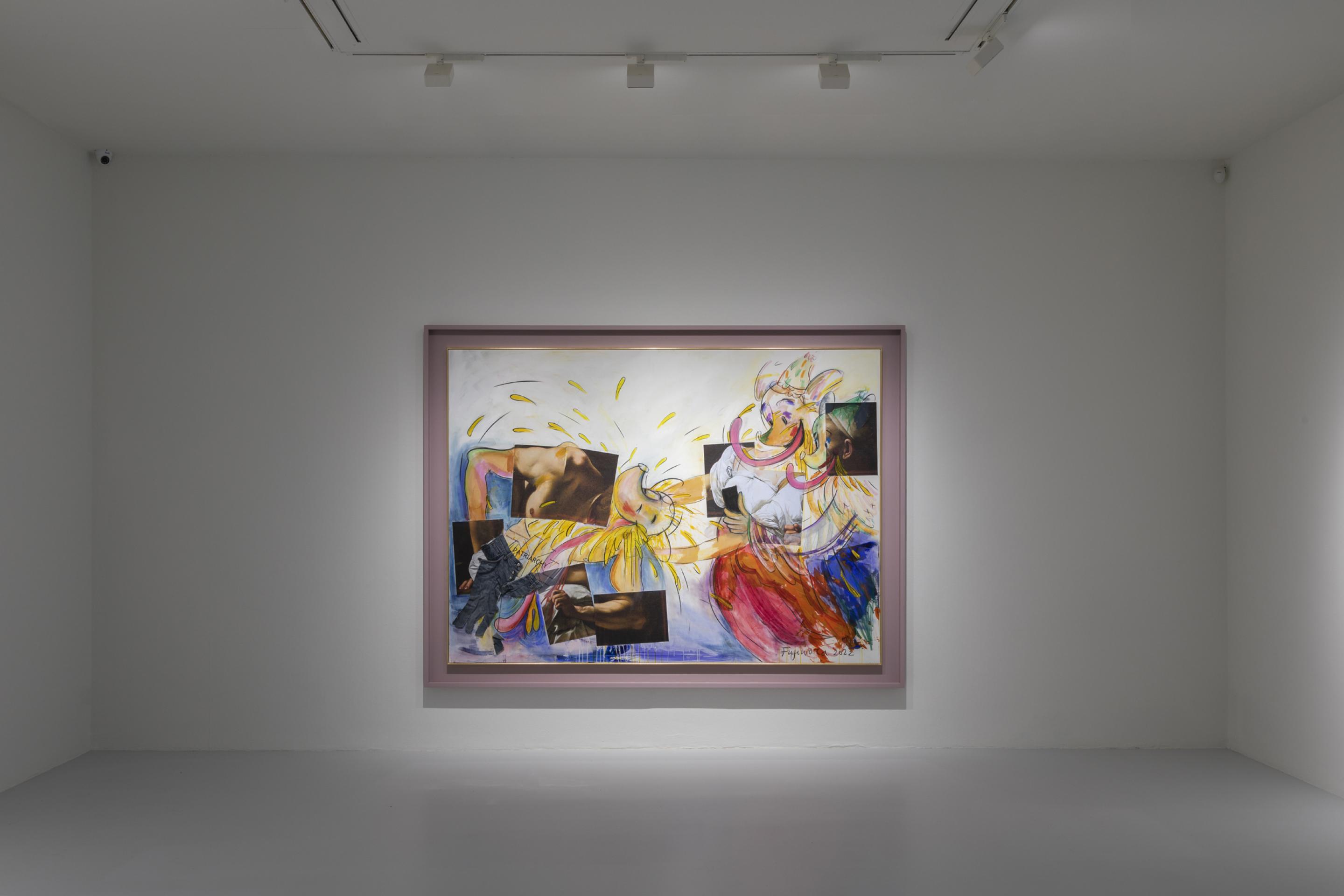 In this exhibition at the gallery, Fujiwara will present a body of new works that explore several of the main topics of Who the Baer from gender identity and nationalism to online dating and cultural appropriation through a series of new ‘flat works’ on canvas, paper and screen-based animations. Using the metaphor of flatness to underscore Who the Baer’s eternal status as an image, a large body of works in this exhibition remix art historical icons, simultaneously exalting and emptying them of content as they are plunged into the bizarre, megalomanic cartoon world of Who. The exhibition culminates in a specially conceived site-specific room of works from the Italian cultural patrimony which, seen through the eyes of a cartoon character, cast a searing yet humorous eye on national identity through its most cherished symbols.