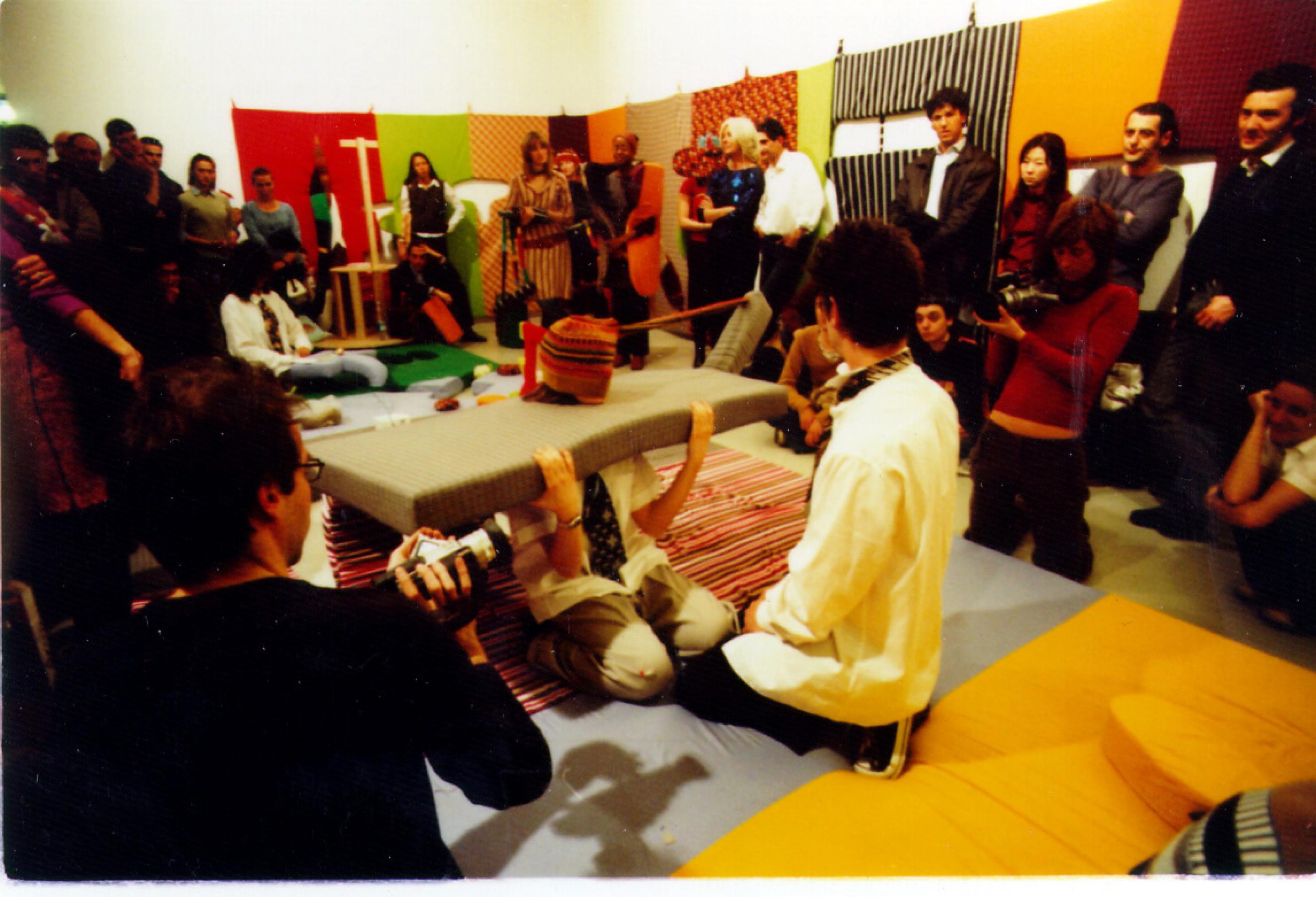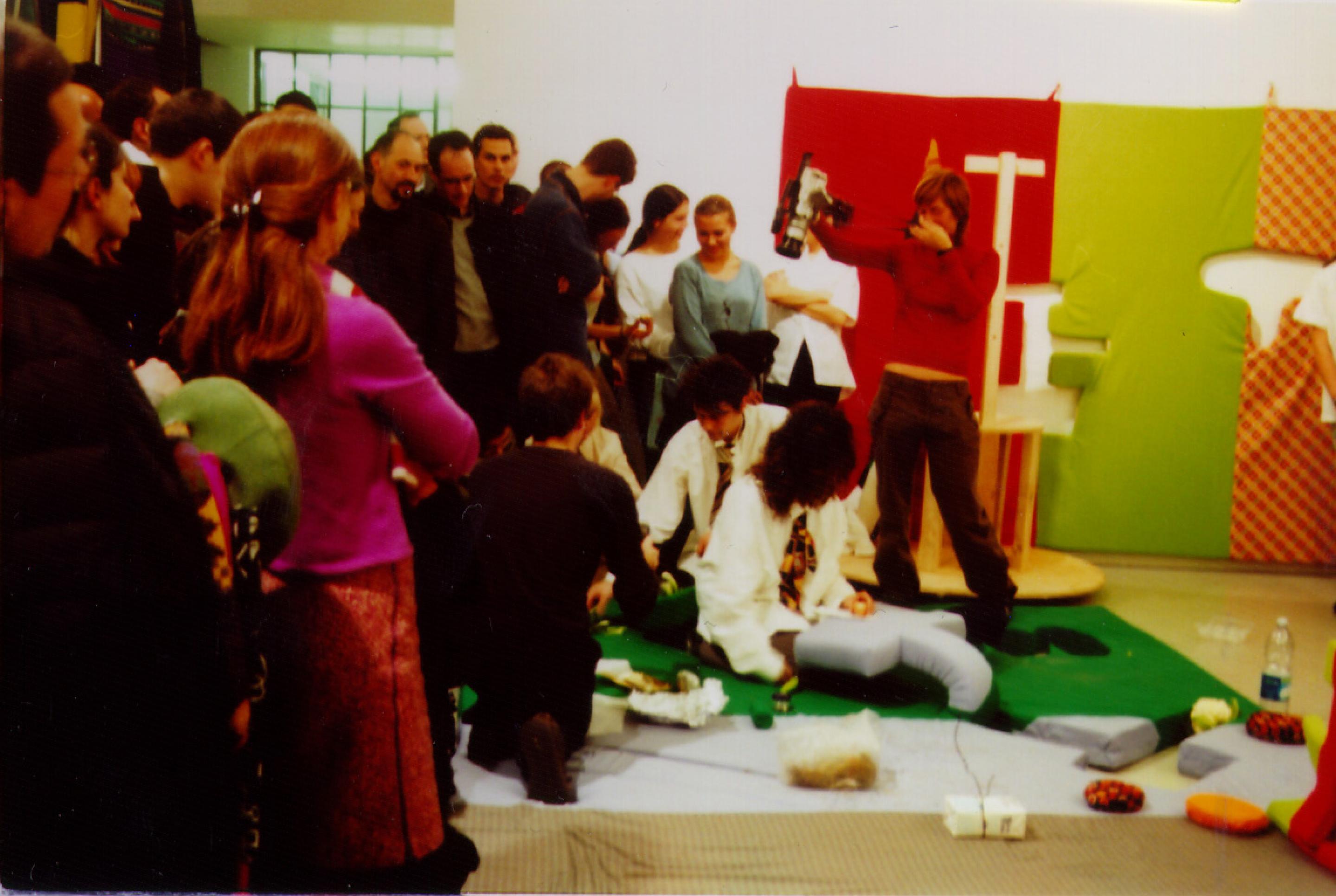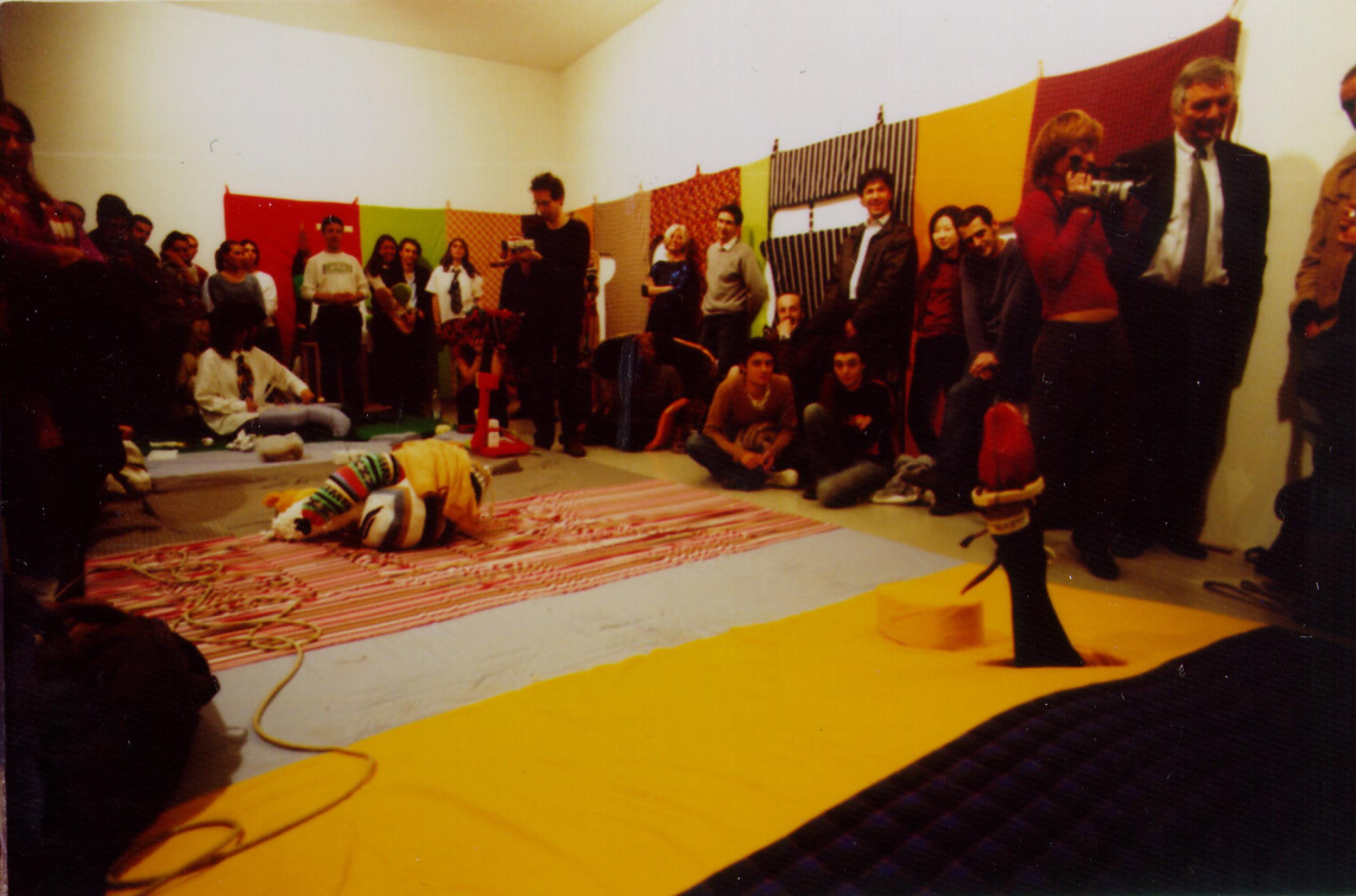 John Bock was born in Gribbohm (Germany) in 1965. He attended to BWL Studium and to the Hochschule für Bildende Künste in Hamburg. He now lives and works in Berlin. He starded exhibitions in 1992; amongst his shows the most important are “Kunst un Papier auf dem Laufsteg”, Deutsche Guggenheim of Berlin (1998); “LiquiditätsAuraAromaPortfolio”, Berlin Biennale (1998-99); “Maybe-Me-Be-Microworld”, Anton Kern Gallery, New York; “Lombardi Bängli”, Kunsthalle Basel; “Memme muß Schlafen”, S.M.A.K., Stedelich Museum for Contemporary Arts, Gent ; “APE trouvé Moving 50 Diagramm, Galleria Giò Marconi, Milano; 48ª Biennale di Venezia; “MolkeMeMindVehikel”, PS1, New York (1999); “Paramoderne=Rokokkogobrot”, Kunstmuseum Bonn (1999-2000); “ArtemisiaSogJod ? Meechwimper lummerig”, Klosterfelde Berlin – Kunsthaus Zürich; “Four Lectures”, MoMA, New York, “La forma del mondo/la fine del mondo”, PAC, Milano; “Schon bezahlt, schon dir”, RE_public, Expo Hannover (2000); “Le Repubbliche dell’Arte: Germania”, Palazzo delle Papesse, Centro Arte Contemporanea, Siena; “Dionysische Monologicus-Gelüste eines Schwachomaten”, Haus der Kunst, München (2001); “LehmLehmLehmLehmLehm”, Regen Projects, Los Angeles, (2001-2002); “Monitor II”, Gagosian Gallery , New York; “Nogojones Dandy, Gribbohm II b.”, Documenta 11, Kassel (2002);“The Fourth Sex: The Extreme People of Adolescence”, Pitti Immagine, Stazione Leopolda, Firenze (2003).